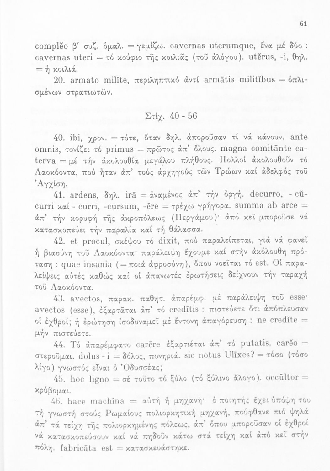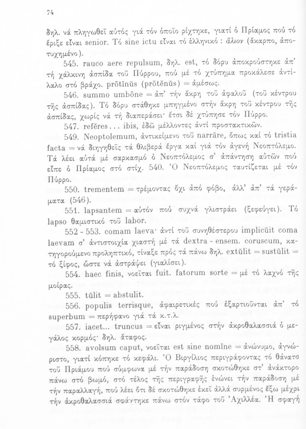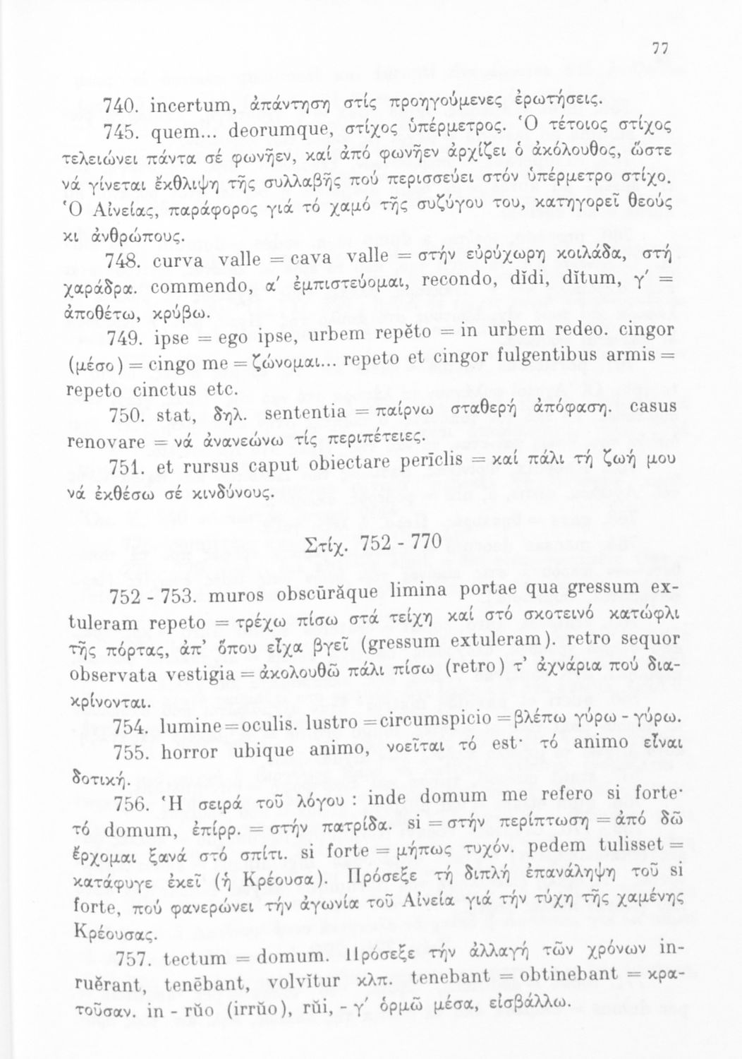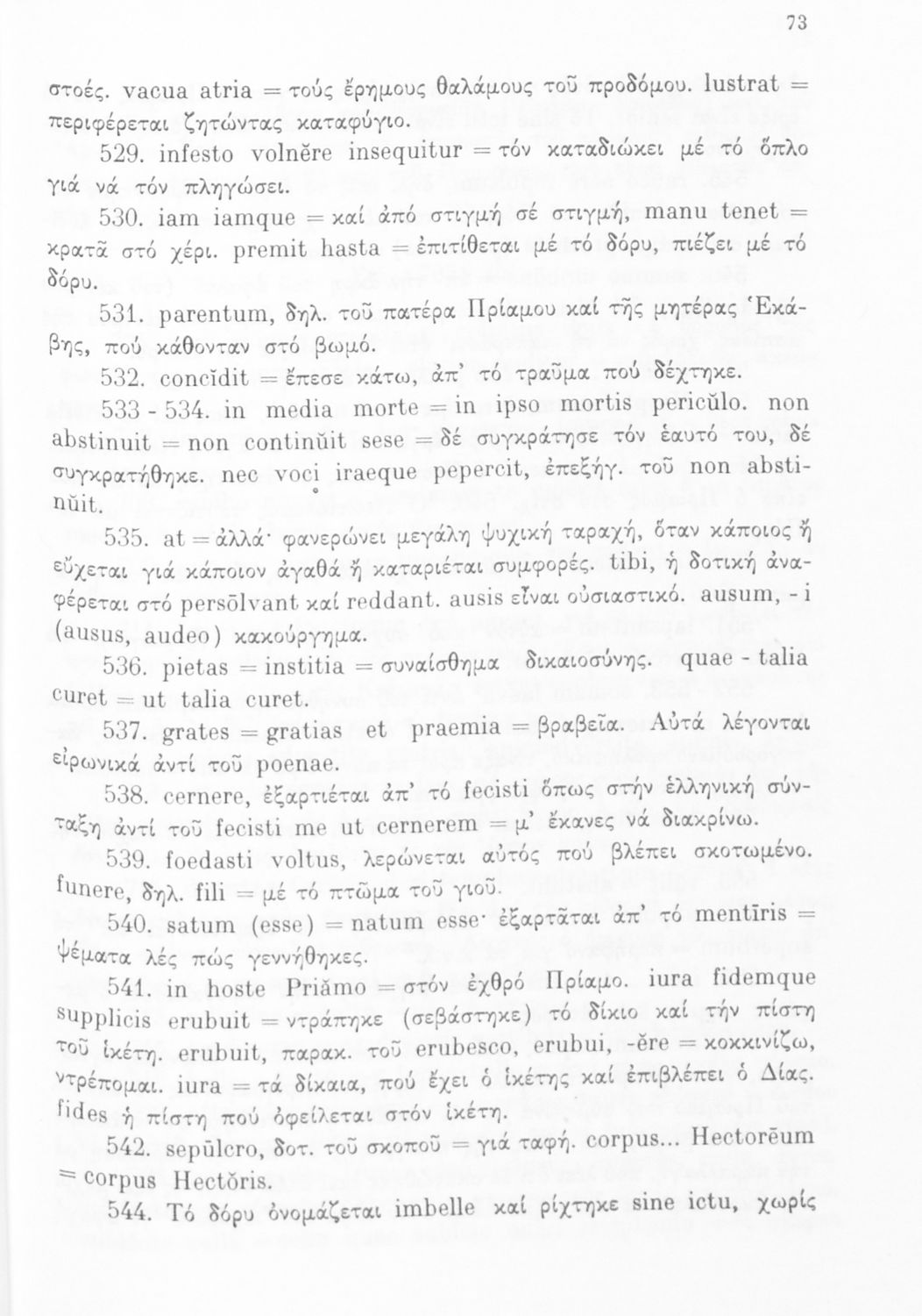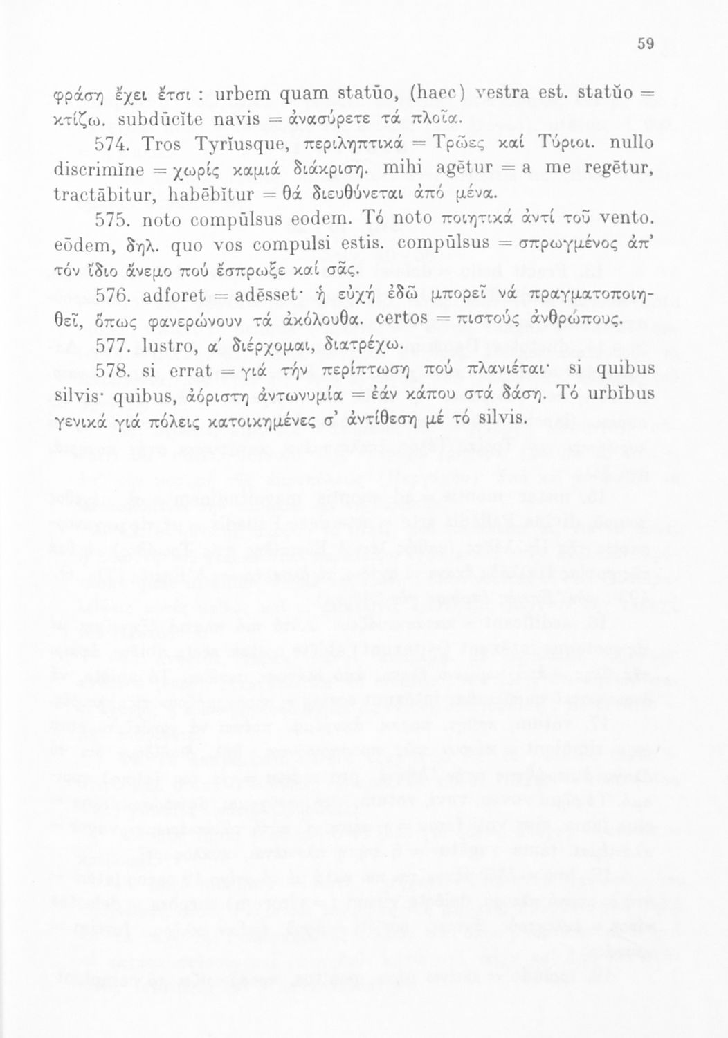 Σχολικό εγχειρίδιο Λατινικών Γ΄ Λυκείου που περιέχει αποσπάσματα από την Αινειάδα του Βιργίλιου, τον Ενύπνιο Σκιπίωνα του Κικέρωνα και τις Ωδές του Οράτιου, βιογραφικά σημειώματα των συγγραφέων, εισαγωγικά σχόλια, και ερμηνευτικές παρατηρήσεις.