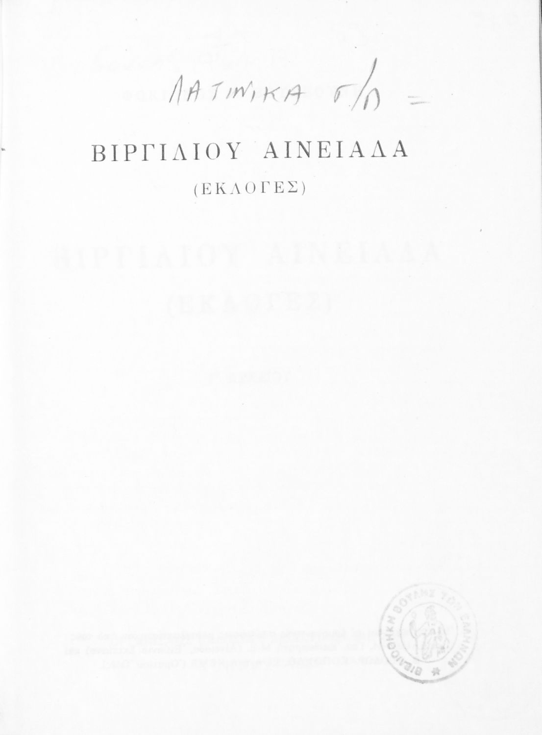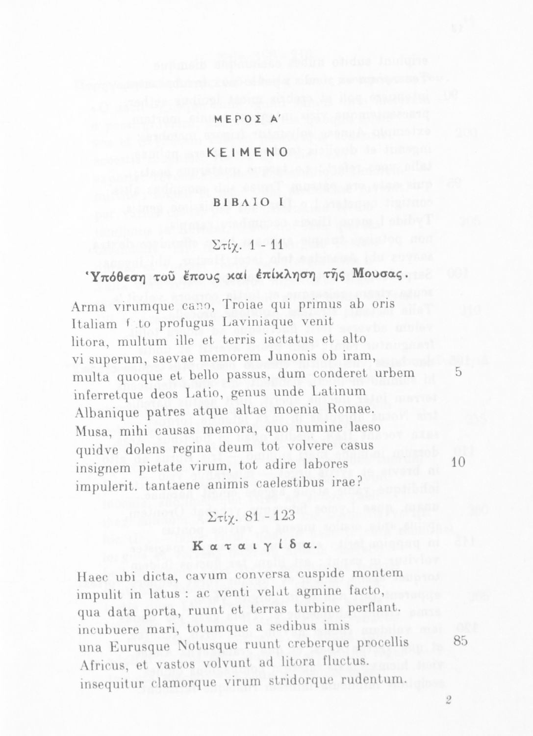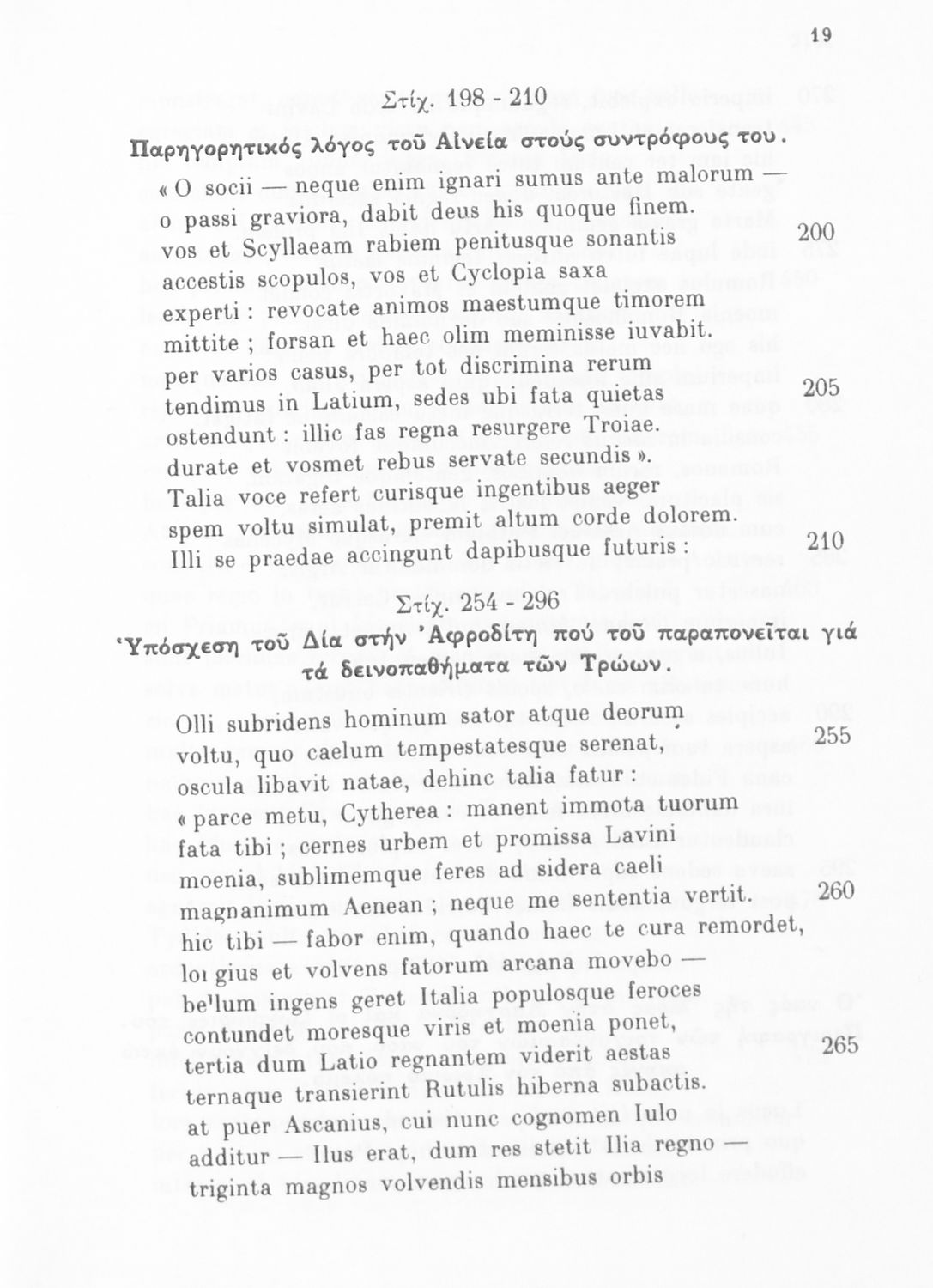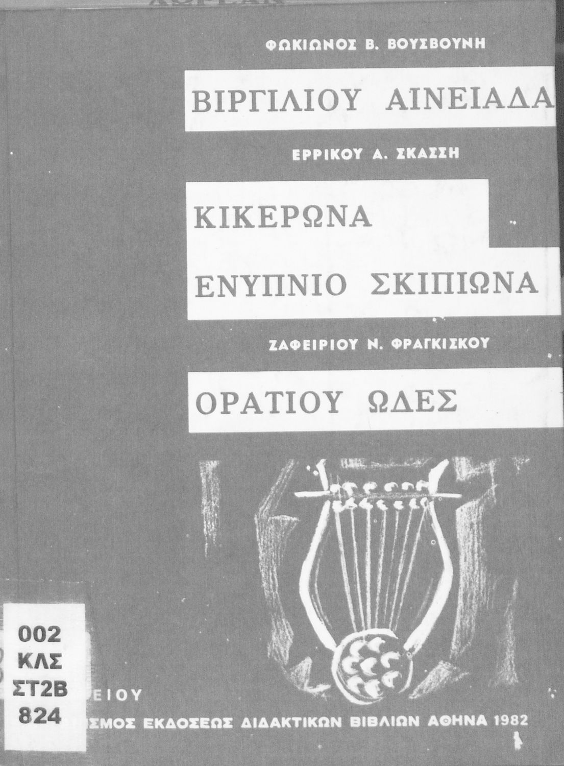 Σχολικό εγχειρίδιο Λατινικών Γ΄ Λυκείου που περιέχει αποσπάσματα από την Αινειάδα του Βιργίλιου, τον Ενύπνιο Σκιπίωνα του Κικέρωνα και τις Ωδές του Οράτιου, βιογραφικά σημειώματα των συγγραφέων, εισαγωγικά σχόλια, και ερμηνευτικές παρατηρήσεις.
