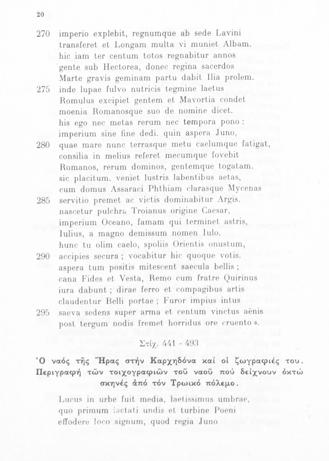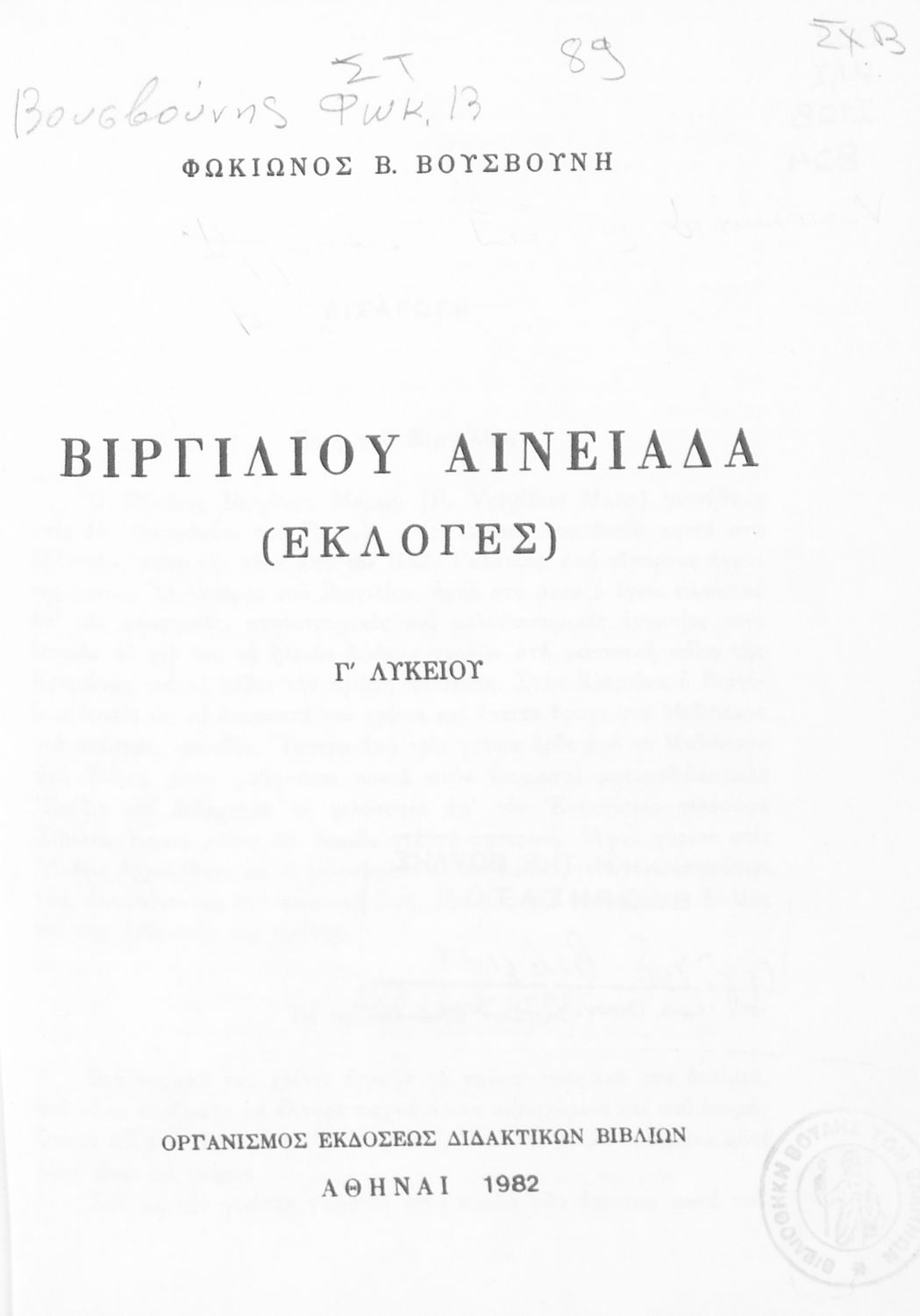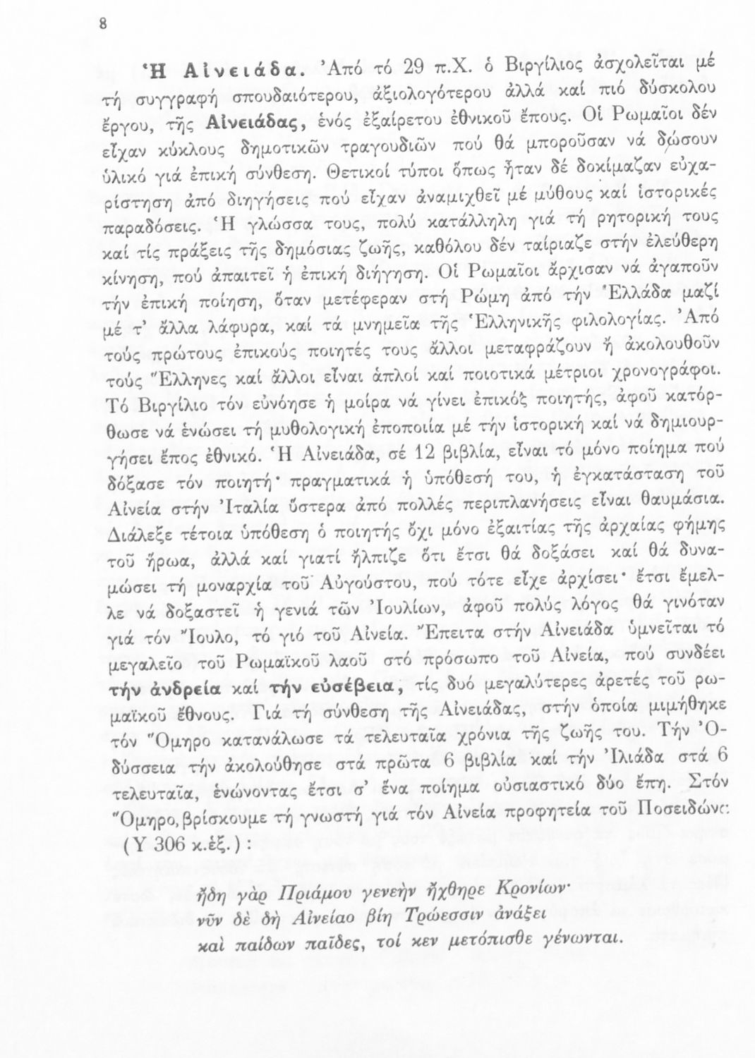 Σχολικό εγχειρίδιο Λατινικών Γ΄ Λυκείου που περιέχει αποσπάσματα από την Αινειάδα του Βιργίλιου, τον Ενύπνιο Σκιπίωνα του Κικέρωνα και τις Ωδές του Οράτιου, βιογραφικά σημειώματα των συγγραφέων, εισαγωγικά σχόλια, και ερμηνευτικές παρατηρήσεις.