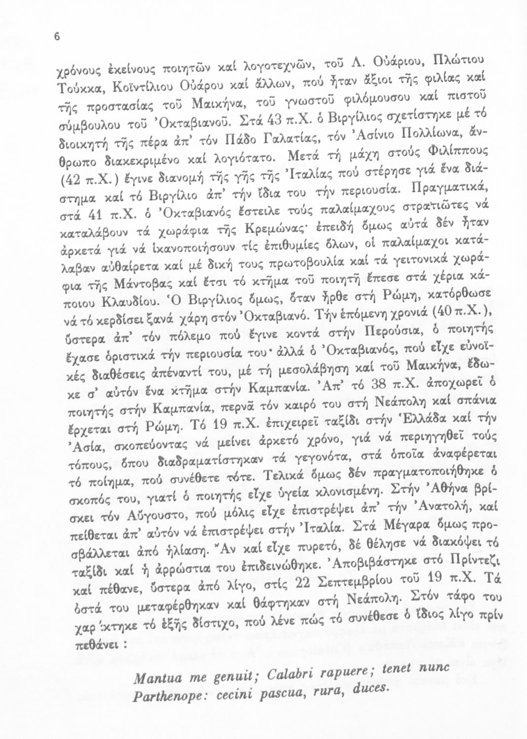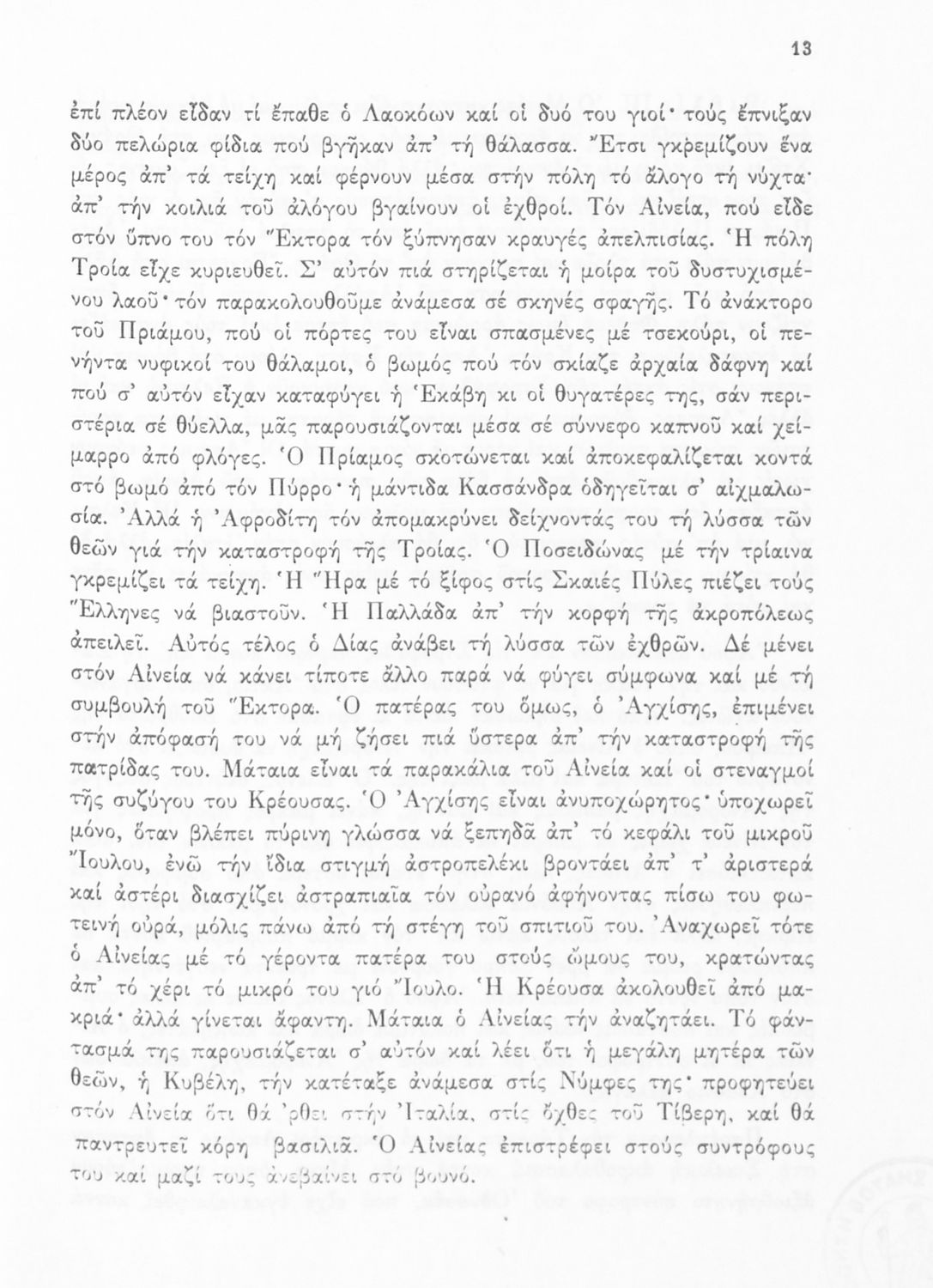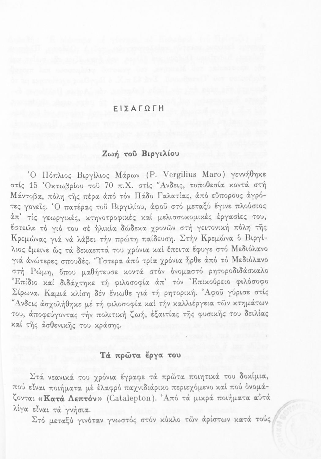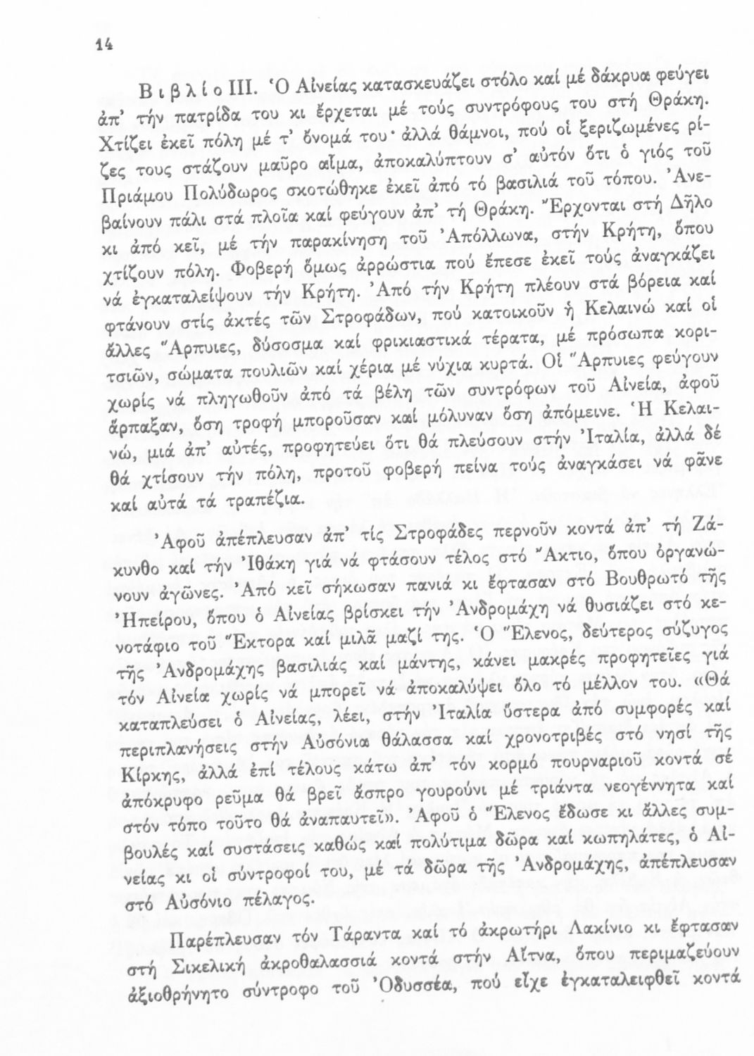 Σχολικό εγχειρίδιο Λατινικών Γ΄ Λυκείου που περιέχει αποσπάσματα από την Αινειάδα του Βιργίλιου, τον Ενύπνιο Σκιπίωνα του Κικέρωνα και τις Ωδές του Οράτιου, βιογραφικά σημειώματα των συγγραφέων, εισαγωγικά σχόλια, και ερμηνευτικές παρατηρήσεις.