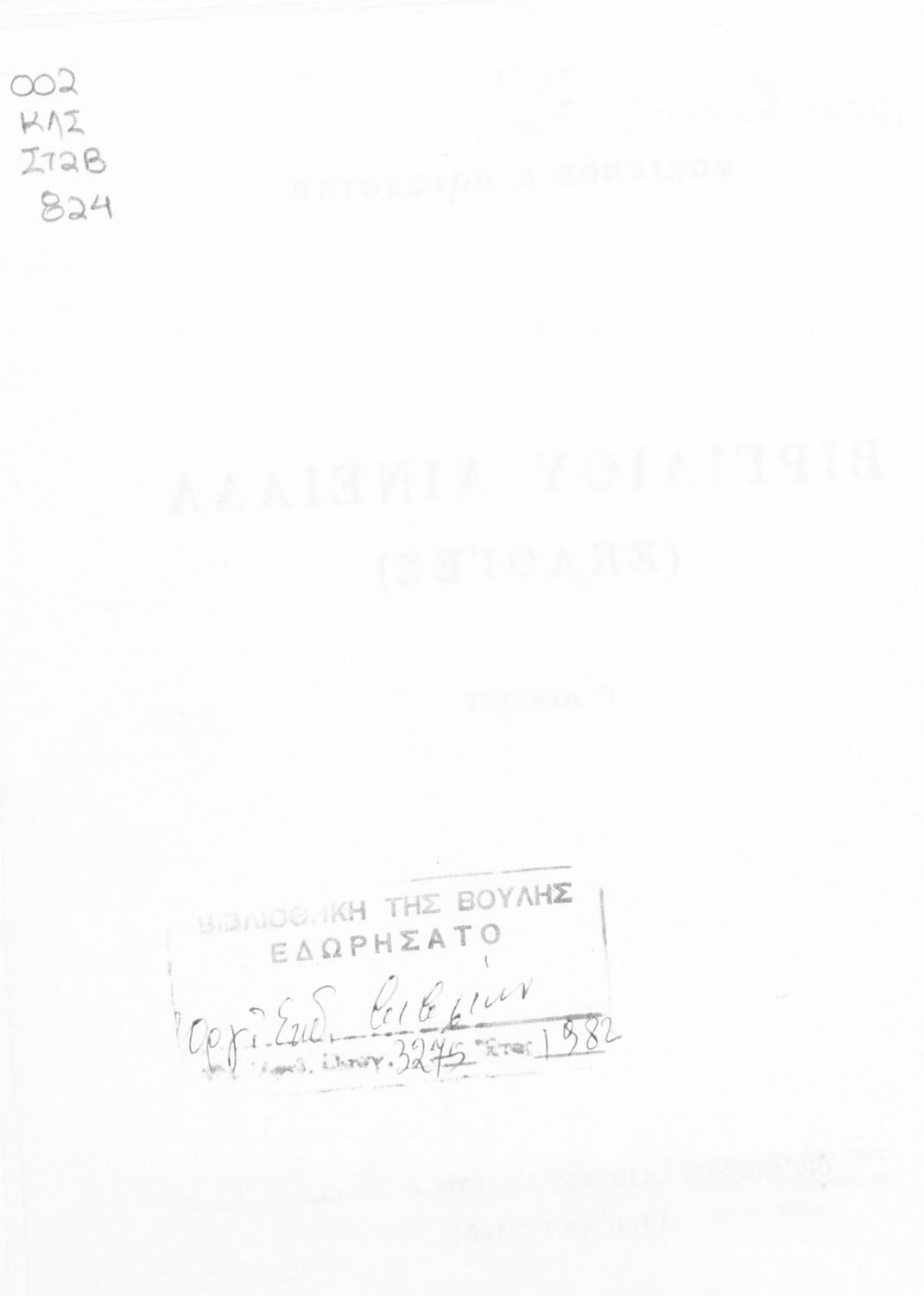Εντοπισμός πρωτοτύπου: Βιβλιοθήκη της Βουλής των Ελλήνων Κωδικός βιβλιοθήκης: 20556925 |