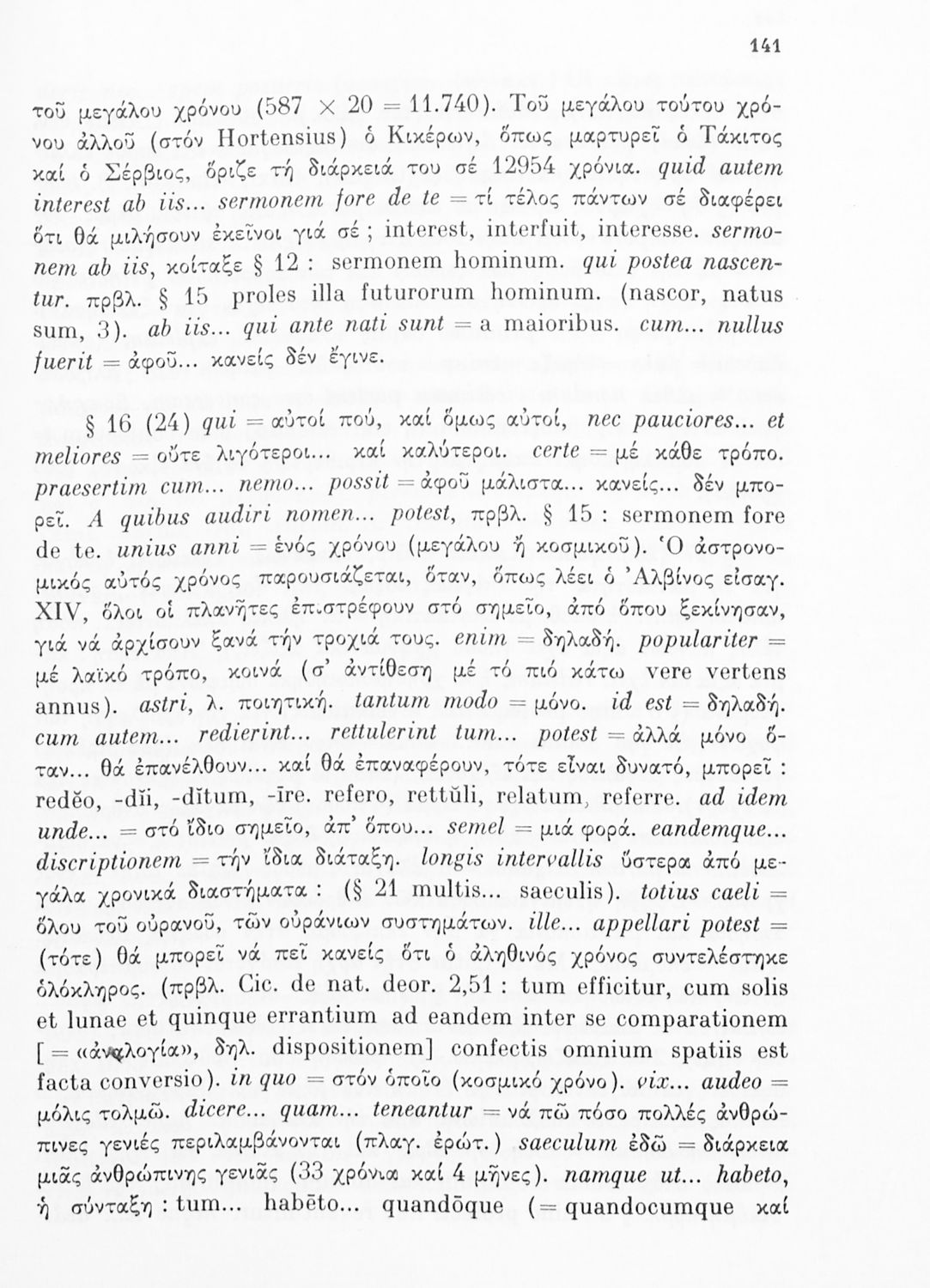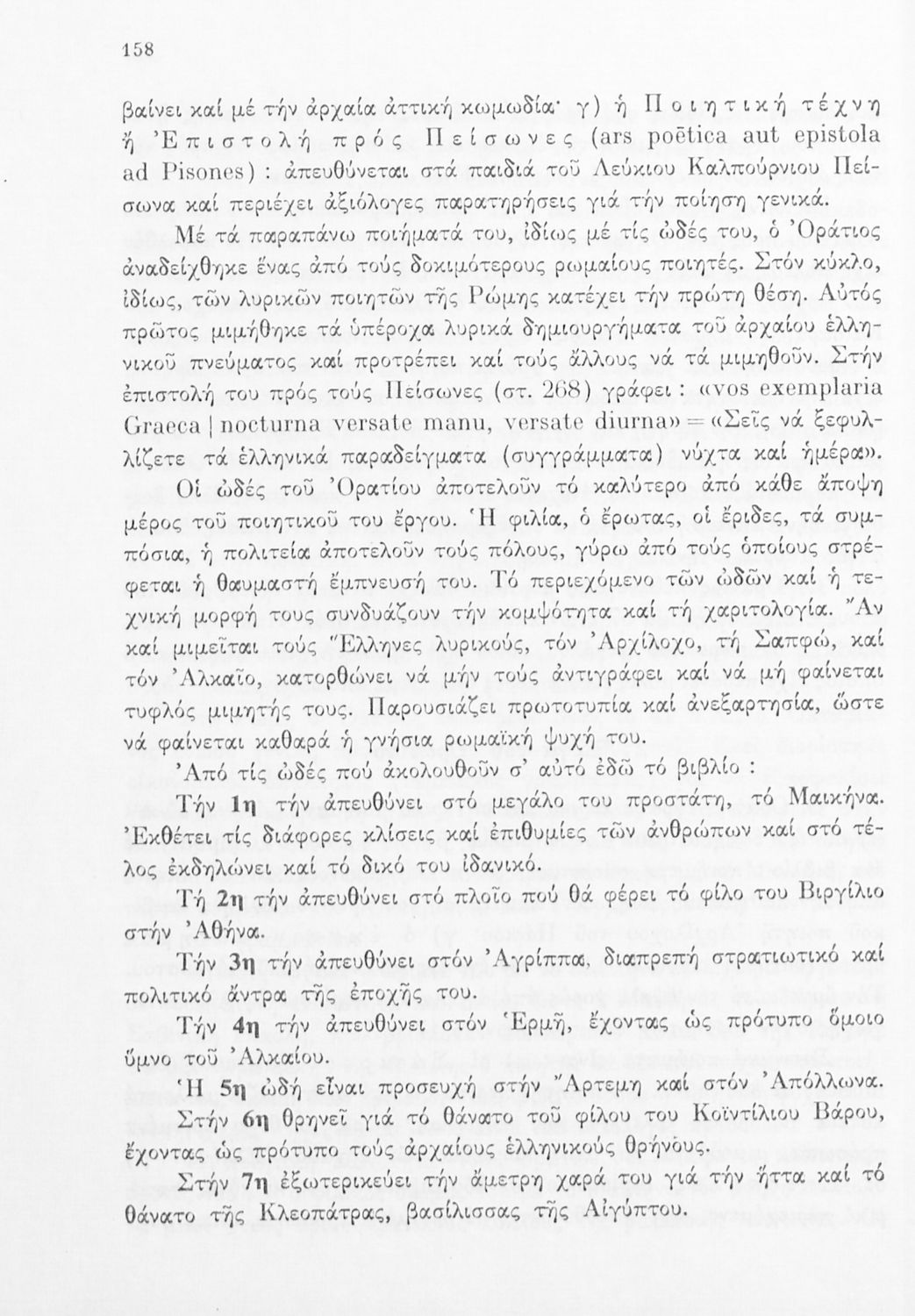 Πόπλιος Βιργίλιος Μάρων (P. Vergilius Maro), Μάρκος Τύλλιος Κικέρωνας (Marcus Tullius Ciceco), Κουίντος Οράτιος Φλάκκος (Q. Horati Flacci), Φωκίωνας Β. Βουσβούνης, Ερρίκος Σκάσσης, Ζαφείριος Ν. Φραγκίσκος (σχόλια)
