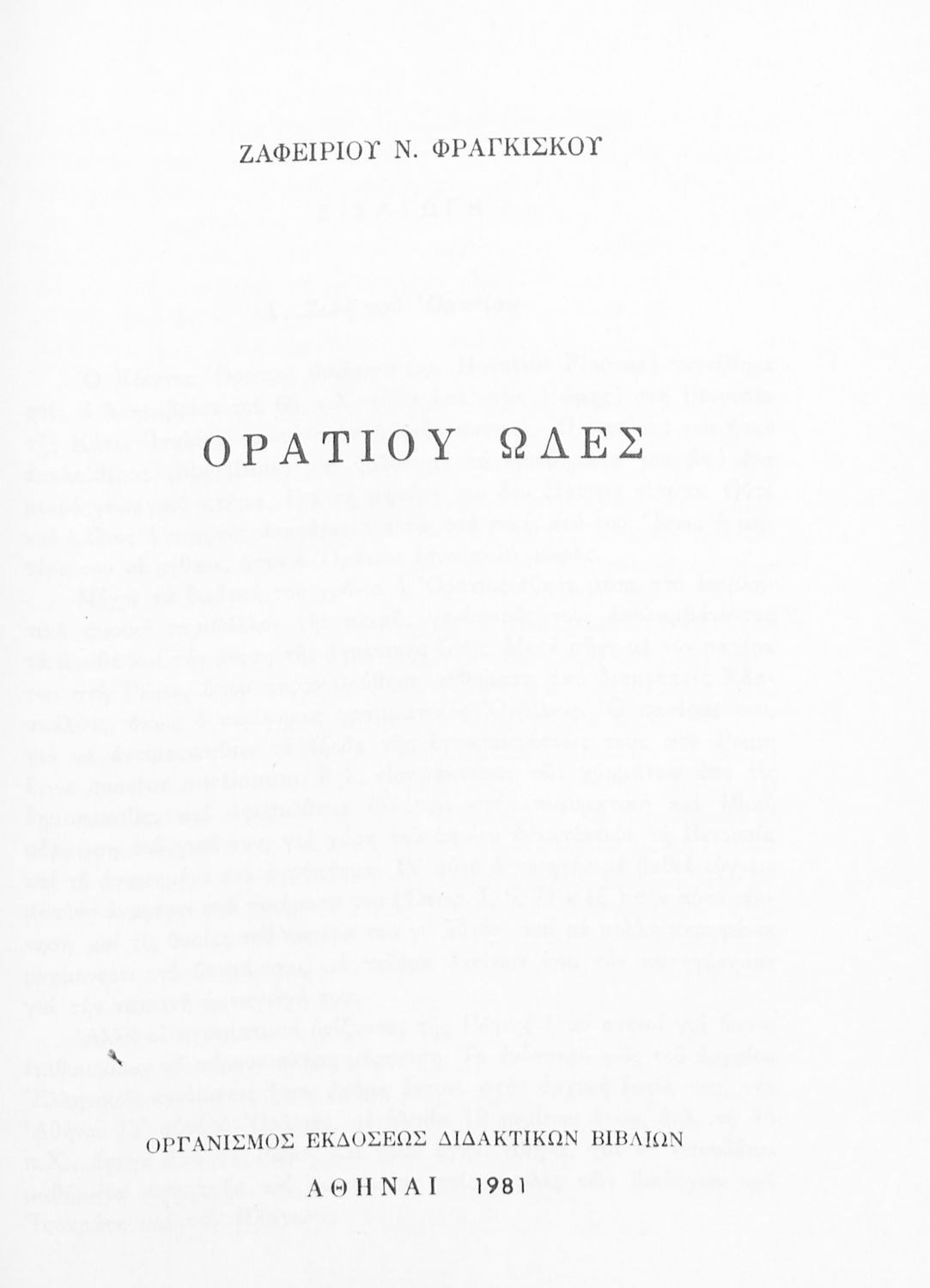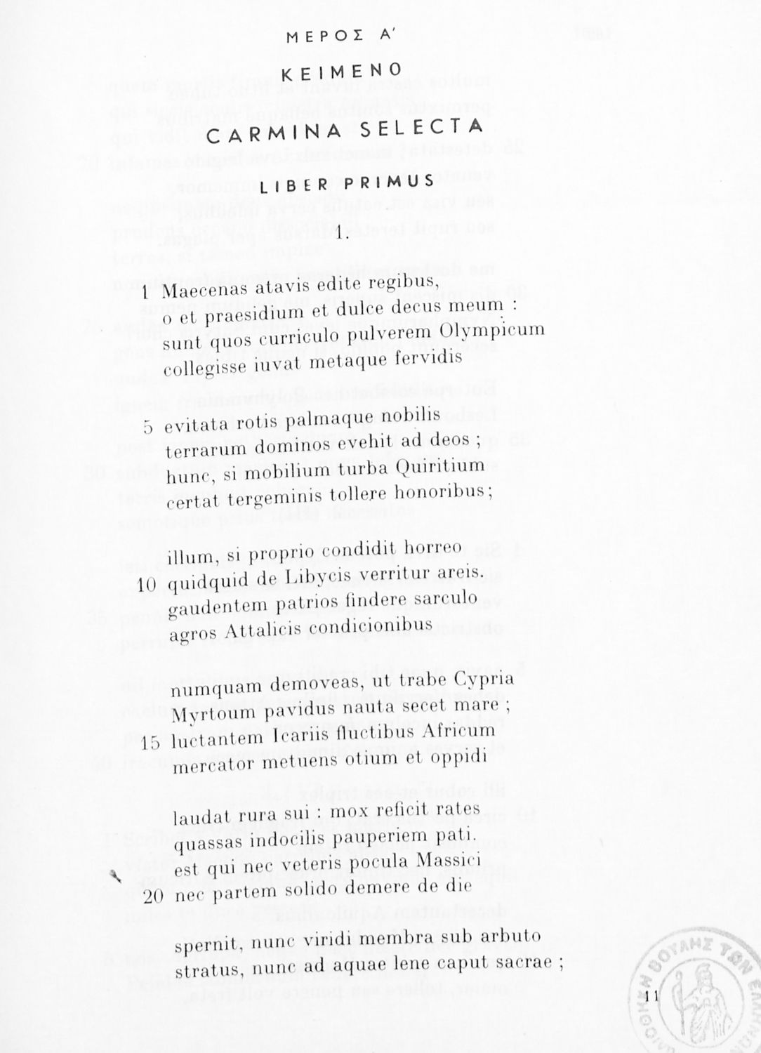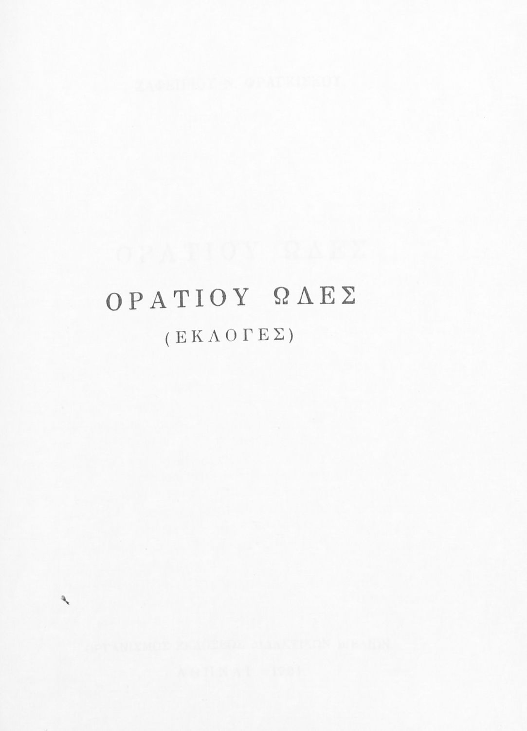 Συγγραφέας: Πόπλιος Βιργίλιος Μάρων (P. Vergilius Maro), Μάρκος Τύλλιος Κικέρωνας (Marcus Tullius Ciceco), Κουίντος Οράτιος Φλάκκος (Q. Horati Flacci), Φωκίωνας Β. Βουσβούνης, Ερρίκος Σκάσσης, Ζαφείριος Ν. Φραγκίσκος (εισαγωγή/σχόλια)