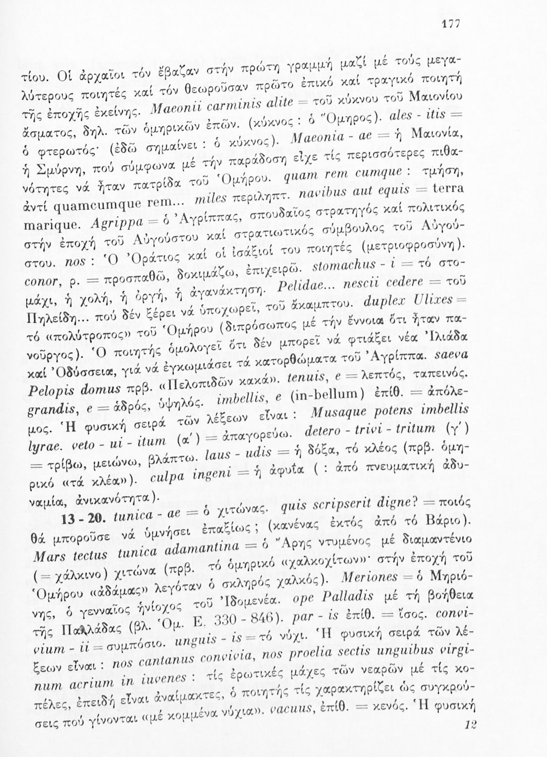 Σχολικό εγχειρίδιο Λατινικών Γ΄ Λυκείου που περιέχει αποσπάσματα από την Αινειάδα του Βιργίλιου, τον Ενύπνιο Σκιπίωνα του Κικέρωνα και τις Ωδές του Οράτιου, βιογραφικά σημειώματα των συγγραφέων, εισαγωγικά σχόλια, και ερμηνευτικές παρατηρήσεις.