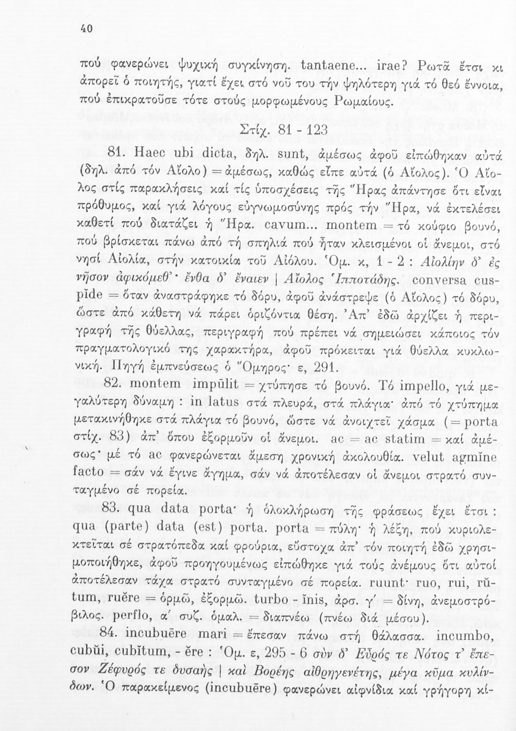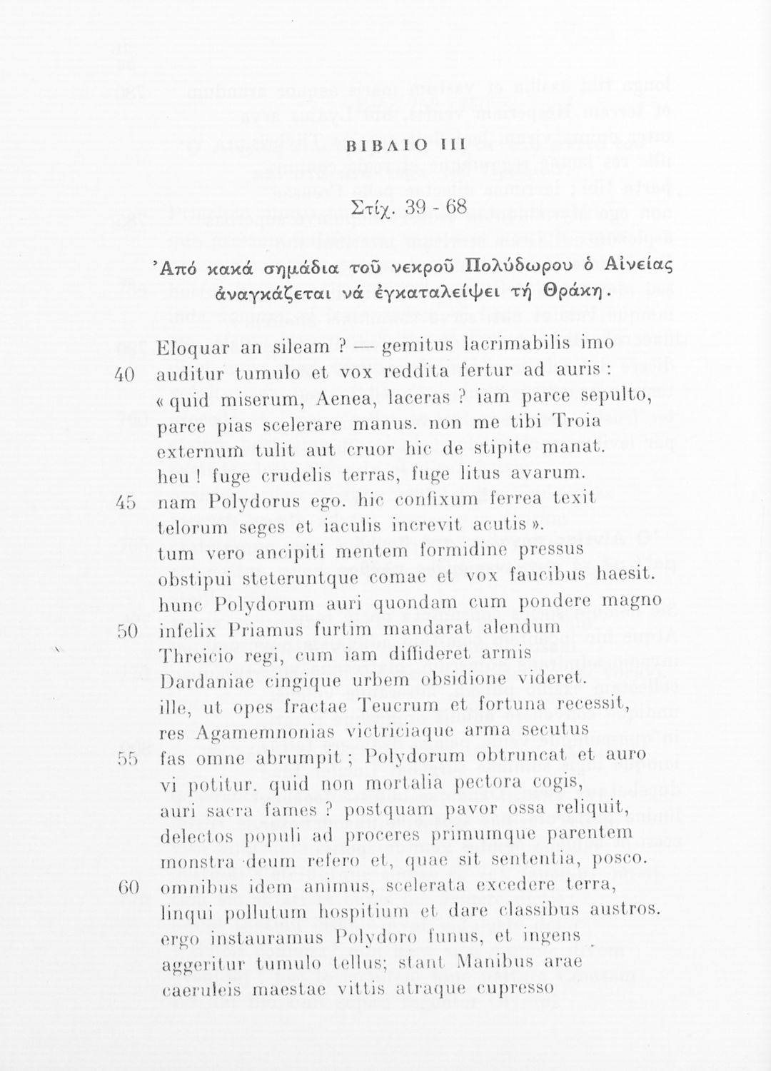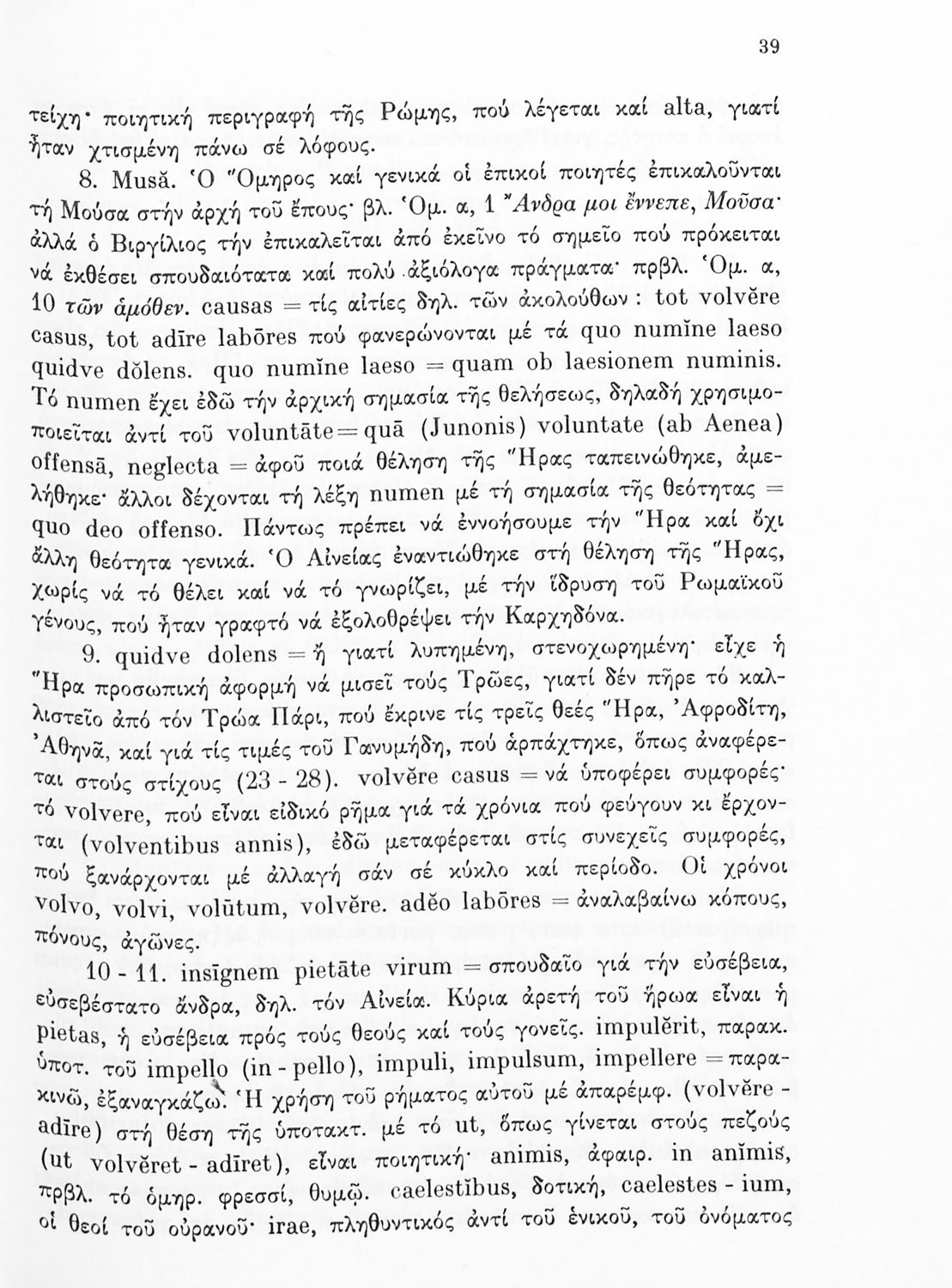 Πόπλιος Βιργίλιος Μάρων (P. Vergilius Maro), Μάρκος Τύλλιος Κικέρωνας (Marcus Tullius Ciceco), Κουίντος Οράτιος Φλάκκος (Q. Horati Flacci), Φωκίωνας Β. Βουσβούνης, Ερρίκος Σκάσσης, Ζαφείριος Ν. Φραγκίσκος (σχόλια)