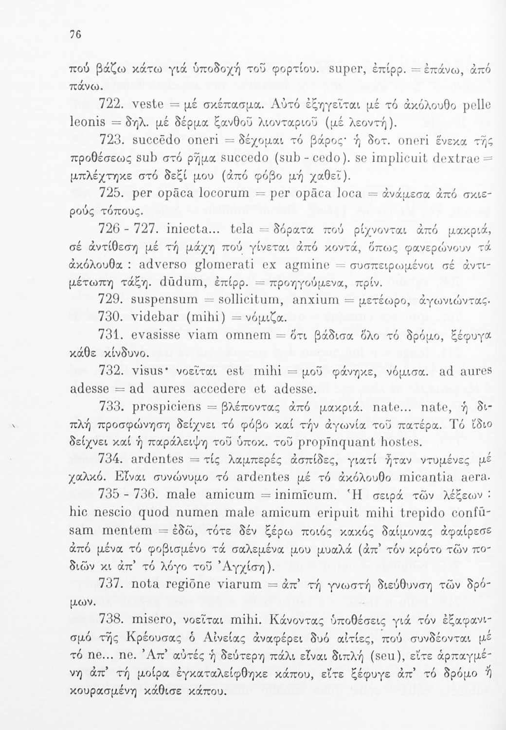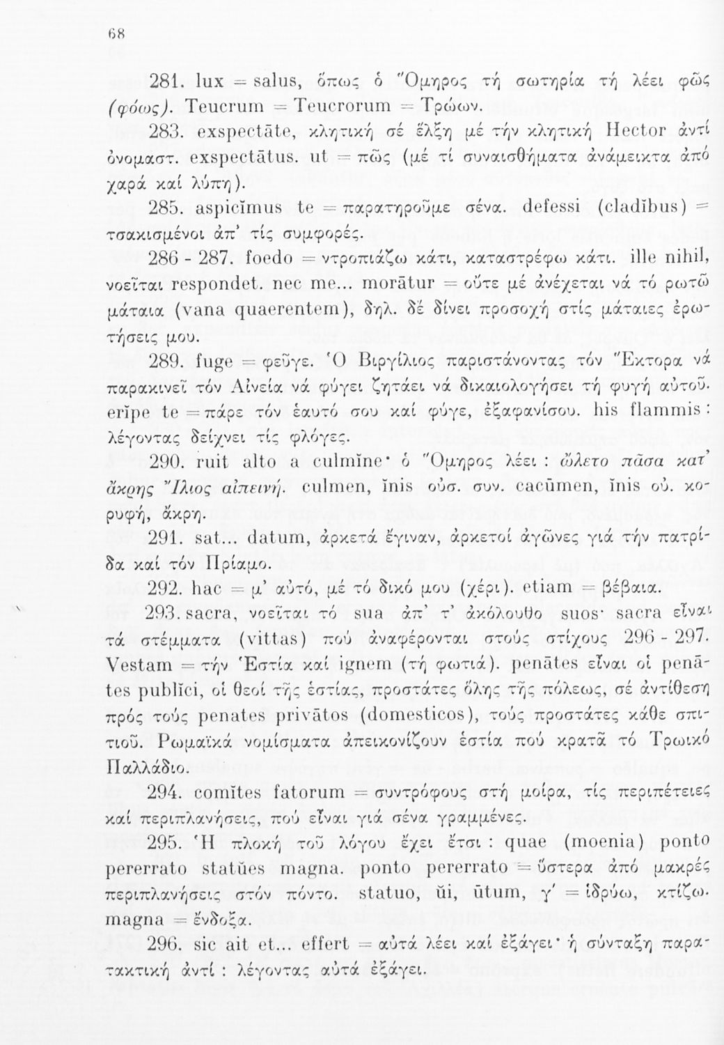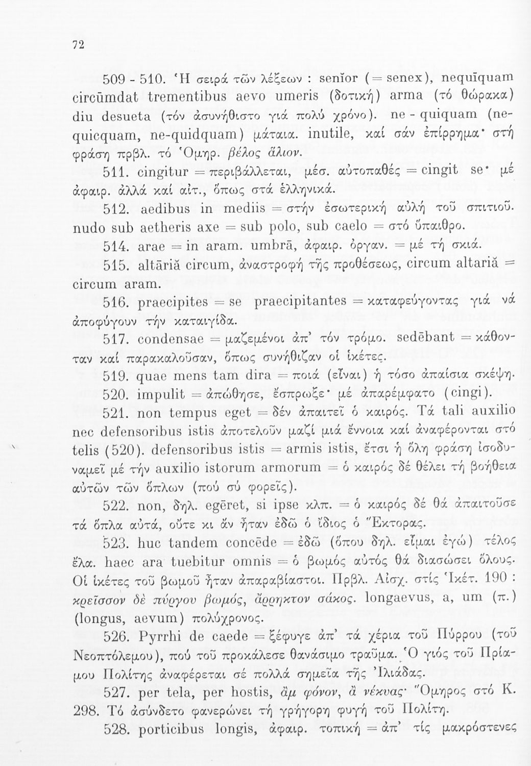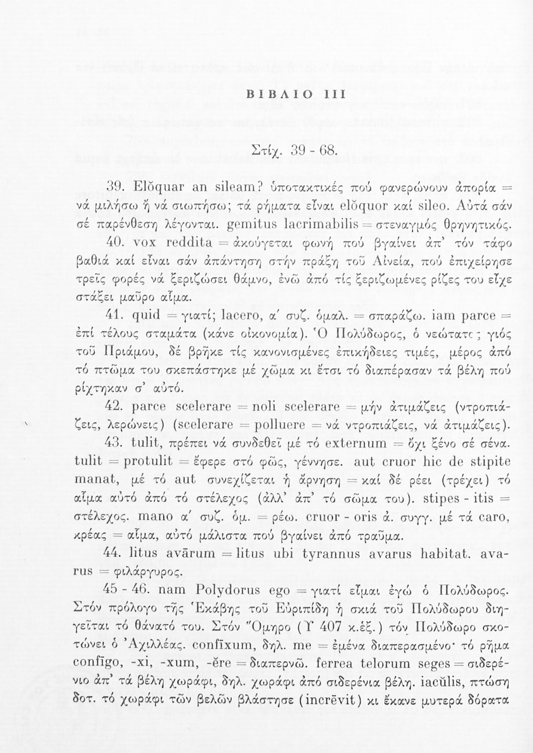 Πόπλιος Βιργίλιος Μάρων (P. Vergilius Maro), Μάρκος Τύλλιος Κικέρωνας (Marcus Tullius Ciceco), Κουίντος Οράτιος Φλάκκος (Q. Horati Flacci), Φωκίωνας Β. Βουσβούνης, Ερρίκος Σκάσσης, Ζαφείριος Ν. Φραγκίσκος (σχόλια)