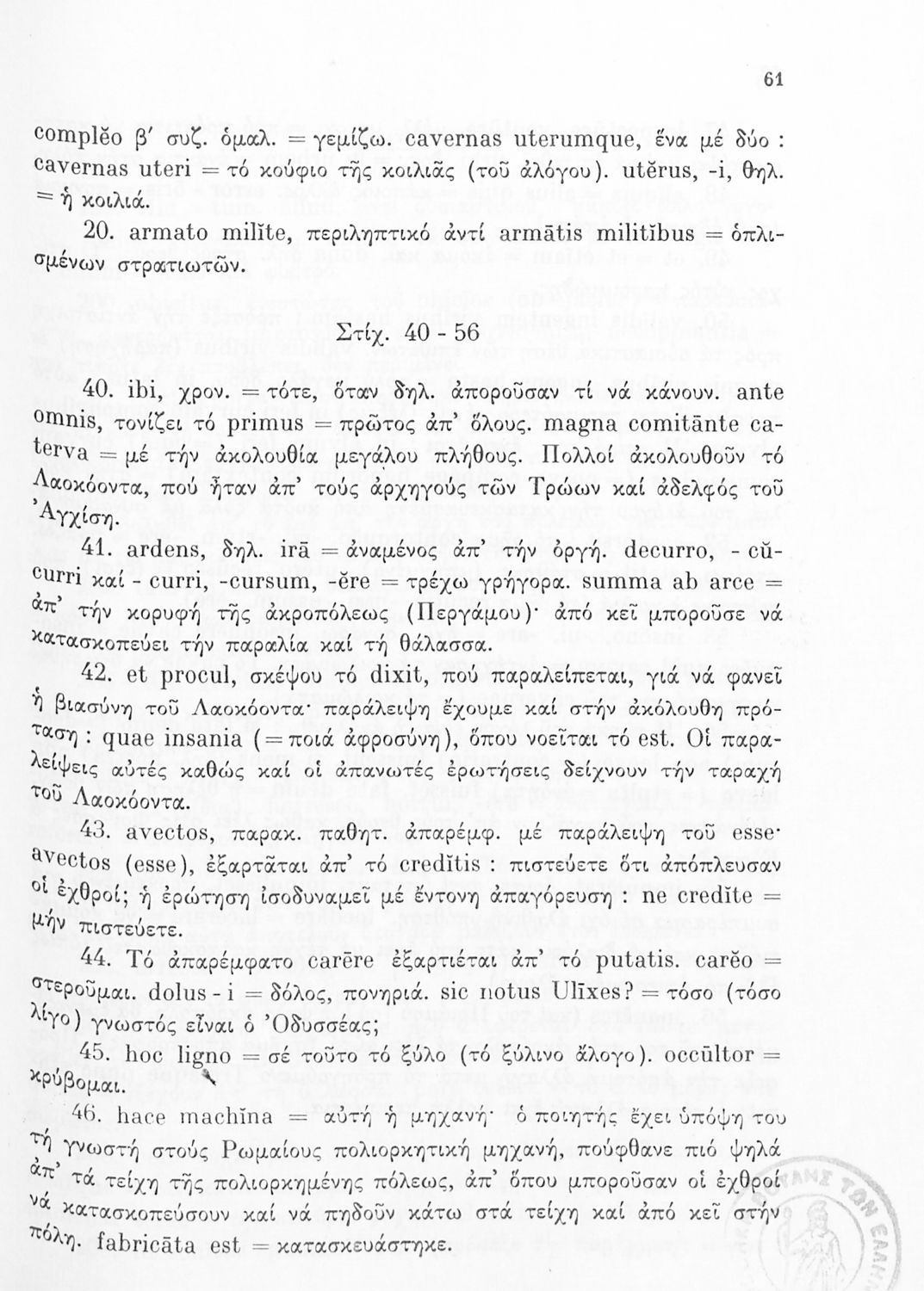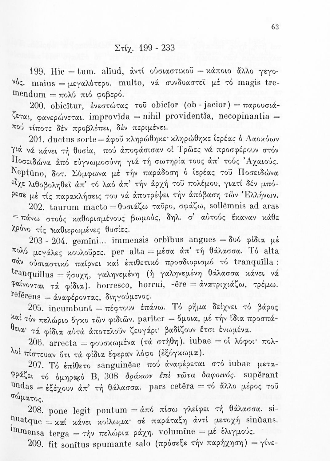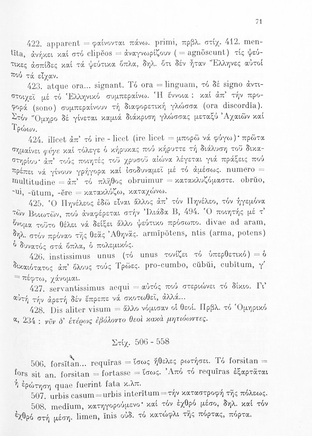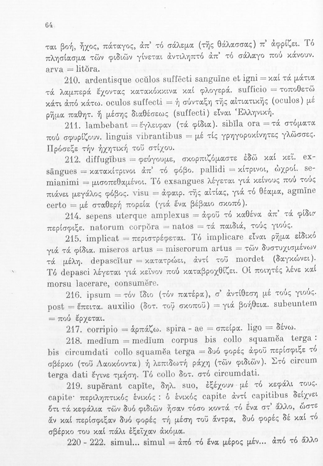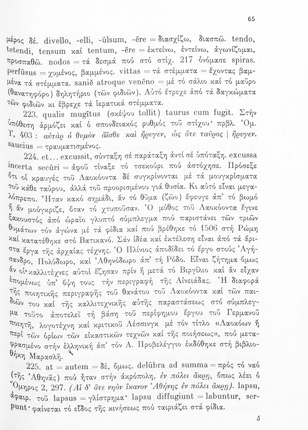 Πόπλιος Βιργίλιος Μάρων (P. Vergilius Maro), Μάρκος Τύλλιος Κικέρωνας (Marcus Tullius Ciceco), Κουίντος Οράτιος Φλάκκος (Q. Horati Flacci), Φωκίωνας Β. Βουσβούνης, Ερρίκος Σκάσσης, Ζαφείριος Ν. Φραγκίσκος (σχόλια)