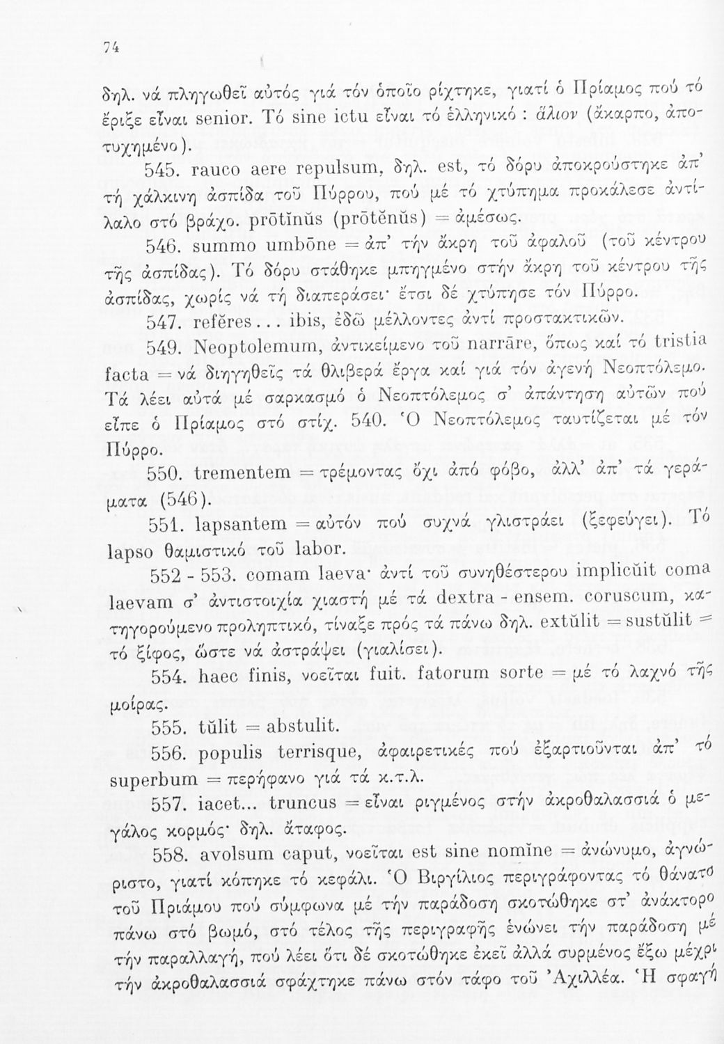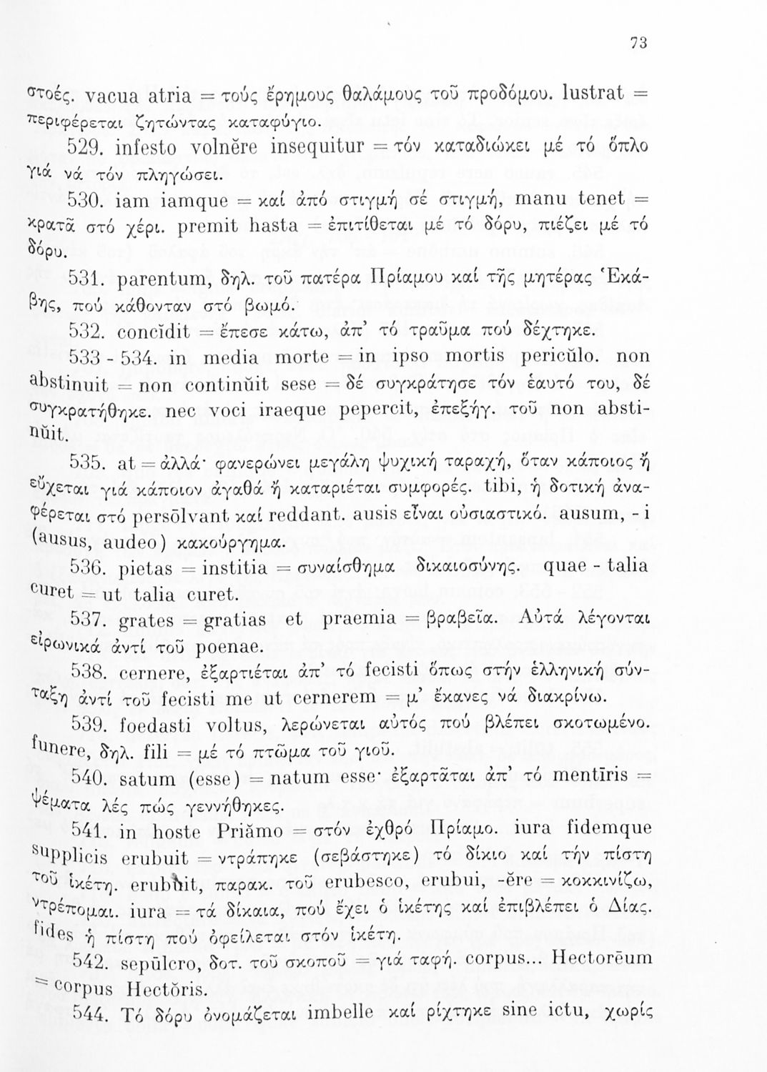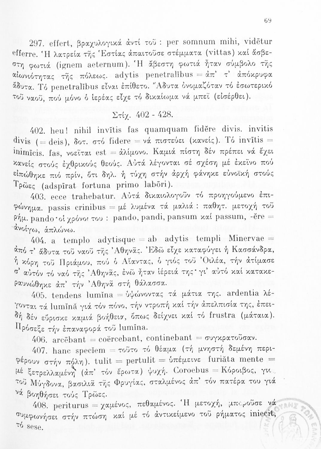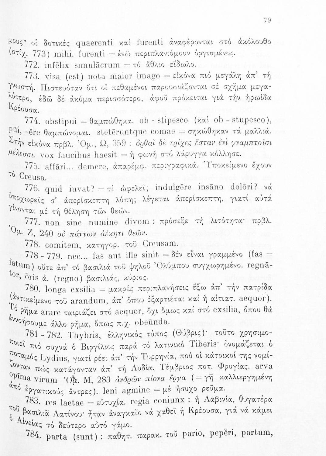 Πόπλιος Βιργίλιος Μάρων (P. Vergilius Maro), Μάρκος Τύλλιος Κικέρωνας (Marcus Tullius Ciceco), Κουίντος Οράτιος Φλάκκος (Q. Horati Flacci), Φωκίωνας Β. Βουσβούνης, Ερρίκος Σκάσσης, Ζαφείριος Ν. Φραγκίσκος (σχόλια)