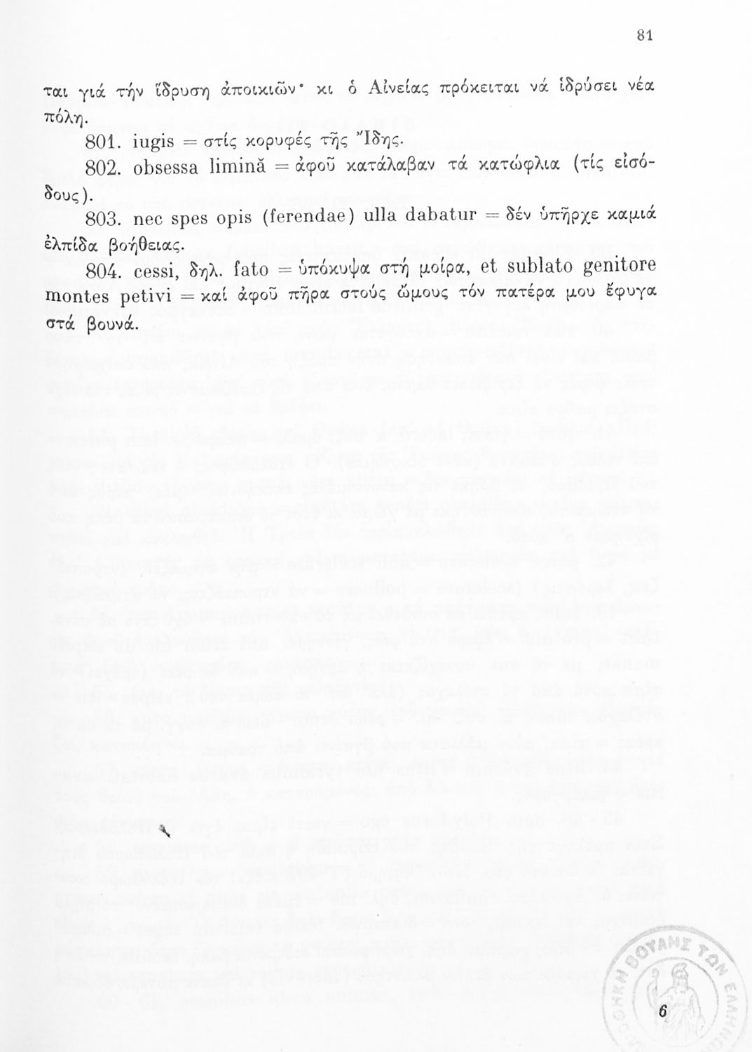 Σχολικό εγχειρίδιο Λατινικών Γυμνασίου που περιλαμβάνει αποσπάσματα από την Αινειάδα του Βιργίλιου, τον Ενύπνιο Σκιπίωνα του Κικέρωνα και τις Ωδές του Οράτιου, και λεξιλογικές και ερμηνευτικές σημειώσεις.