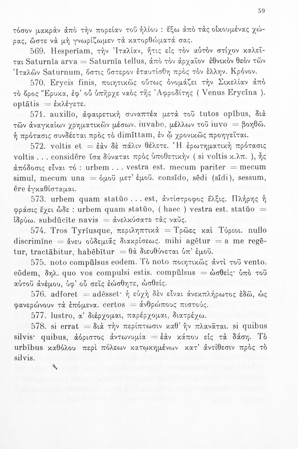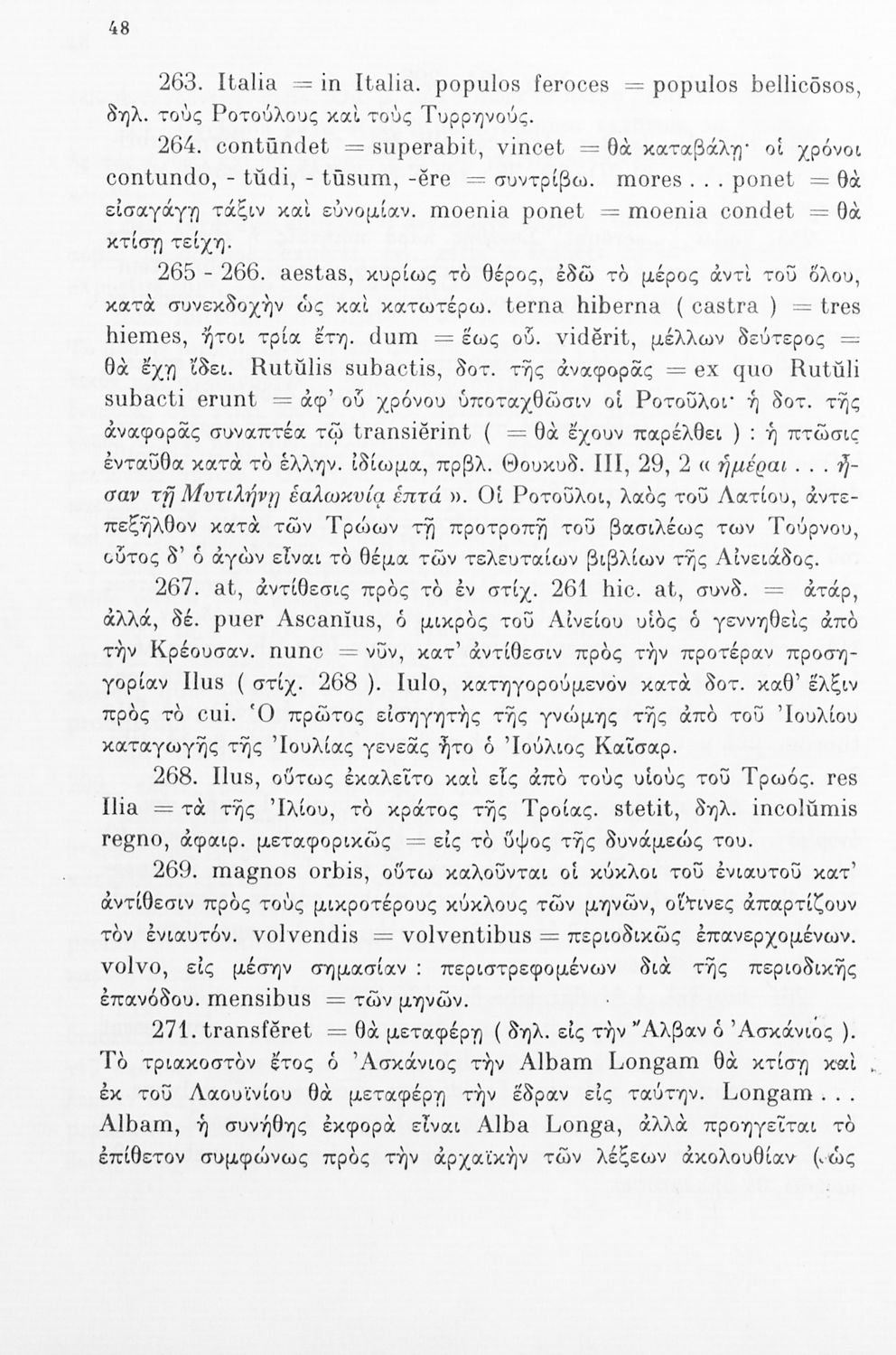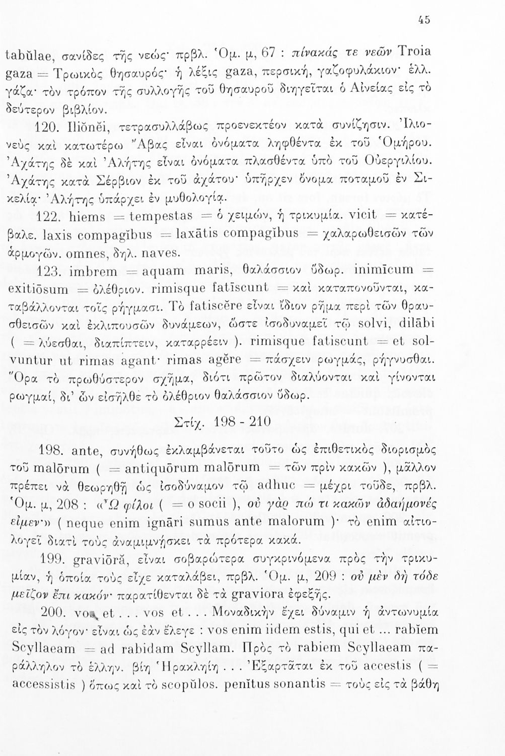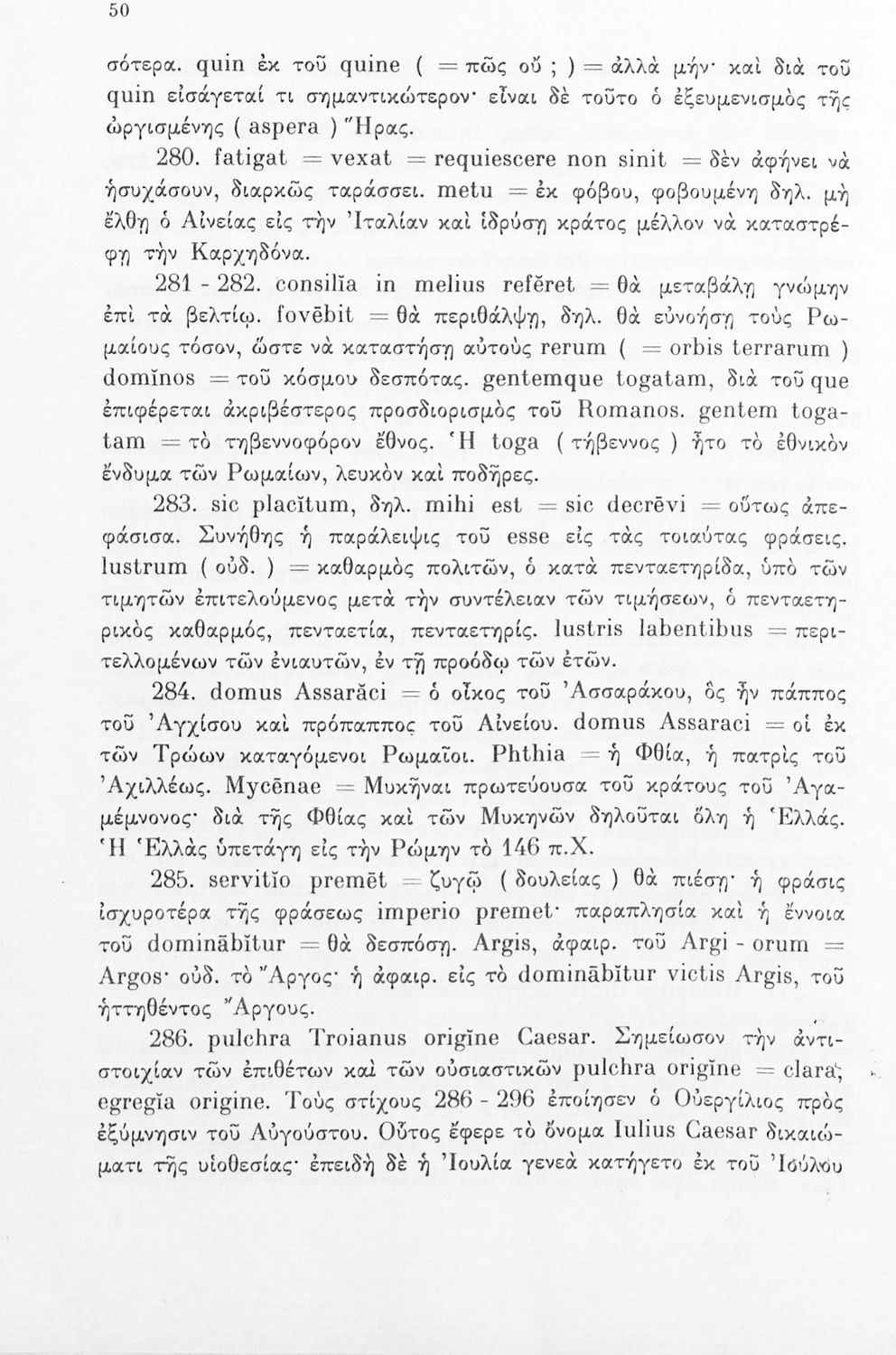 Πόπλιος Βιργίλιος Μάρων (P. Vergilius Maro), Μάρκος Τύλλιος Κικέρωνας (Marcus Tullius Ciceco), Κουίντος Οράτιος Φλάκκος (Q. Horati Flacci), Φωκίωνας Β. Βουσβούνης, Ερρίκος Σκάσσης, Ζαφείριος Ν. Φραγκίσκος (σχόλια)
