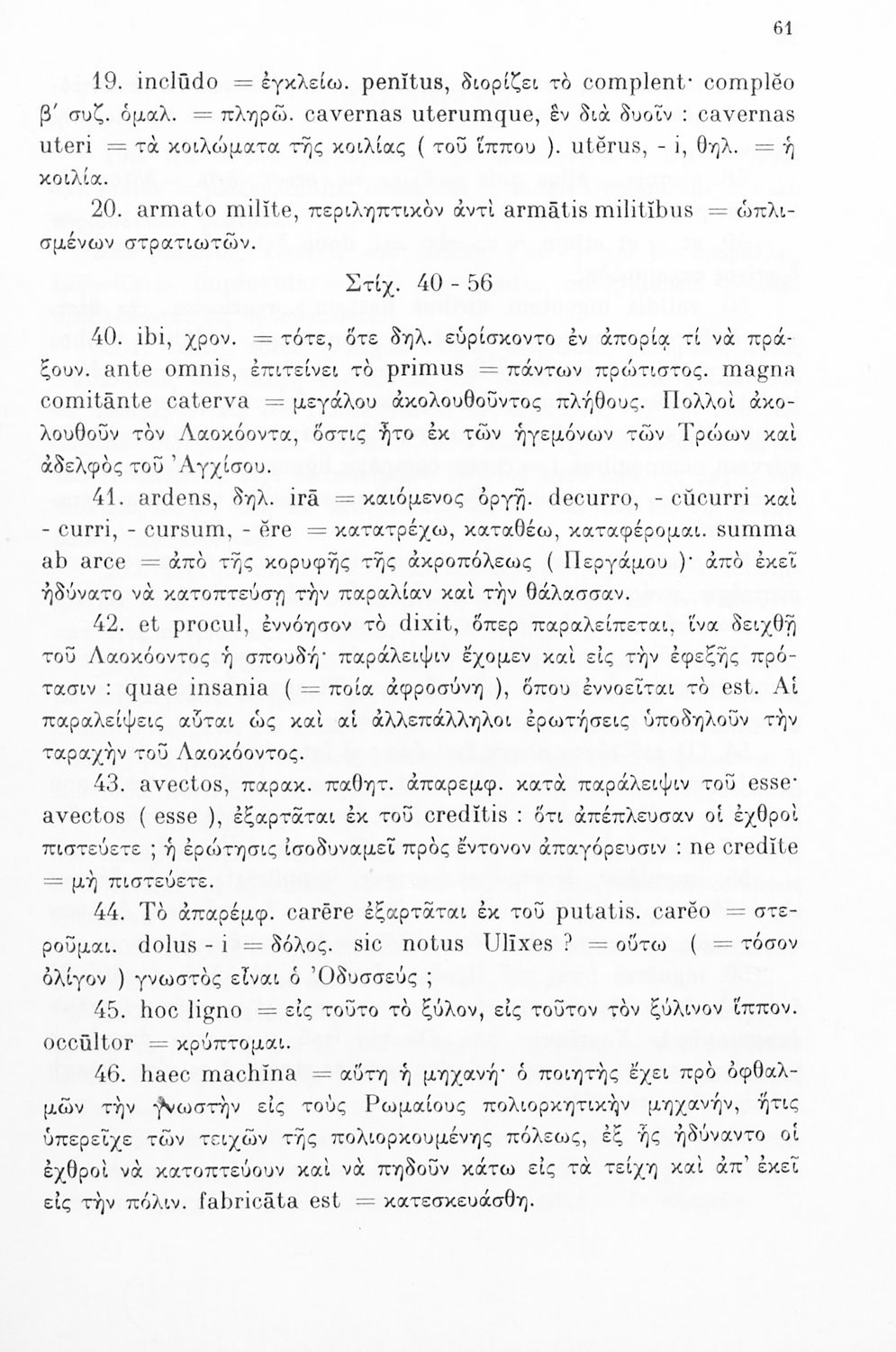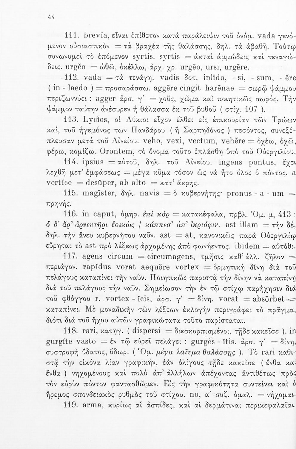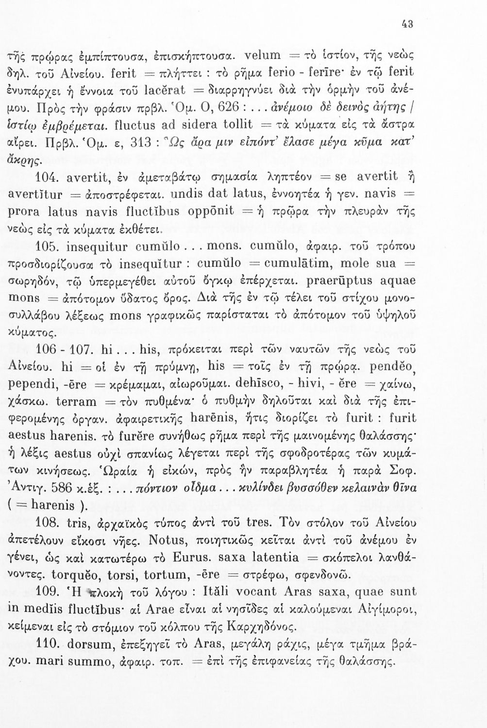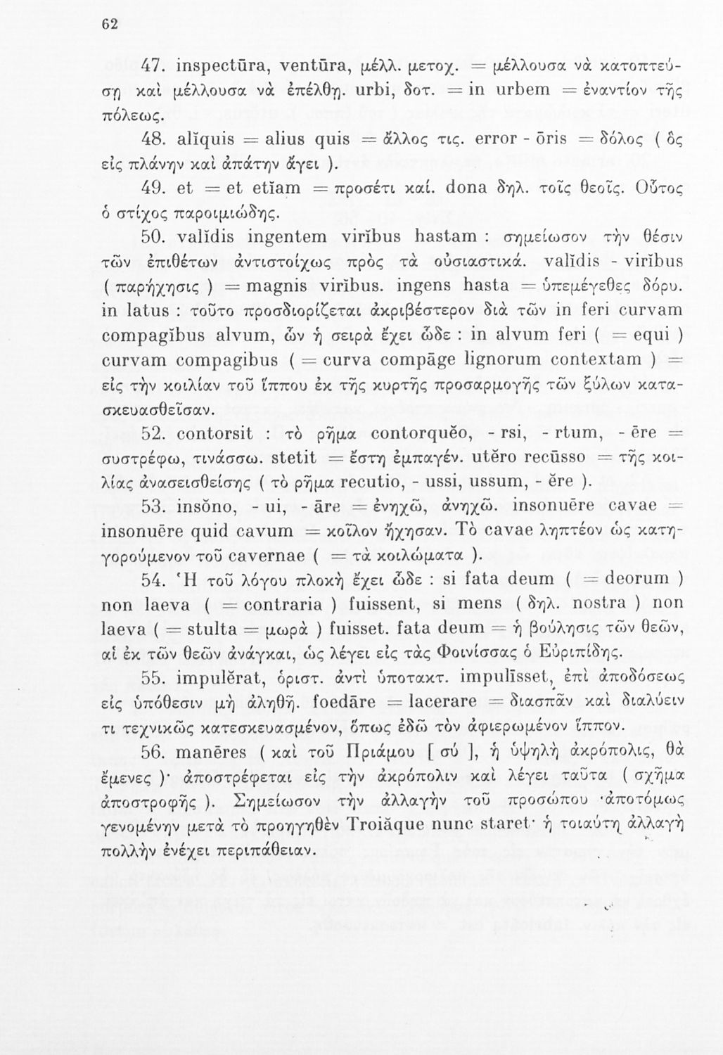 Πόπλιος Βιργίλιος Μάρων (P. Vergilius Maro), Μάρκος Τύλλιος Κικέρωνας (Marcus Tullius Ciceco), Κουίντος Οράτιος Φλάκκος (Q. Horati Flacci), Φωκίωνας Β. Βουσβούνης, Ερρίκος Σκάσσης, Ζαφείριος Ν. Φραγκίσκος (σχόλια)