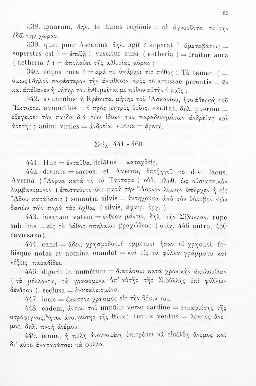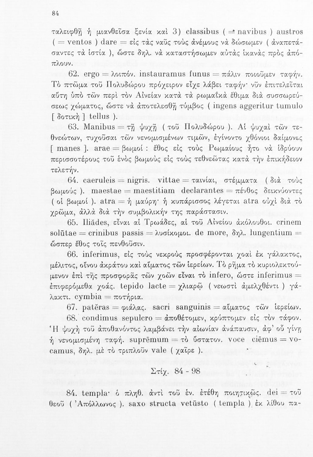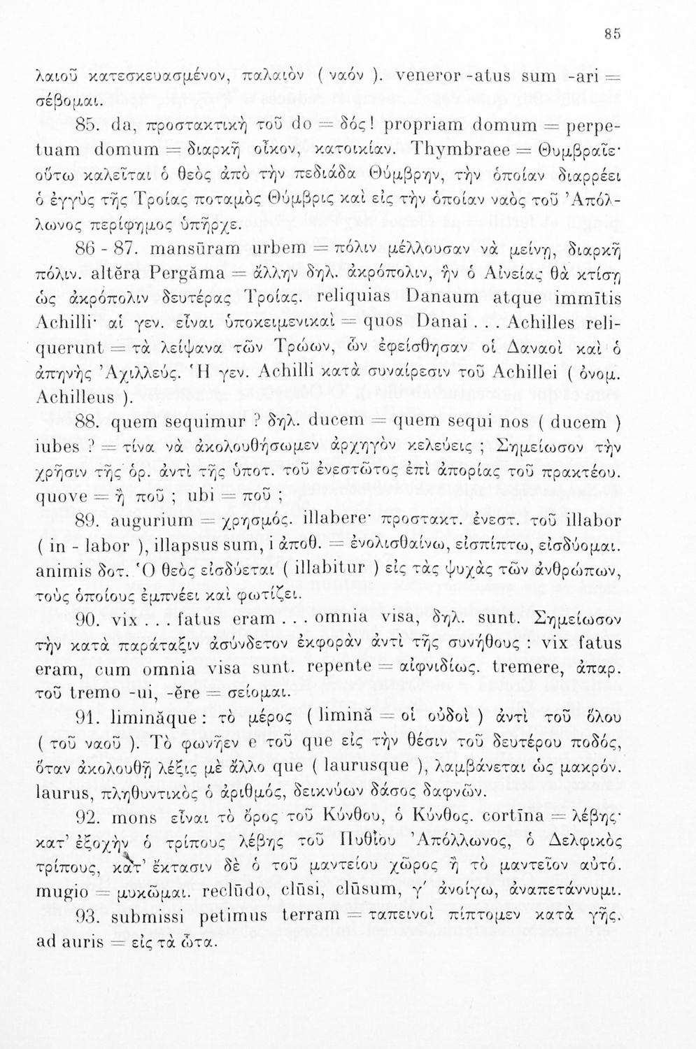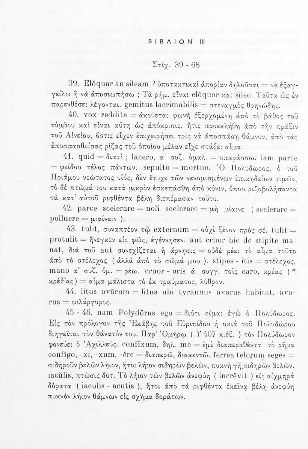 Πόπλιος Βιργίλιος Μάρων (P. Vergilius Maro), Μάρκος Τύλλιος Κικέρωνας (Marcus Tullius Ciceco), Κουίντος Οράτιος Φλάκκος (Q. Horati Flacci), Φωκίωνας Β. Βουσβούνης, Ερρίκος Σκάσσης, Ζαφείριος Ν. Φραγκίσκος (σχόλια)