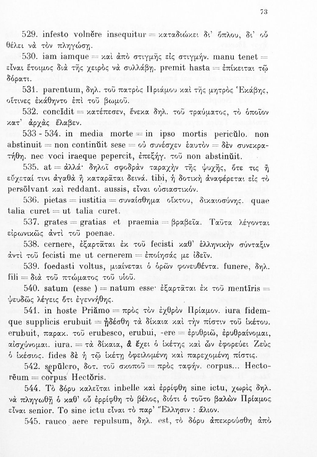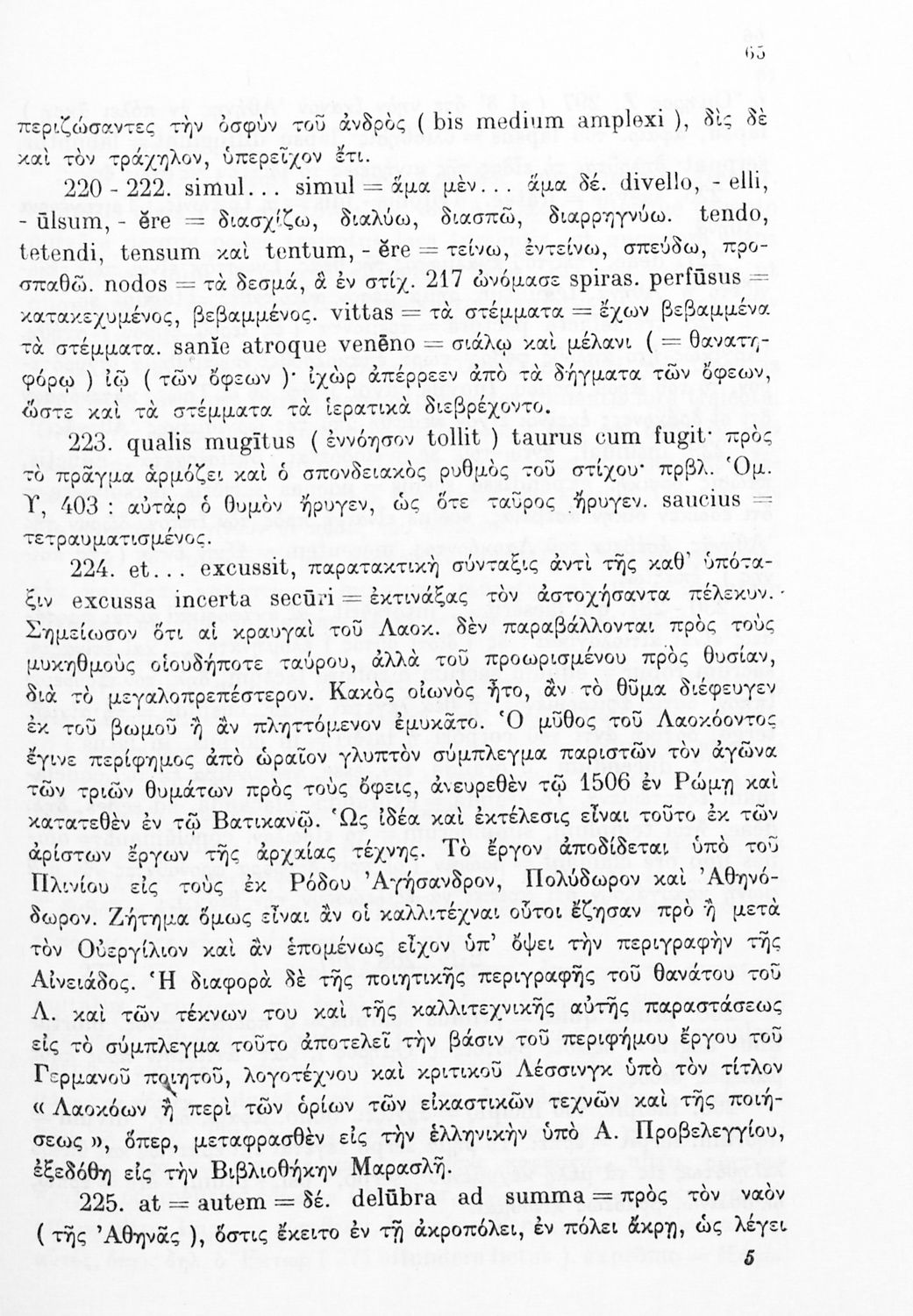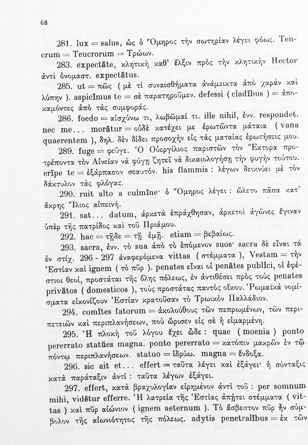 Πόπλιος Βιργίλιος Μάρων (P. Vergilius Maro), Μάρκος Τύλλιος Κικέρωνας (Marcus Tullius Ciceco), Κουίντος Οράτιος Φλάκκος (Q. Horati Flacci), Φωκίωνας Β. Βουσβούνης, Ερρίκος Σκάσσης, Ζαφείριος Ν. Φραγκίσκος (σχόλια)