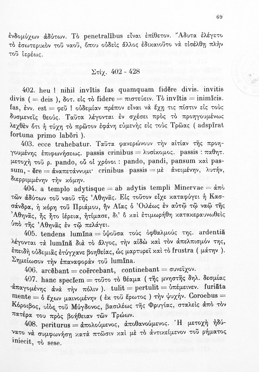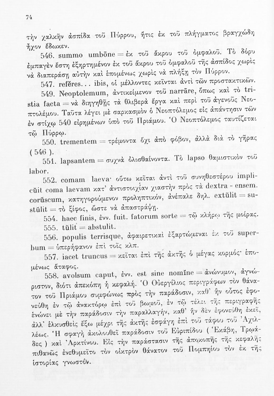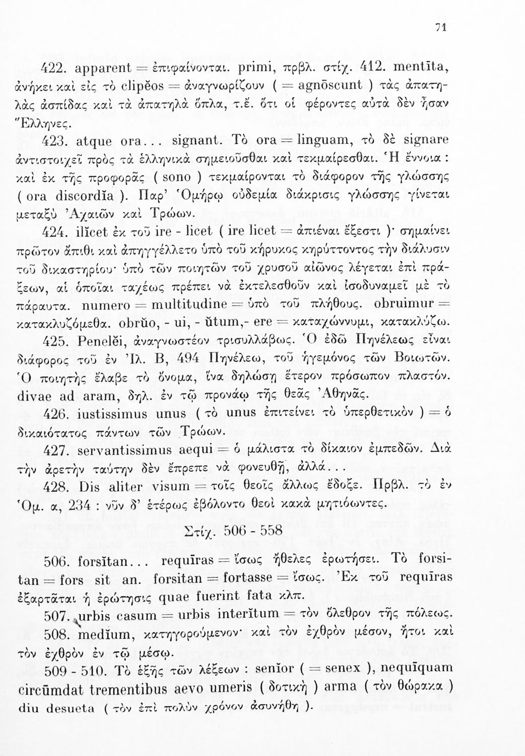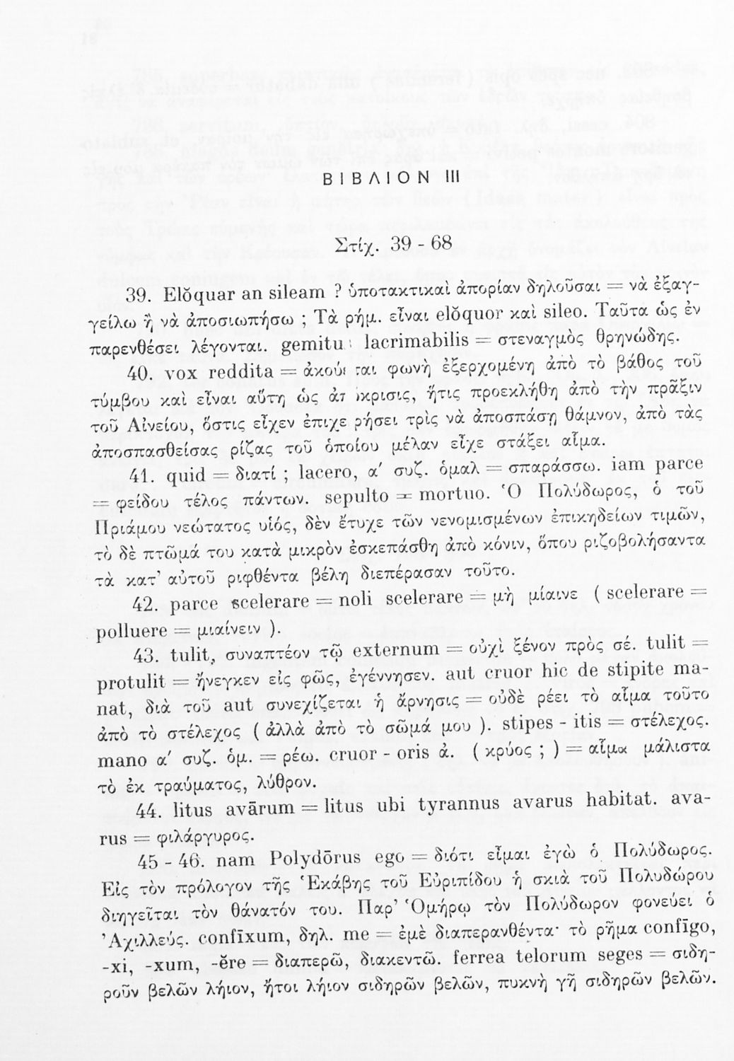 Πόπλιος Βιργίλιος Μάρων (P. Vergilius Maro), Μάρκος Τύλλιος Κικέρωνας (Marcus Tullius Ciceco), Κουίντος Οράτιος Φλάκκος (Q. Horati Flacci), Φωκίωνας Β. Βουσβούνης, Ερρίκος Σκάσσης, Ζαφείριος Ν. Φραγκίσκος (σχόλια)