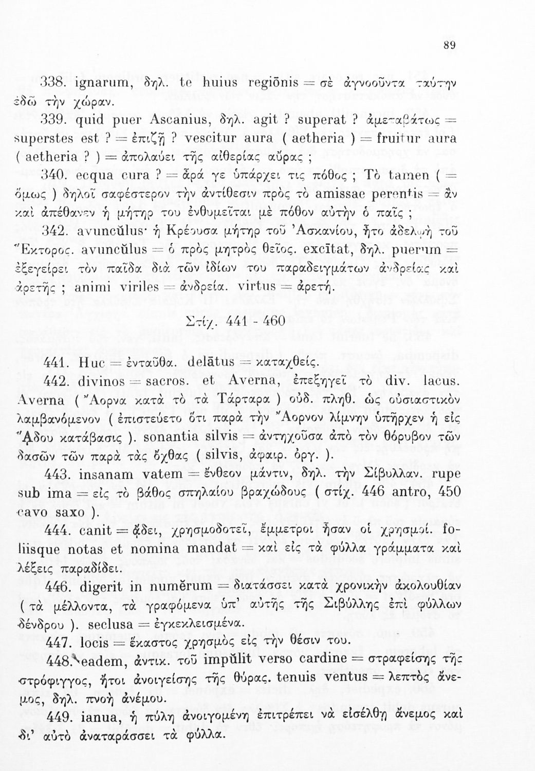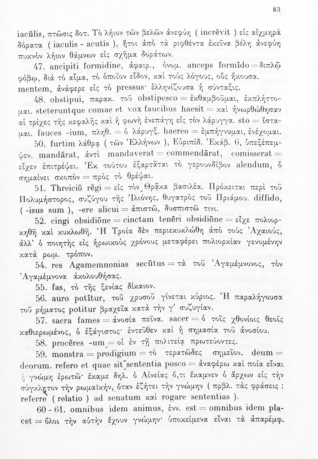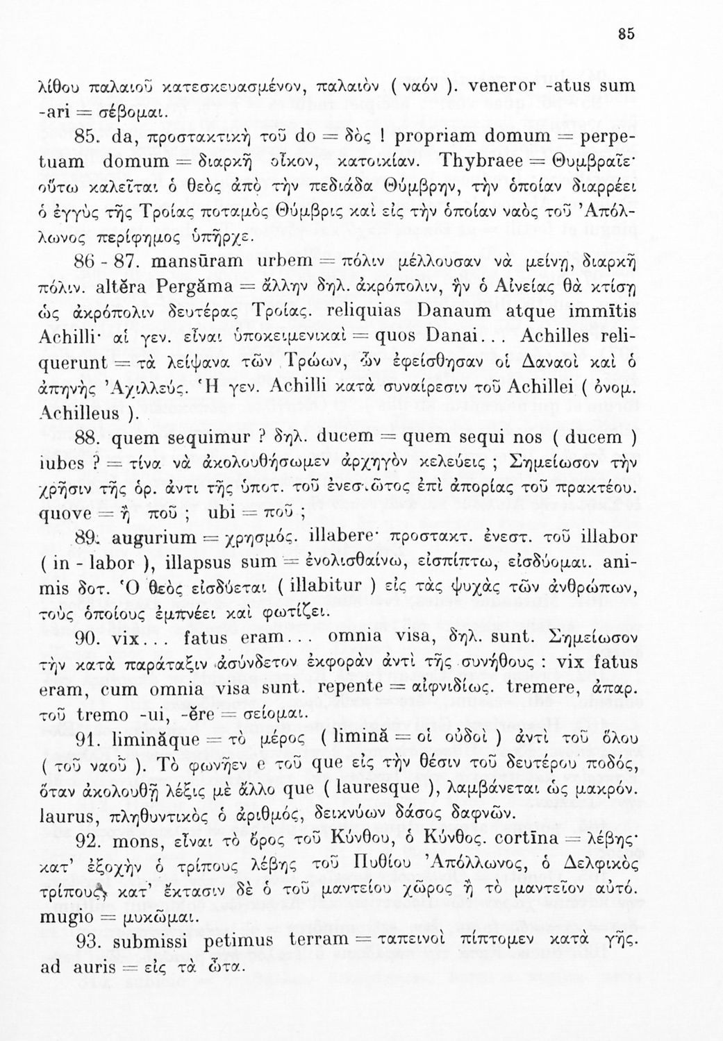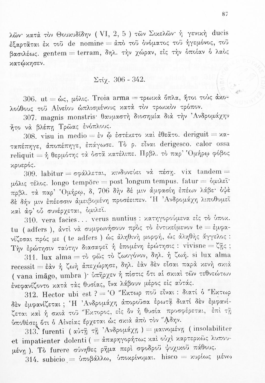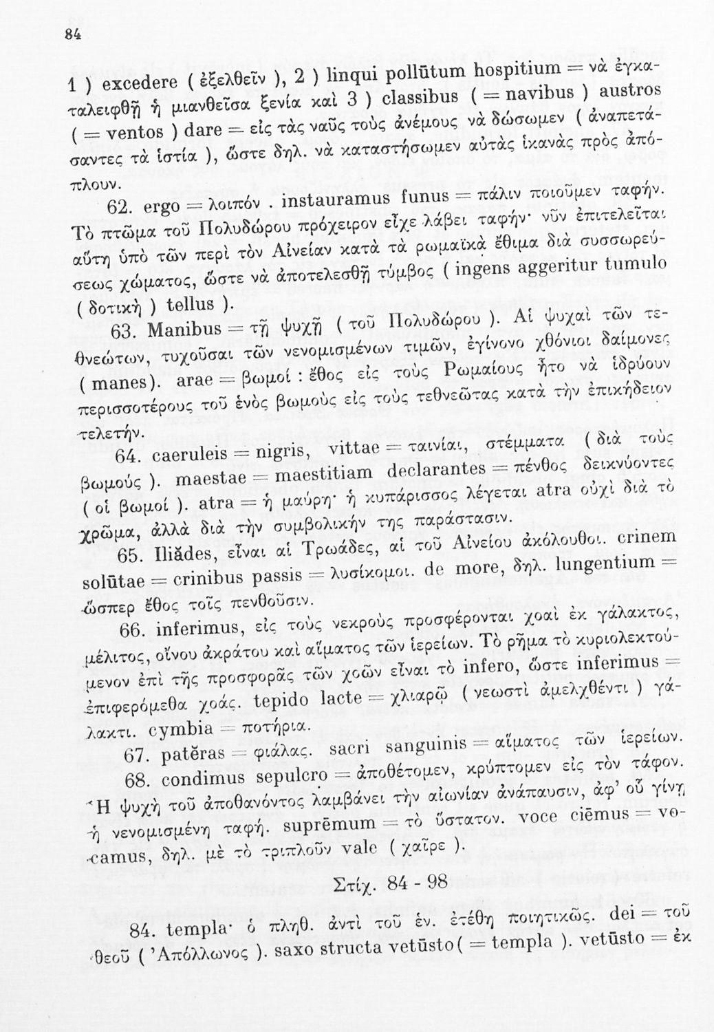Πόπλιος Βιργίλιος Μάρων (P. Vergilius Maro), Μάρκος Τύλλιος Κικέρωνας (Marcus Tullius Ciceco), Κουίντος Οράτιος Φλάκκος (Q. Horati Flacci), Φωκίωνας Β. Βουσβούνης, Ερρίκος Σκάσσης, Ζαφείριος Ν. Φραγκίσκος (σχόλια)