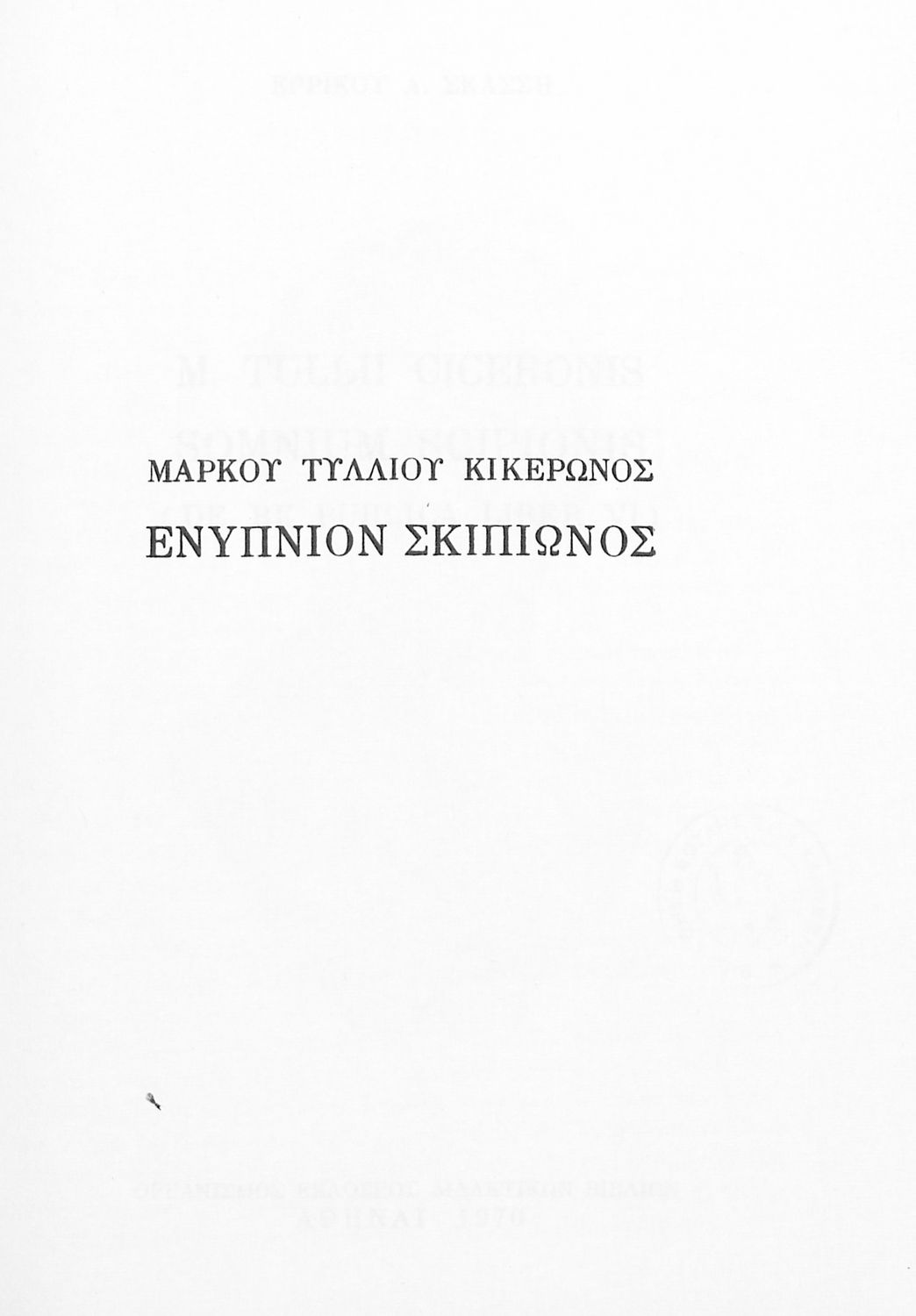 Ουεργιλίου Αινειάς (Εκλογαί), M. Tulli Ciceronis Somnium Scipionis,Οράτιου Ωδαί