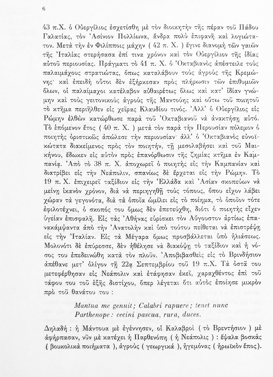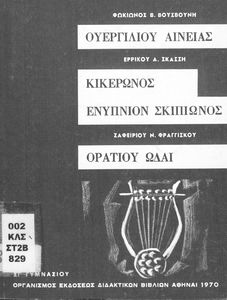Βαθμίδα εκπαίδευσης: Δευτεροβάθμια Τάξη: ΣΤ' Γυμνασίου Μάθημα: Λατινικά Γλώσσα: Απλή καθαρεύουσα Παρουσίαση περιεχομένου: Σχολικό εγχειρίδιο Λατινικών για τη ΣΤ΄ Γυμνασίου που περιέχει αποσπάσματα από έργα τριών Λατίνων συγγραφέων, βιογραφικά σημειώματα, εισαγωγικά σχόλια, και ερμηνευτικές παρατηρήσεις. |
