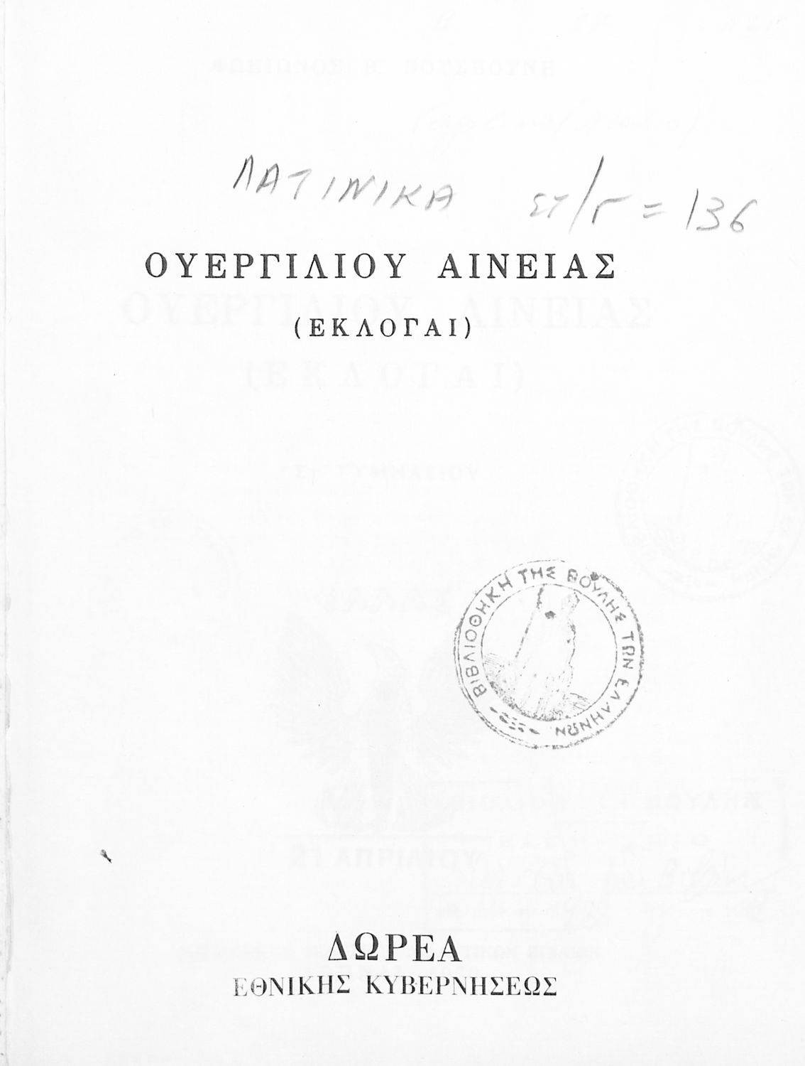 LDR 01812 2200229 4500 035 ## _a03-20556930 040 ## _aΒιβλιοθήκη της Βουλής των Ελλήνων 041 ## _ael 100 ## _aΠόπλιος Βιργίλιος Μάρων (P. Vergilius Maro) _aΜάρκος Τύλλιος Κικέρωνας (Marcus Tullius Ciceco) _aΚουίντος Οράτιος Φλάκκος (Q. Horati Flacci) _aΦωκίωνας Β. Βουσβούνης _aΕρρίκος Σκάσσης _aΖαφείριος Ν. Φραγκίσκος (εισαγωγή/σχόλια) 110 ## _a20556930 245 0# _aΟυεργιλίου Αινειάς (Εκλογαί), M. Tulli Ciceronis Somnium Scipionis,Οράτιου Ωδαί 250 ## _a12η Έκδοση 260 ## _aΑθήνα _bΟργανισμός Εκδόσεως Διδακτικών Βιβλίων _c1970 300 ## _a192 _bΕξώφυλλο (έγχρωμο) 520 ## _aΣχολικό εγχειρίδιο Λατινικών για τη ΣΤ΄ Γυμνασίου που περιέχει αποσπάσματα από έργα τριών Λατίνων συγγραφέων, βιογραφικά σημειώματα, εισαγωγικά σχόλια, και ερμηνευτικές παρατηρήσεις. 521 ## _aΣΤ' Γυμνασίου 522 ## _aΕλλάδα 546 ## _aΑπλή καθαρεύουσα 563 ## _aΜαλακό Εξώφυλλο 583 ## _a2016/7-4-1970 _c1970 650 #4 _aΆγχισος _aΑνδρομάχη _aΒάκχος _aΔίας _aΔούρειος Ίππος _aΕρμής _aΉρα _aΚαρχηδόνα _aΚορνήλιος Σκιπίων Αιμιλιανός _aΜ Αγρίππας _aΜαικήνας _aΜανίλιος _aΜόμμιος _aΠρίαμος _aΤρώες 700 ## _aΛουΐζα Μοντεσάντου (εξώφυλλο)