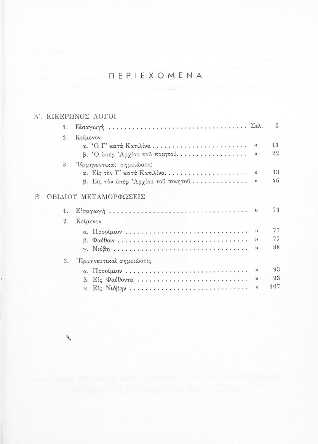 Κικέρωνος Λόγοι – Ο Τρίτος κατά Κατιλίνα και ο Υπέρ Αρχίου του Ποιητού τάξις Ε' / Οβίδιου Μεταμορφώσεις (Εκλογαί) δια την Ε΄ τάξιν των Γυμνασίων