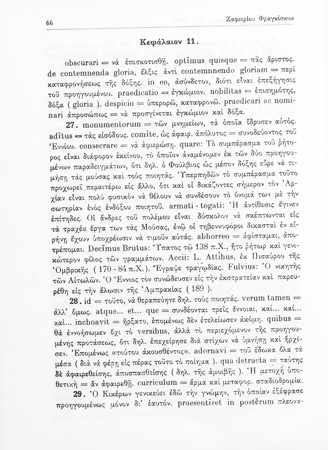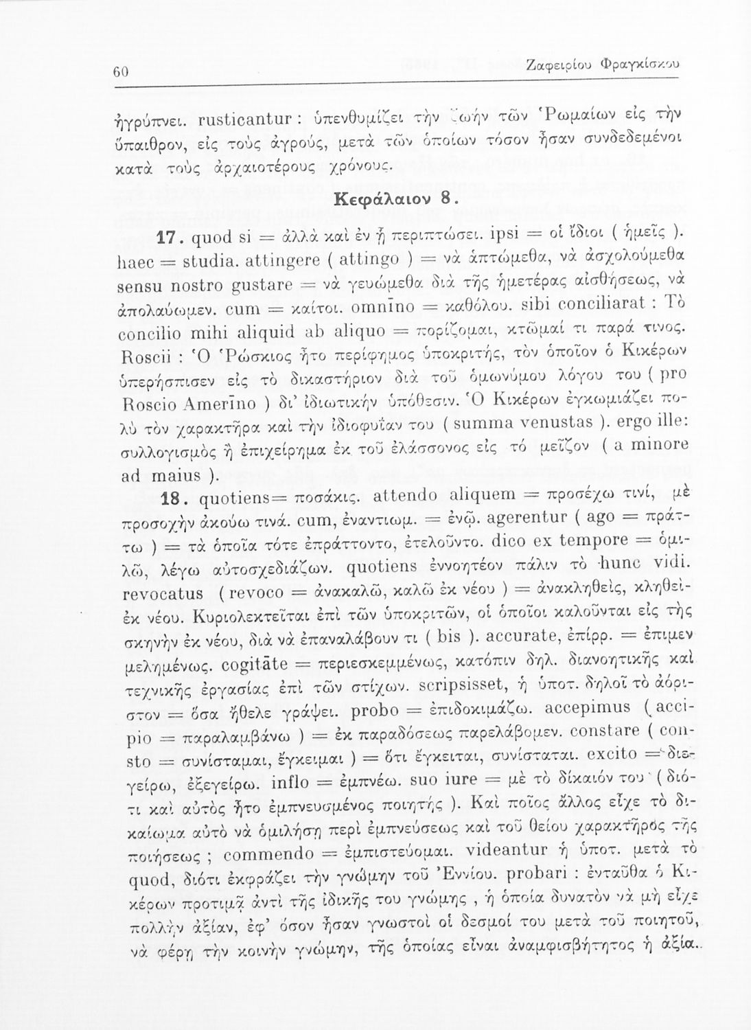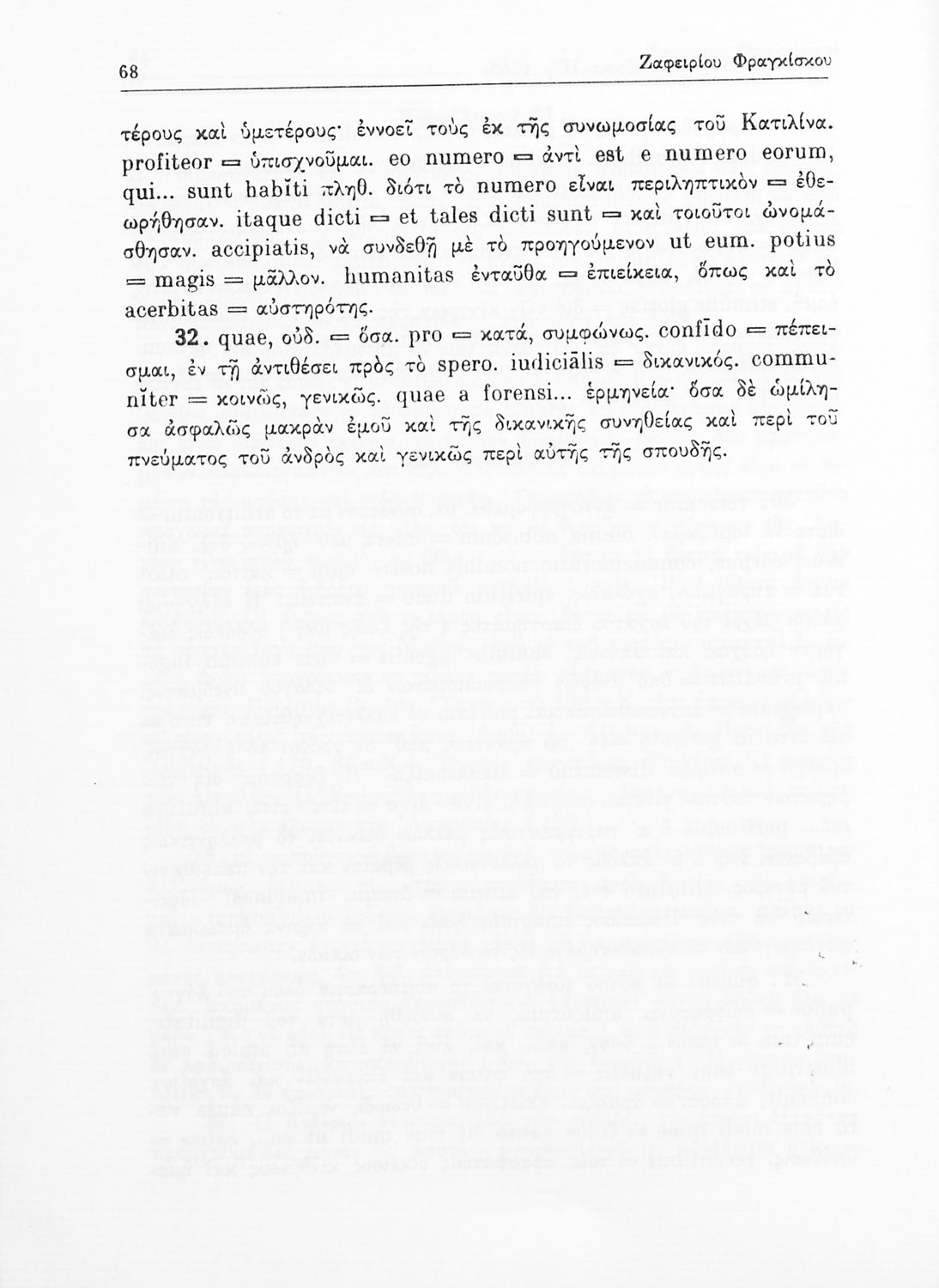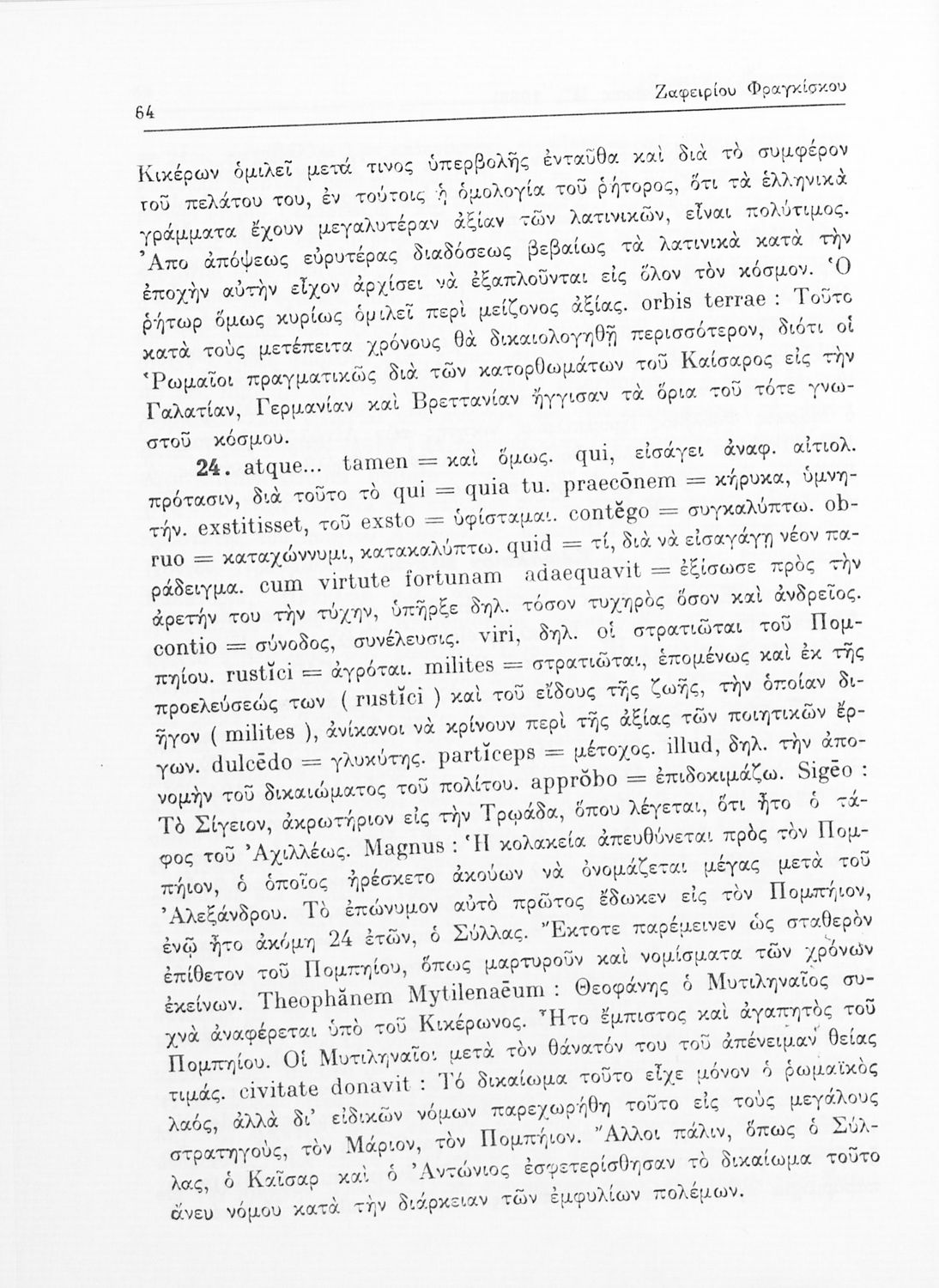 Μ. Τύλλιος Κικέρωνας (Marcus Tullius Cicero), Ζαφείριος Ν. Φραγκίσκος (σχόλια)