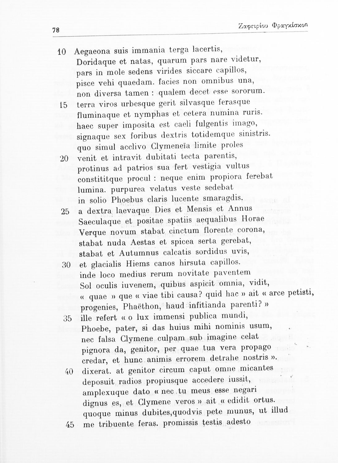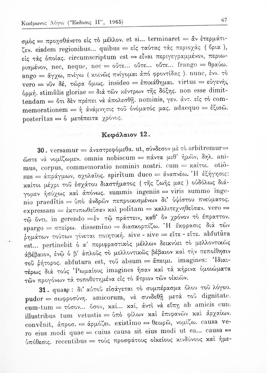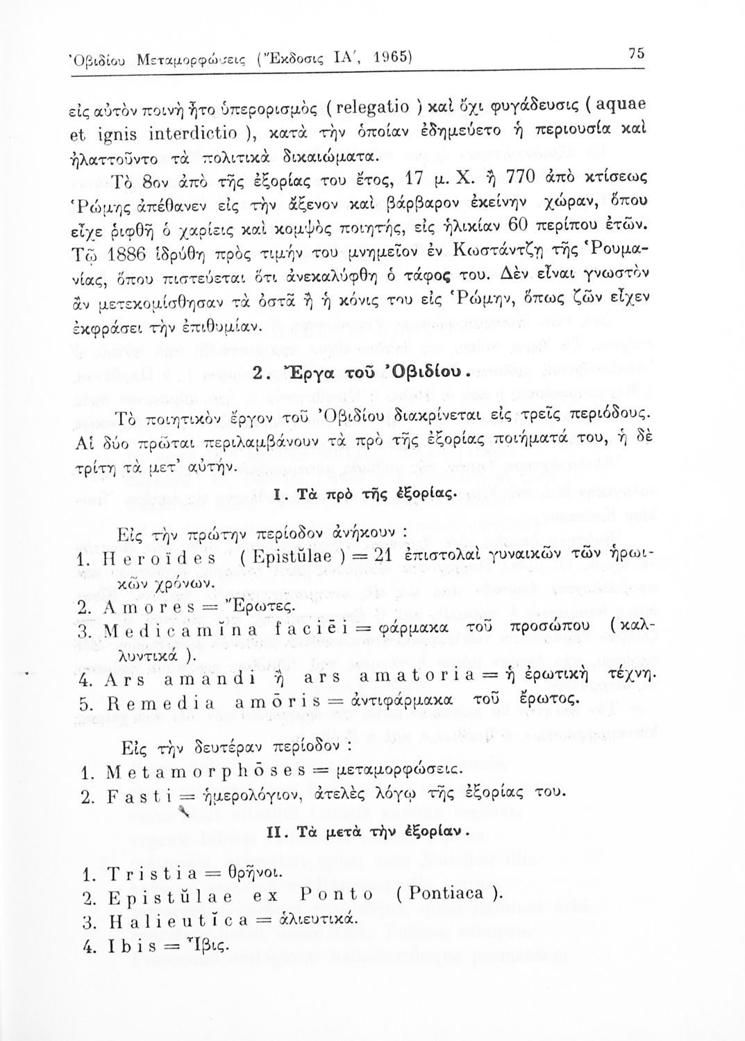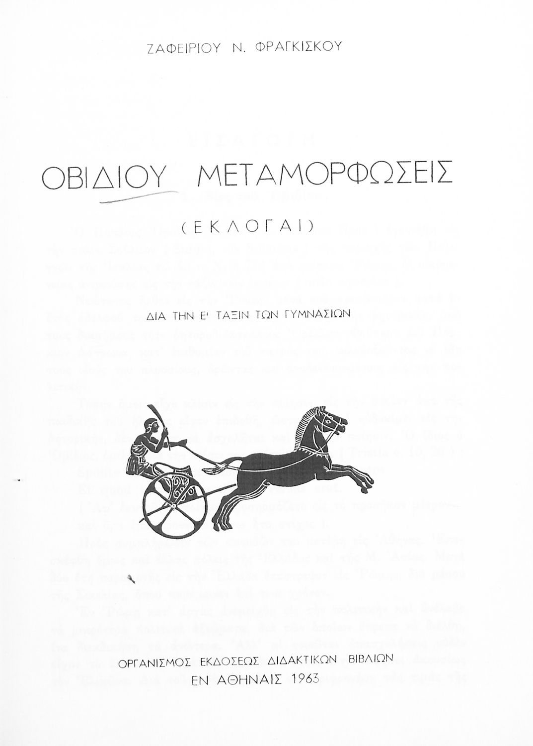 Σχολικό εγχειρίδιο Λατινικών για την Ε΄ Γυμνασίου παλαιού τύπου και την ΣΤ΄ Γυμνασίου νέου τύπου ου περιέχει βιογραφικό σημείωμα των Κικέρωνα και Οβίδιου, εισαγωγικά σχόλια, κείμενο και ερμηνευτικές σημειώσεις.