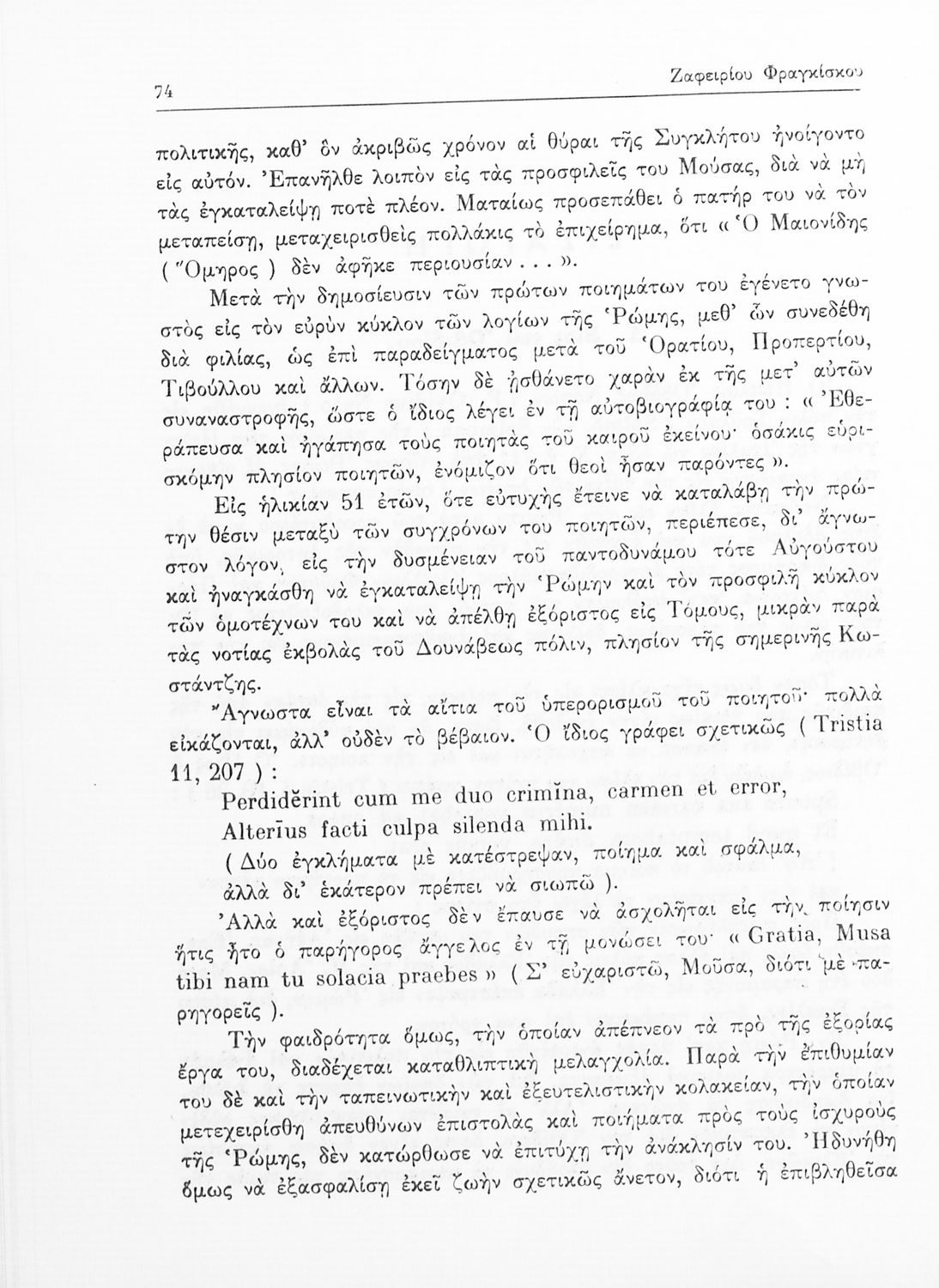 Κικέρωνας, Οβίδιος, Ζαφείριος Ν. Φραγκίσκος ( εισαγωγή, σχόλια)