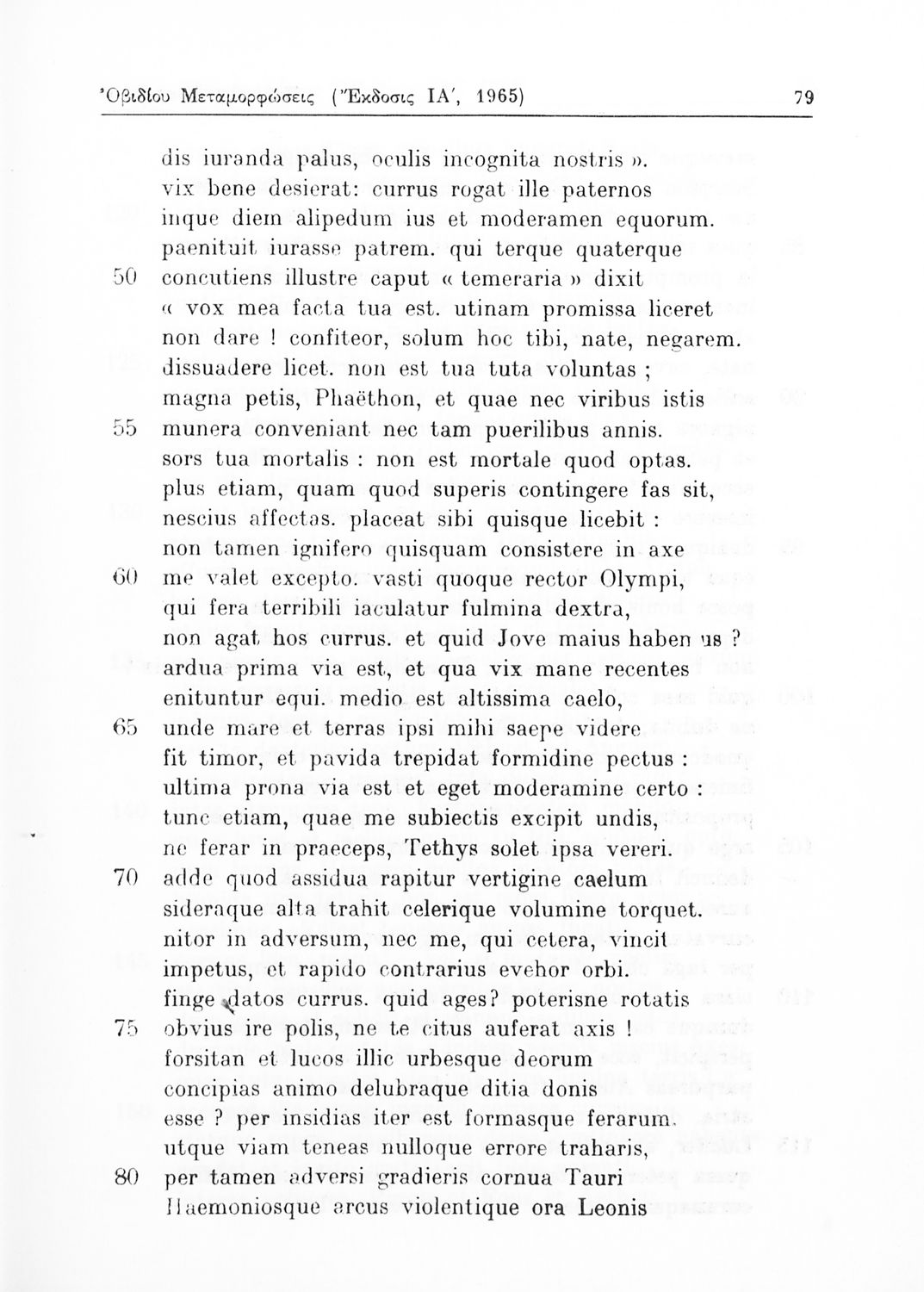 Σχολικό εγχειρίδιο Λατινικών της Ε΄ Γυμνασίου που περιέχει τους Λόγους του Κικέρωνα, Ο Τρίτος κατά Κατιλίνα και ο Υπέρ Αρχίου του Ποιητού, και τις Μεταμορφώσεις του Οβίδιου, Φαίδων και Νιόβη, και γλωσσικές και ερμηνευτικές σημειώσεις.