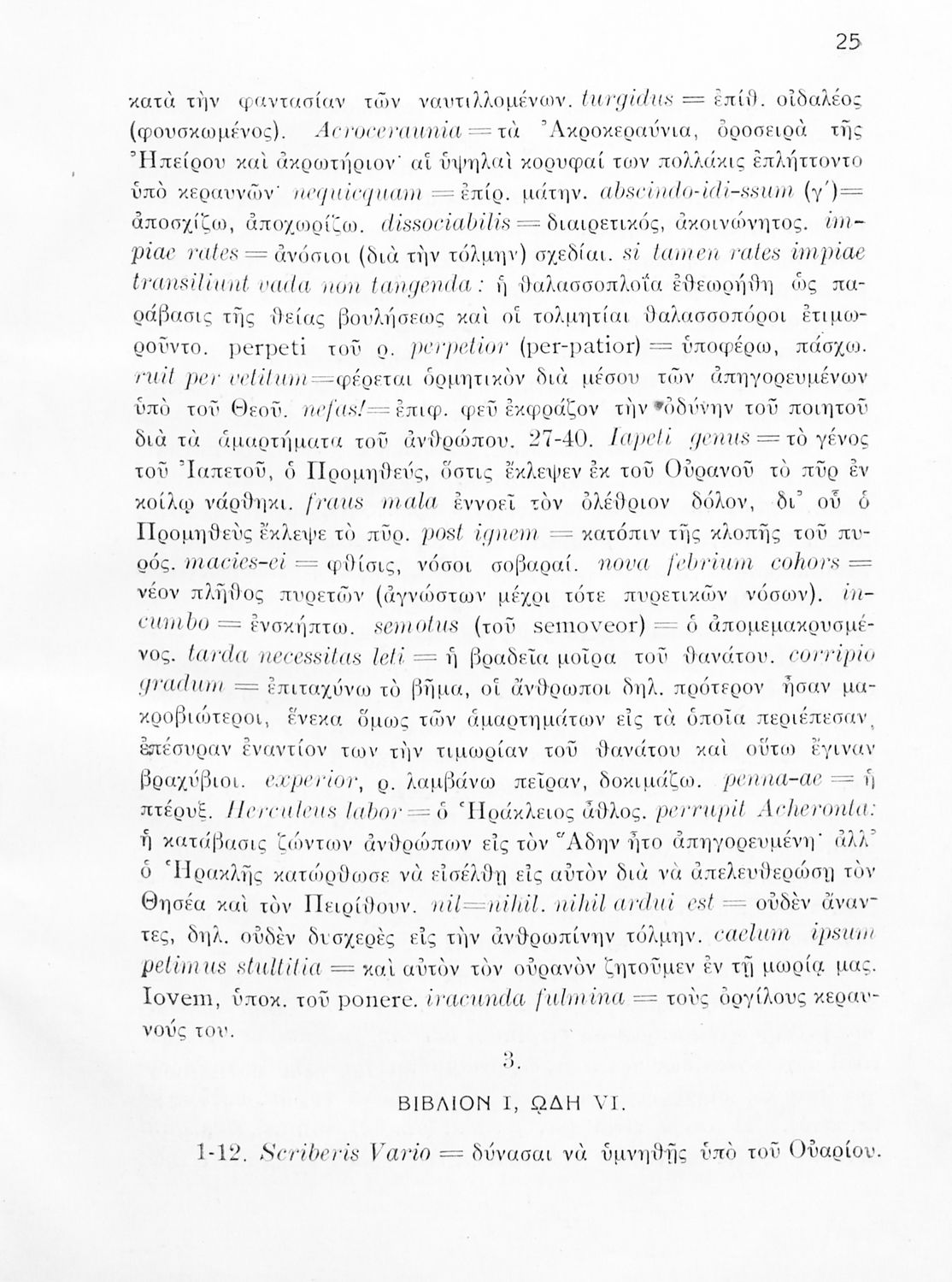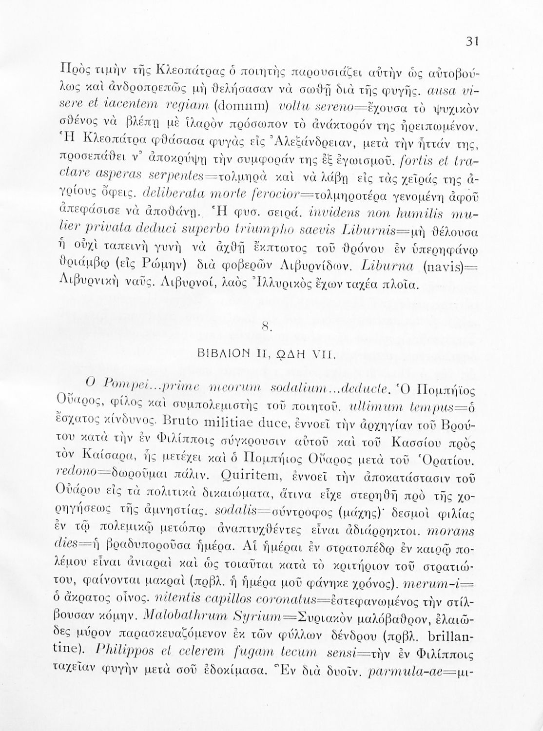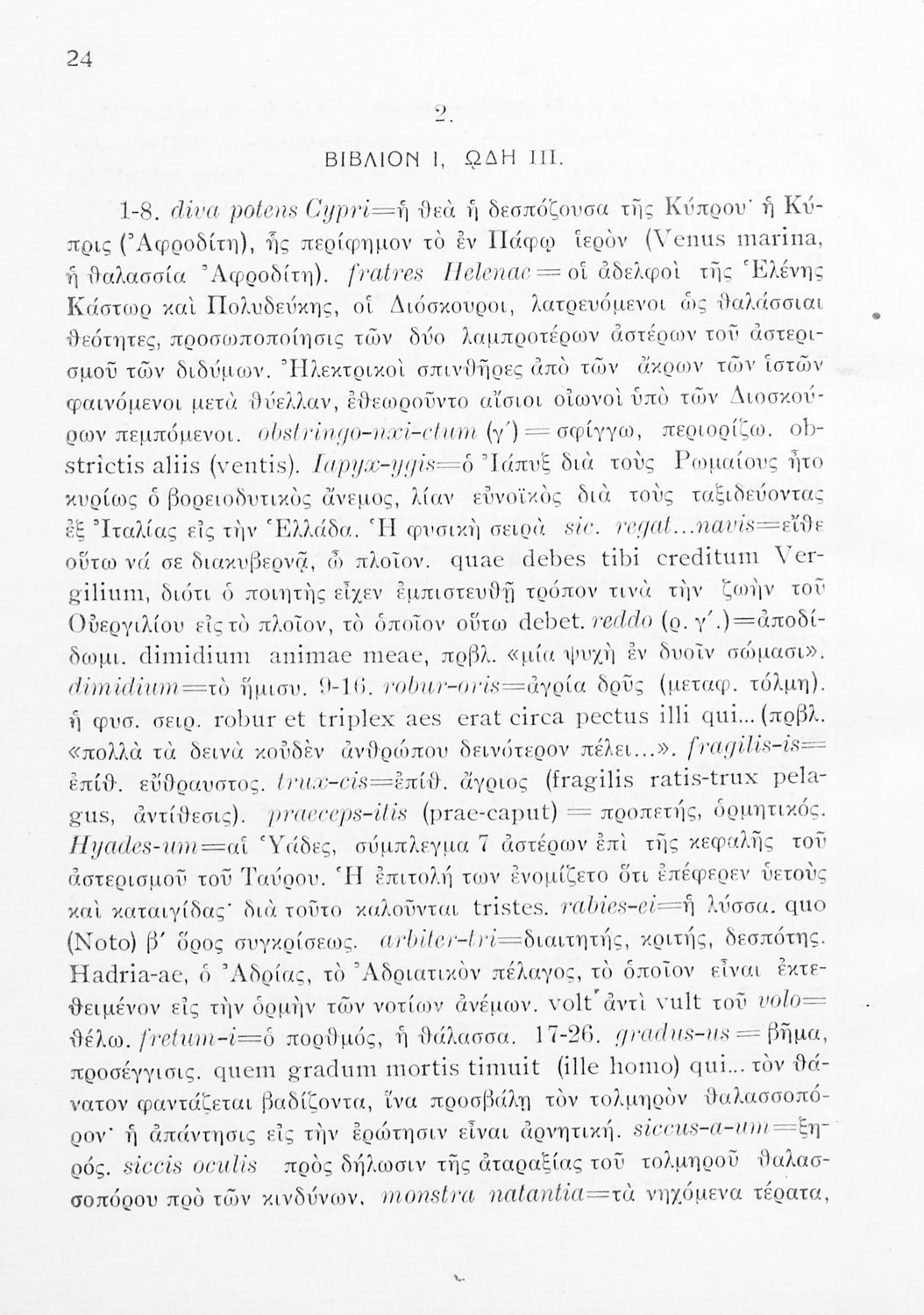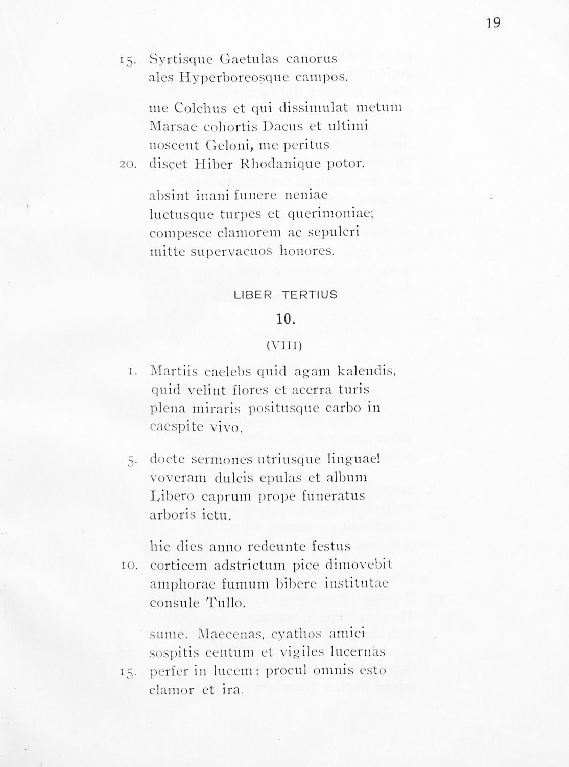 Σχολικό εγχειρίδιο Λατινικών της ΣΤ ' τάξις Γυμνασίων παλαιού τύπου. Το βιβλίο περιέχει επιλογές από το έργο του Οράτιου, Ωδαί. Αρχίζει με μια εισαγωγή για τη ζωή και το έργο του Οράτιου. Στο δεύτερο μέρος παραθέτει το κείμενο στο πρωτότυπο. Τέλος, περιλαμβάνει ερμηνευτικές σημειώσεις επί του κειμένου.