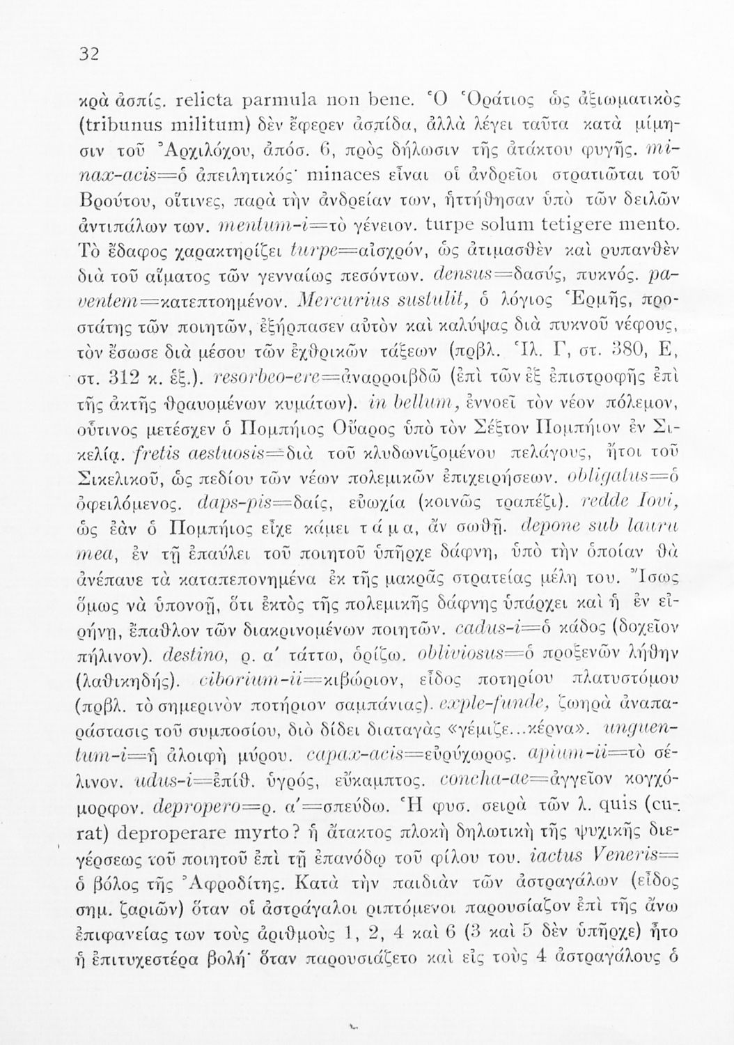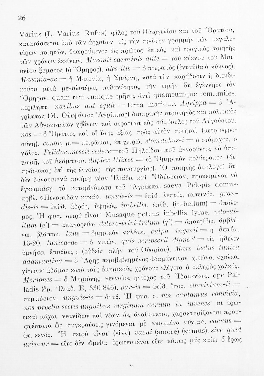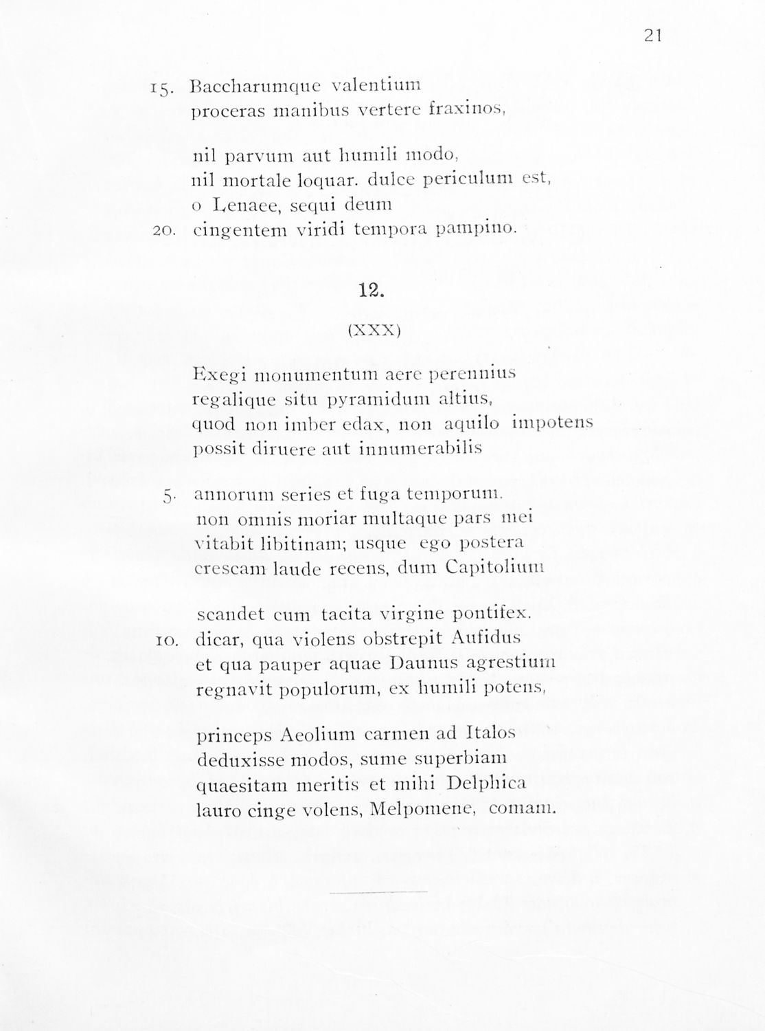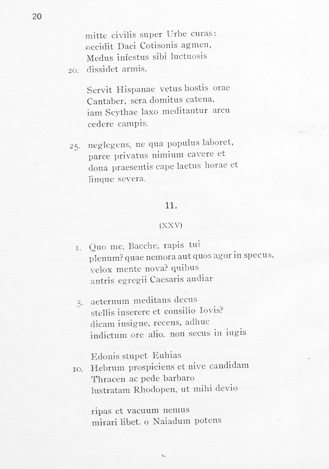 Σχολικό εγχειρίδιο Λατινικών της ΣΤ ' τάξις Γυμνασίων παλαιού τύπου. Το βιβλίο περιέχει επιλογές από το έργο του Οράτιου, Ωδαί. Αρχίζει με μια εισαγωγή για τη ζωή και το έργο του Οράτιου. Στο δεύτερο μέρος παραθέτει το κείμενο στο πρωτότυπο. Τέλος, περιλαμβάνει ερμηνευτικές σημειώσεις επί του κειμένου.