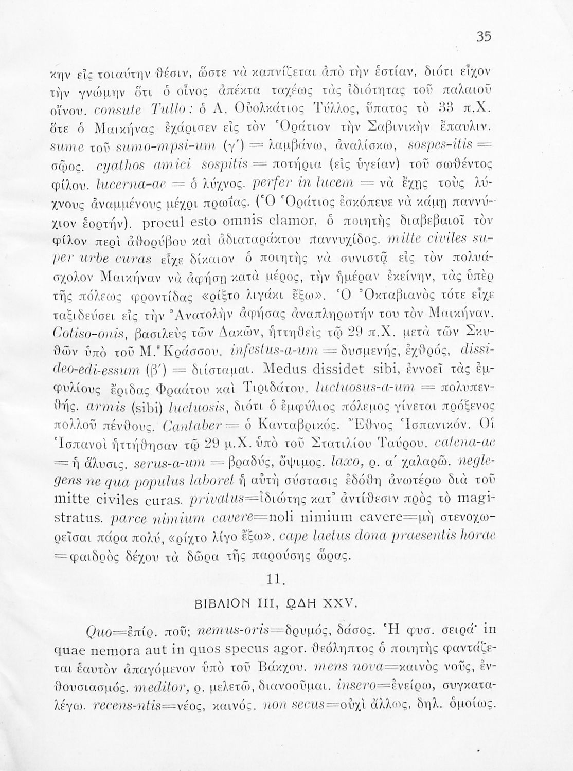 Σχολικό εγχειρίδιο Λατινικών της ΣΤ ' τάξις Γυμνασίων παλαιού τύπου. Το βιβλίο περιέχει επιλογές από το έργο του Οράτιου, Ωδαί. Αρχίζει με μια εισαγωγή για τη ζωή και το έργο του Οράτιου. Στο δεύτερο μέρος παραθέτει το κείμενο στο πρωτότυπο. Τέλος, περιλαμβάνει ερμηνευτικές σημειώσεις επί του κειμένου.