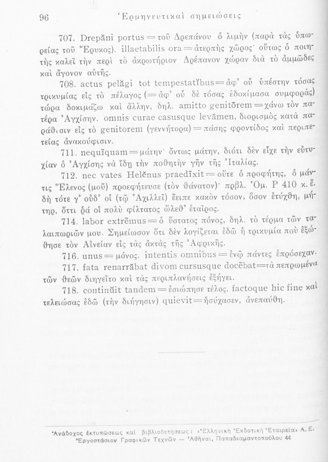 Σχολικό εγχειρίδιο Λατινικών ΣΤ΄ Γυμνασίου που περιέχει βιογραφικό σημείωμα του Βιργίλιου, αποσπάσματα από την Αινειάδα, εισαγωγικά σχόλια, και ερμηνευτικές σημειώσεις. Ο συγγραφέας ήταν πρώην γενικός επιθεωρητής Μέσης Εκπαίδευσης.