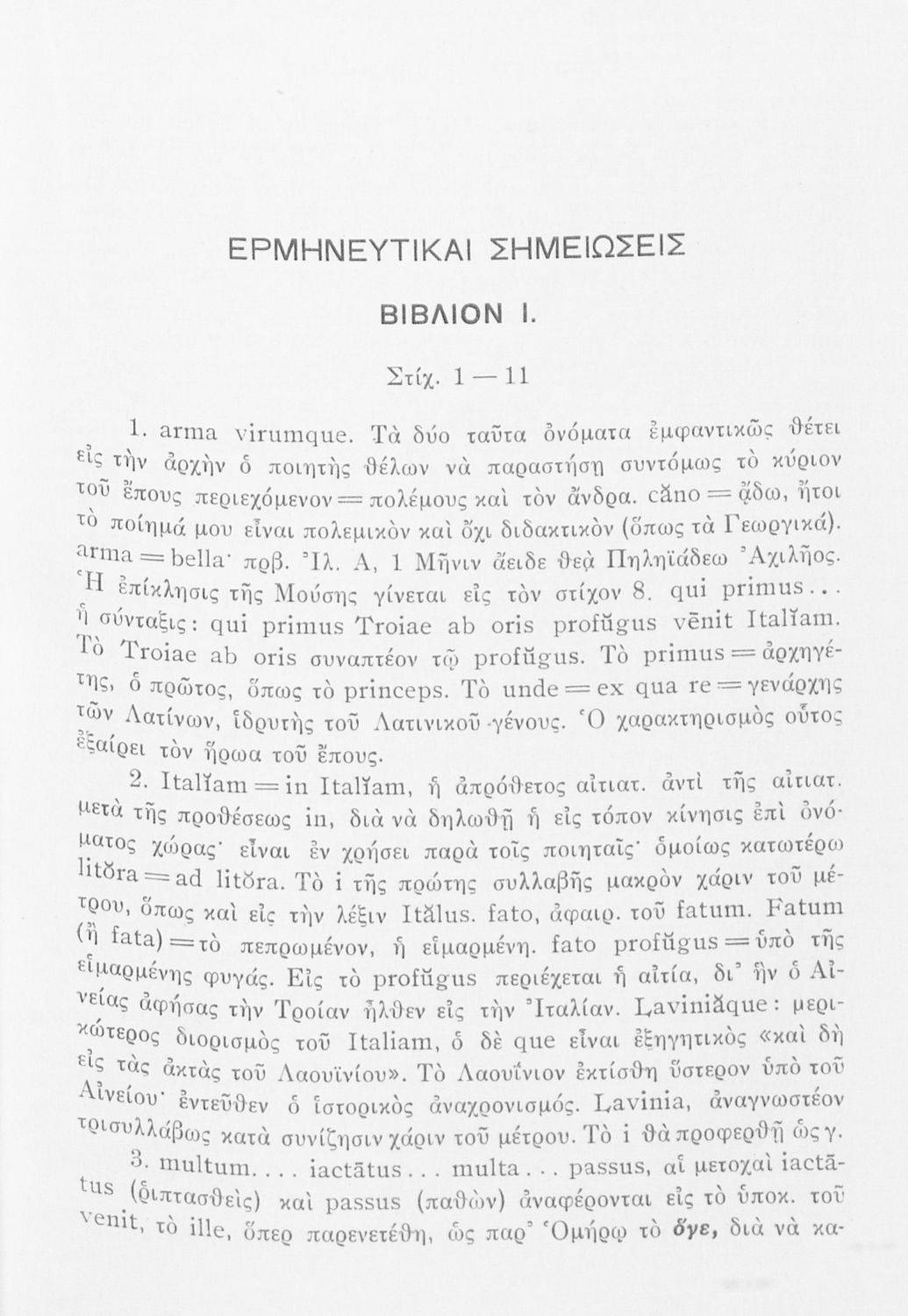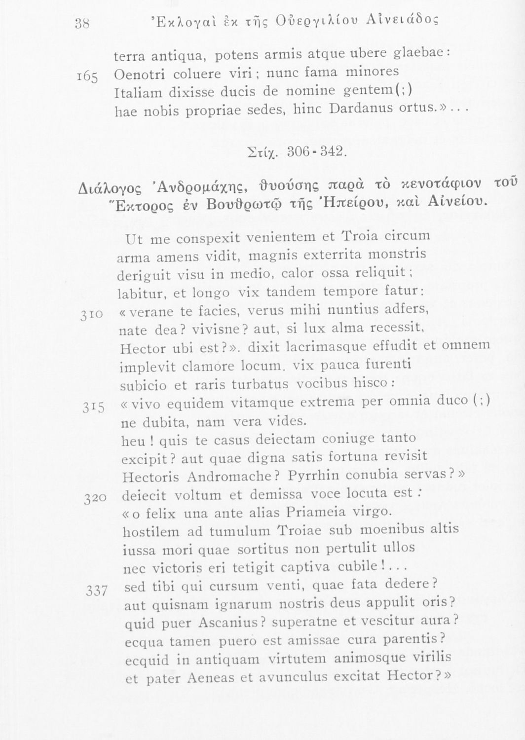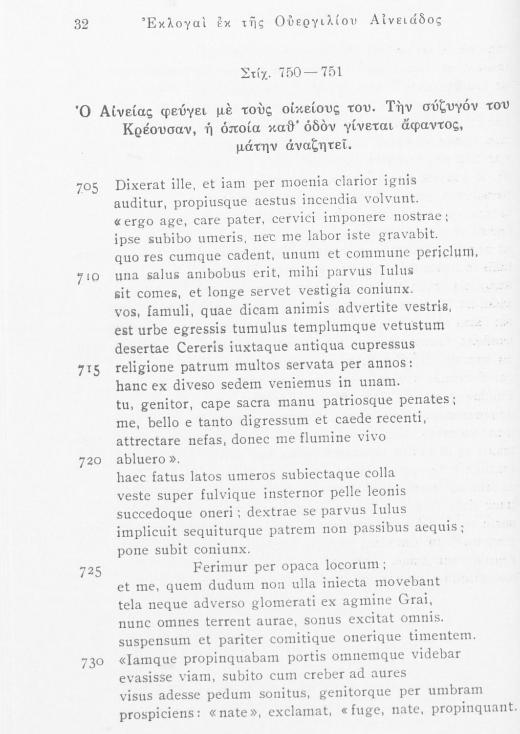 Σχολικό εγχειρίδιο Λατινικών ΣΤ΄ Γυμνασίου που περιέχει βιογραφικό σημείωμα του Βιργίλιου, αποσπάσματα από την Αινειάδα, εισαγωγικά σχόλια, και ερμηνευτικές σημειώσεις. Ο συγγραφέας ήταν πρώην γενικός επιθεωρητής Μέσης Εκπαίδευσης.