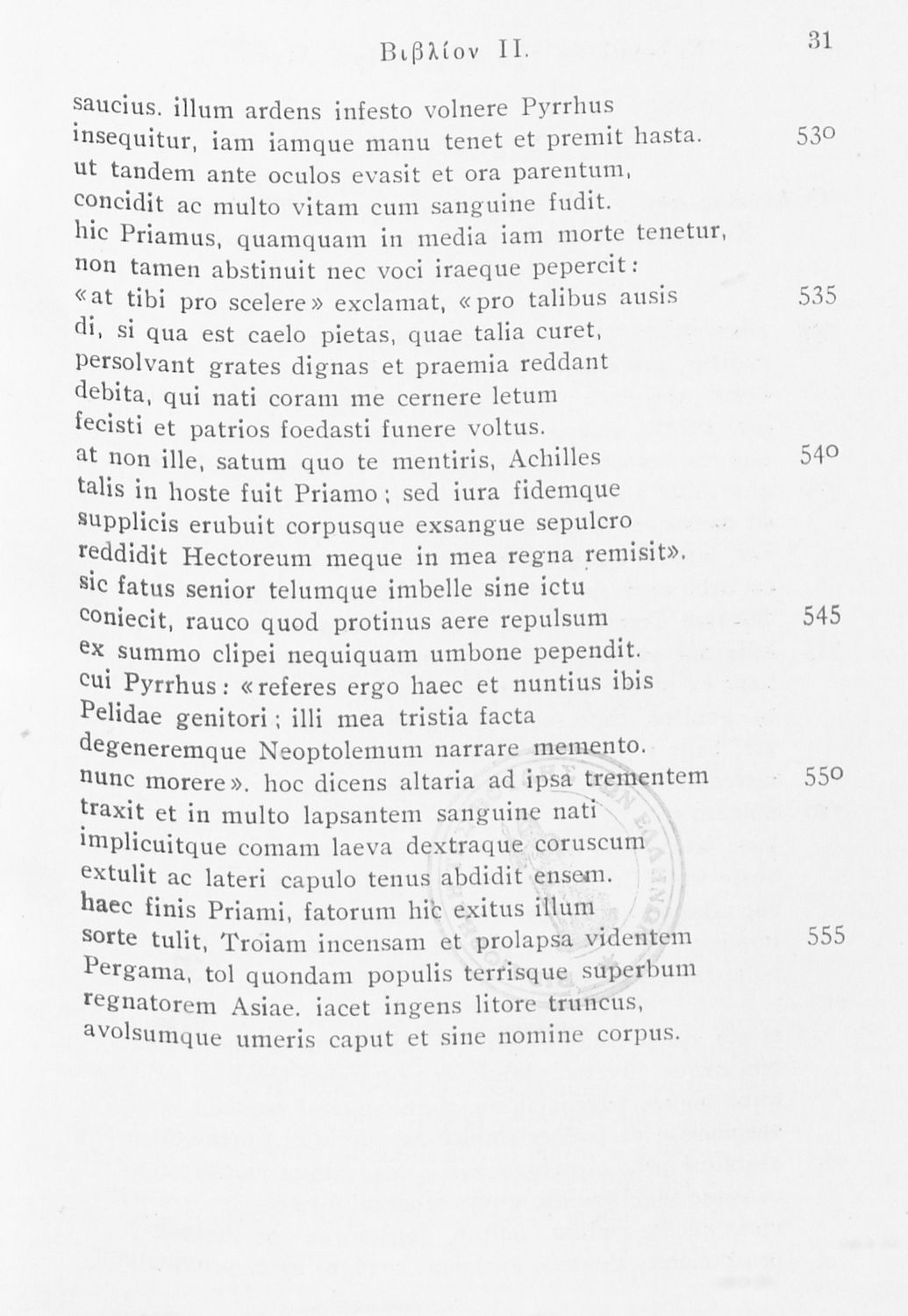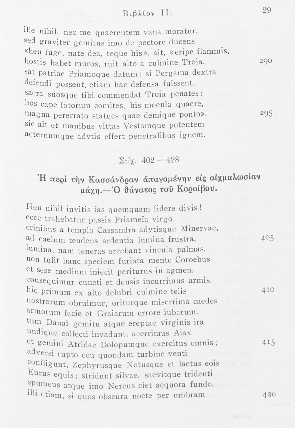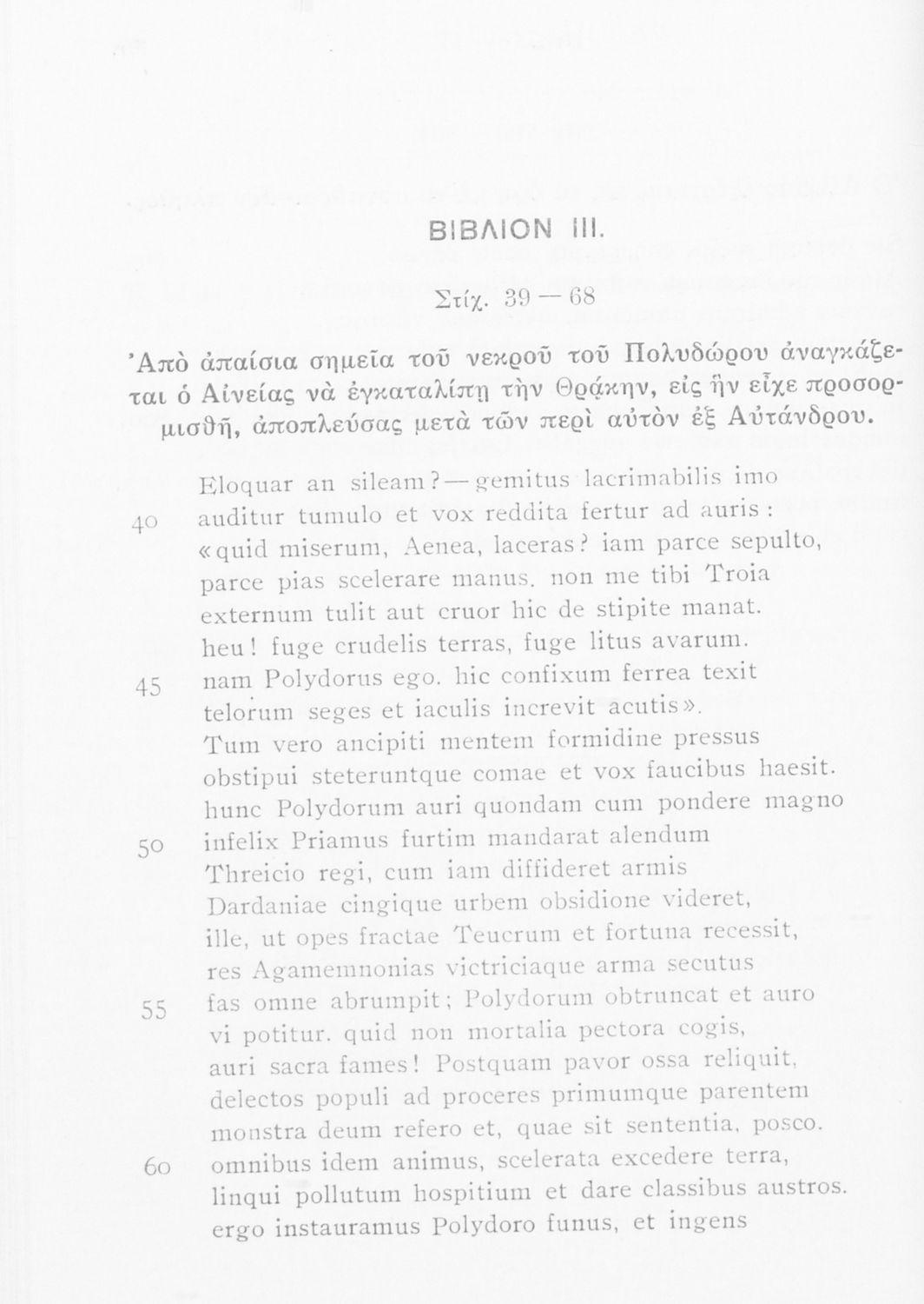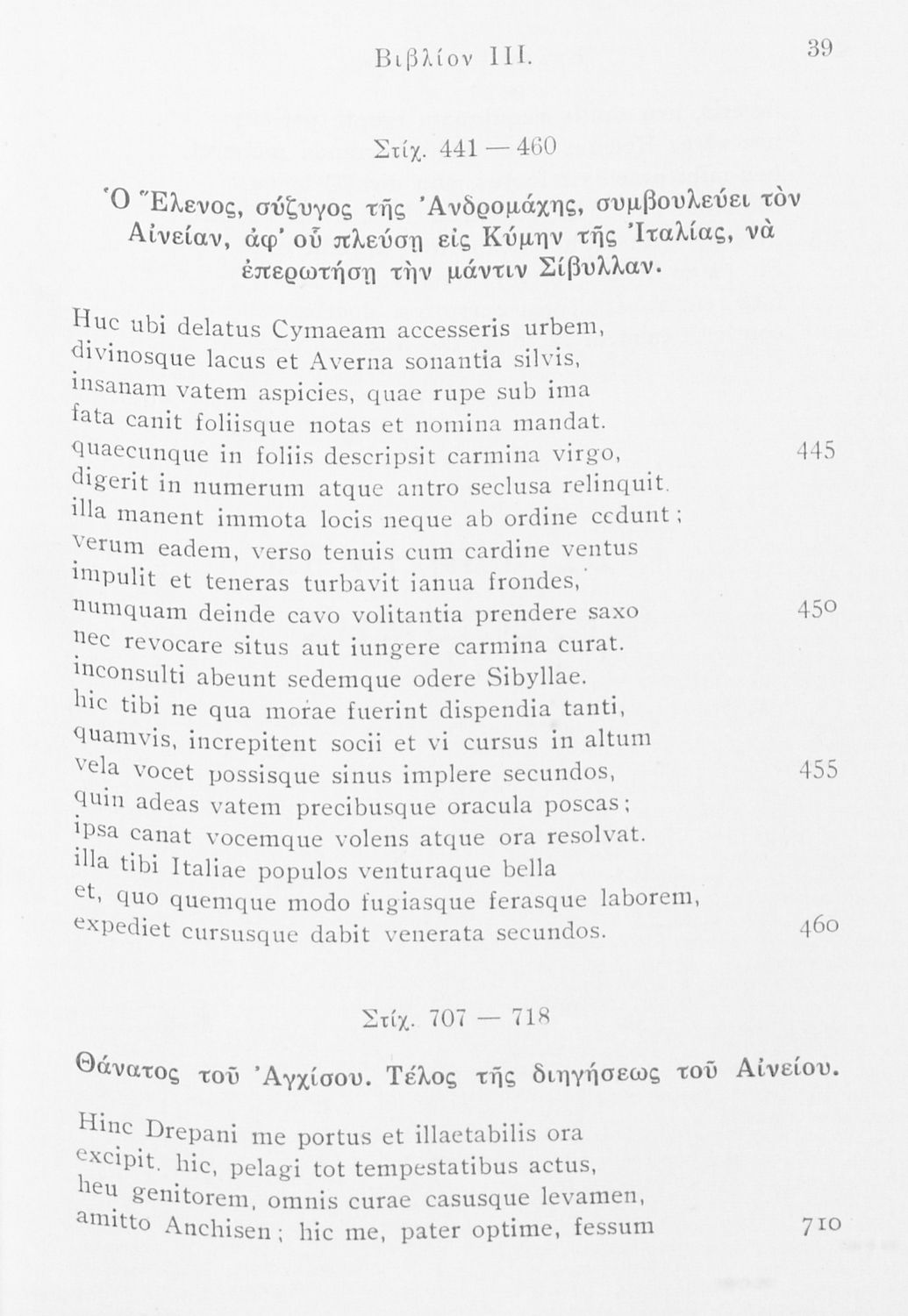 Σχολικό εγχειρίδιο Λατινικών ΣΤ΄ Γυμνασίου που περιέχει βιογραφικό σημείωμα του Βιργίλιου, αποσπάσματα από την Αινειάδα, εισαγωγικά σχόλια, και ερμηνευτικές σημειώσεις. Ο συγγραφέας ήταν πρώην γενικός επιθεωρητής Μέσης Εκπαίδευσης.