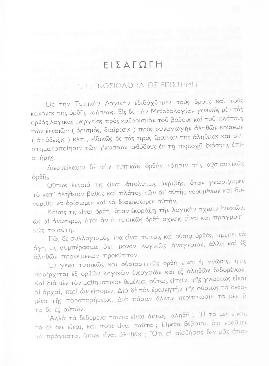 Σχολικό εγχειρίδιο Λογικής Γυμνασίου που είναι χωρισμένο σε στοιχειολογία ή τυπική λογική, μεθοδολογία και γνωσιολογία. Περιέχει ασκήσεις λογικής.