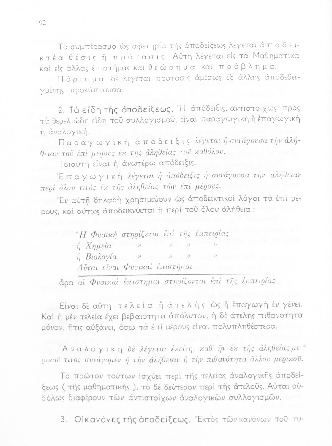 Σχολικό εγχειρίδιο Λογικής Γυμνασίου που είναι χωρισμένο σε στοιχειολογία ή τυπική λογική, μεθοδολογία και γνωσιολογία. Περιέχει ασκήσεις λογικής.