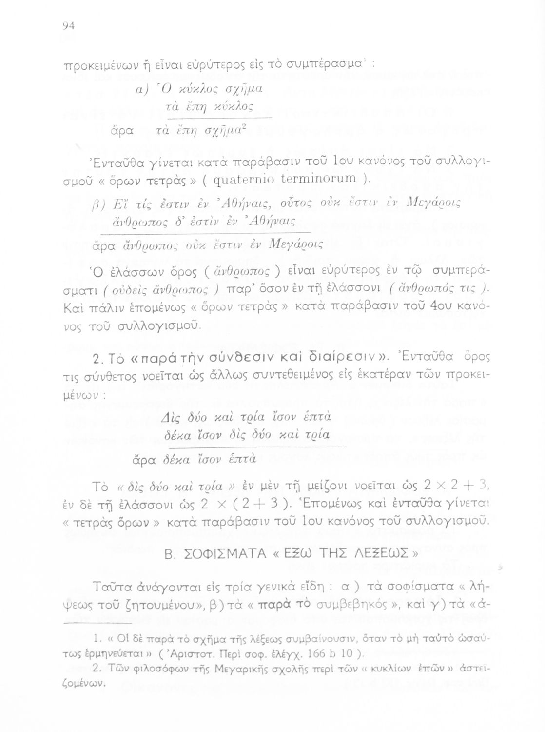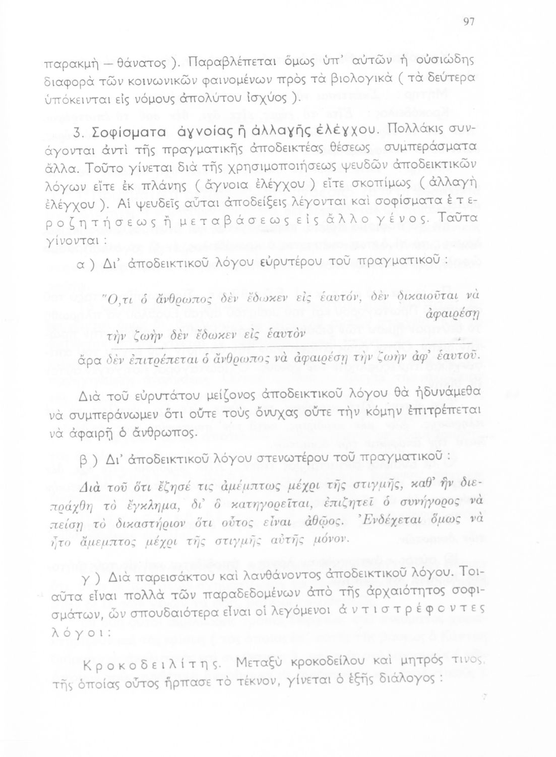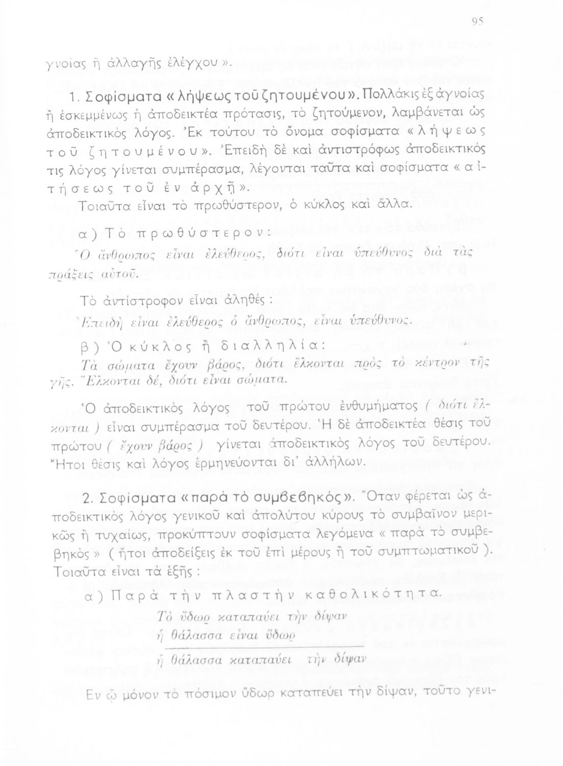 Σχολικό εγχειρίδιο Λογικής για τη ΣΤ΄ Γυμνασίου που είναι χωρισμένο σε στοιχειολογία ή τυπική λογική, μεθοδολογία και γνωσιολογία. Περιέχει ασκήσεις λογικής.