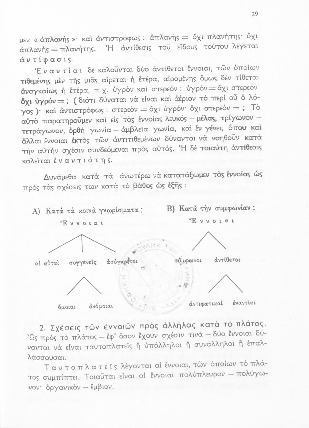 Σχολικό εγχειρίδιο Λογικής ΣΤ΄ Γυμνασίου που είναι δομημένο θεματικά και περιλαμβάνει ζητήματα τυπικής λογικής, μεθοδολογίας και γνωσιολογίας. Περιέχει παράρτημα με ασκήσεις λογικής. Φέρει το σύμβολο της δικτατορίας.