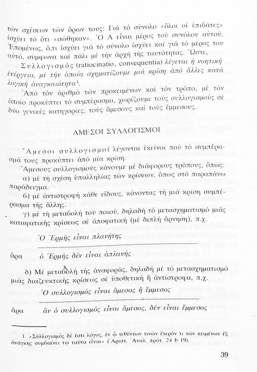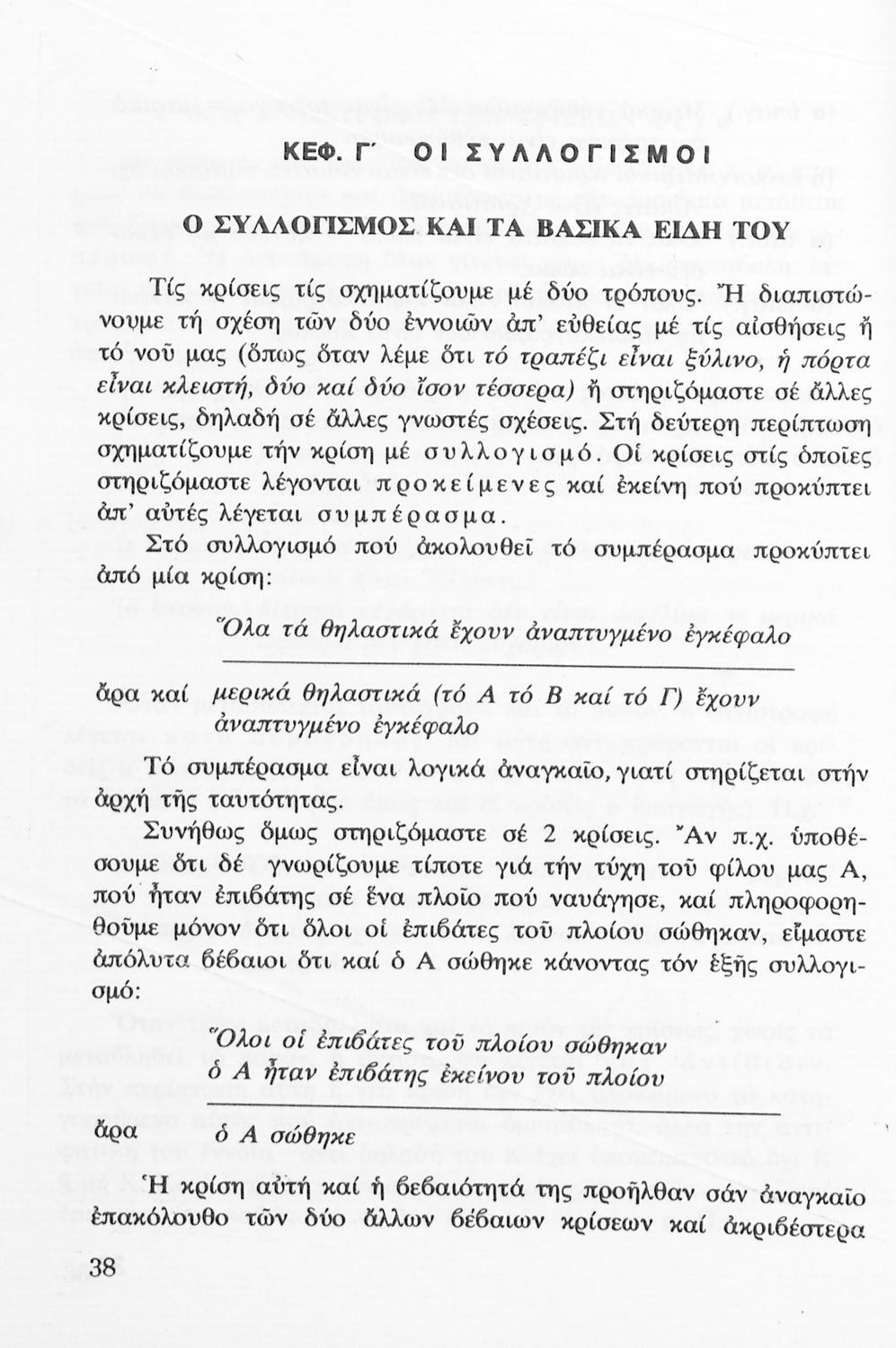 520 ## _aΣχολικό εγχειρίδιο Λογικής ΣΤ΄ Γυμνασίου το οποίο είναι χωρισμένο σε στοιχειολογία ή τυπική λογική και μεθοδολογία.