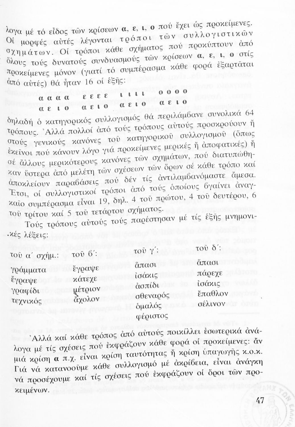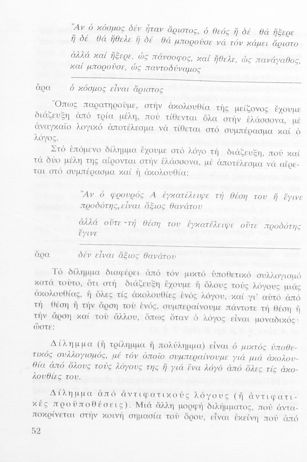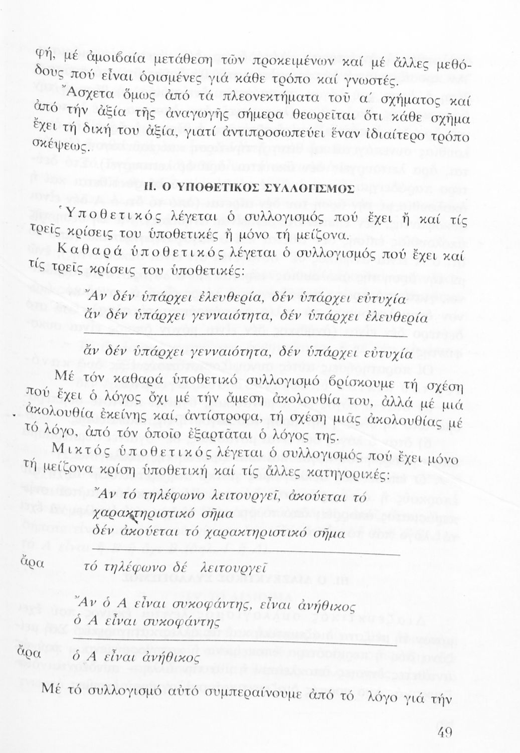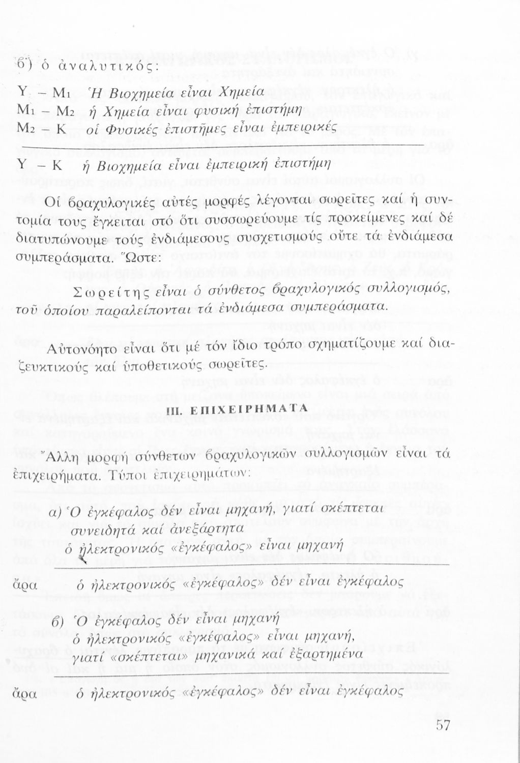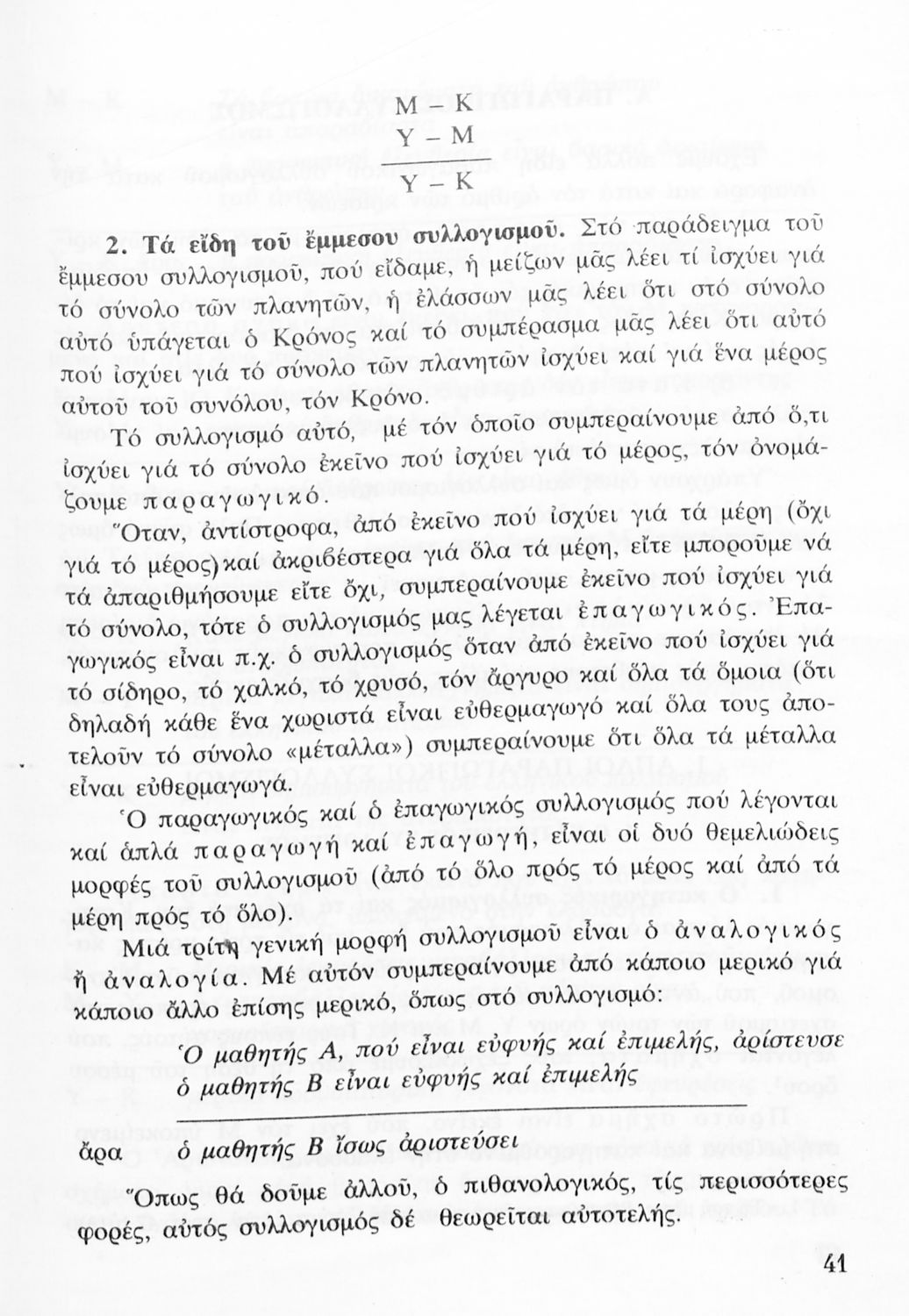 520 ## _aΣχολικό εγχειρίδιο Λογικής ΣΤ΄ Γυμνασίου το οποίο είναι χωρισμένο σε στοιχειολογία ή τυπική λογική και μεθοδολογία.