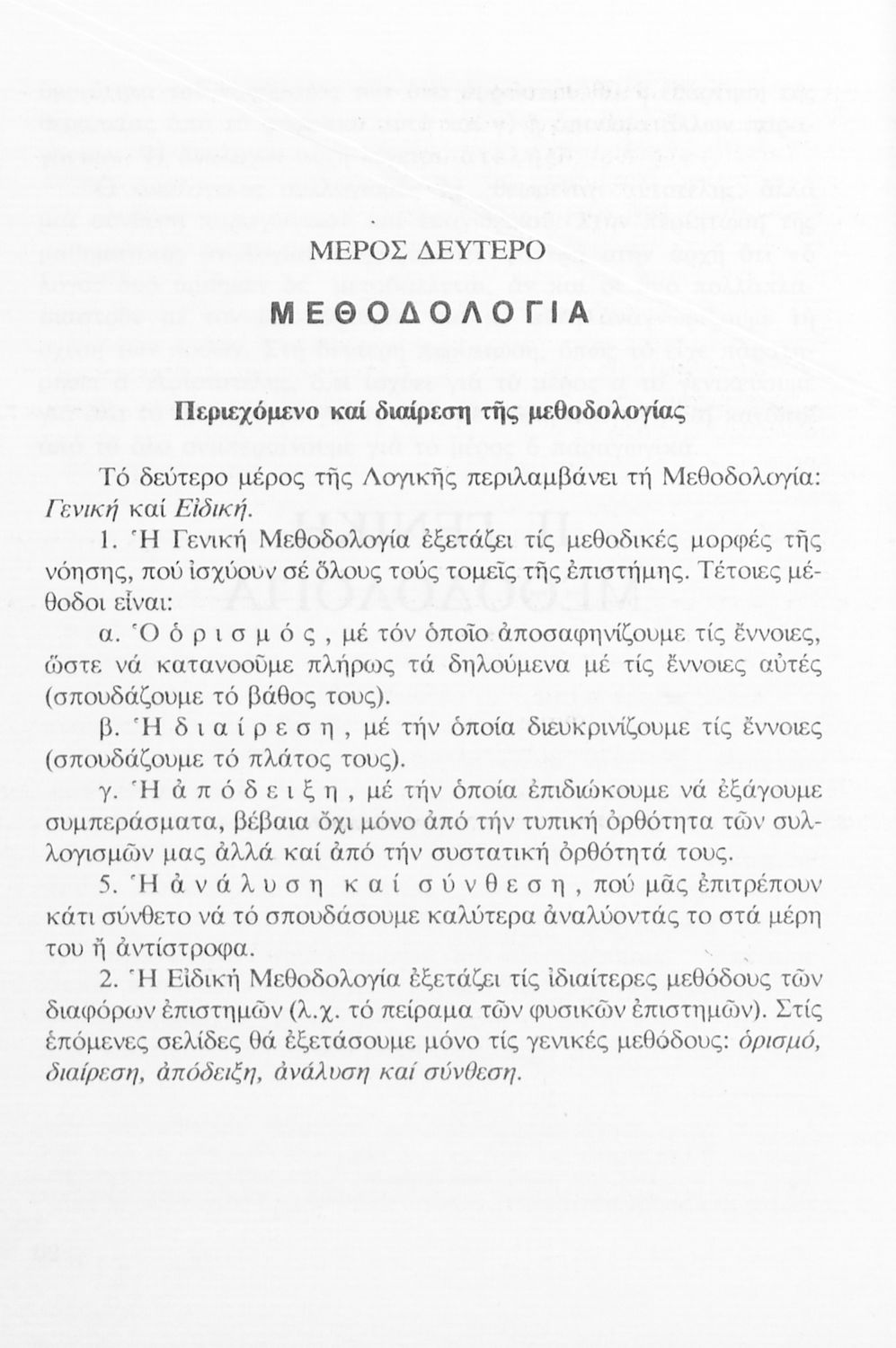 Σχολικό εγχειρίδιο Λογικής ΣΤ΄ Γυμνασίου το οποίο είναι χωρισμένο σε στοιχειολογία ή τυπική λογική και μεθοδολογία.