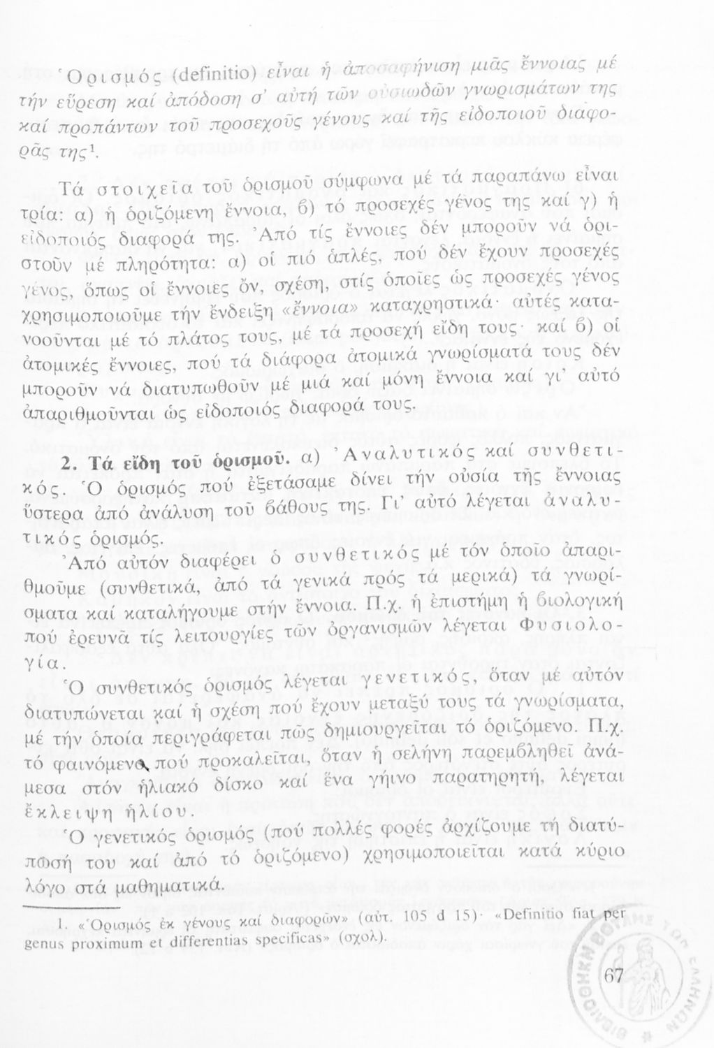 Σχολικό εγχειρίδιο Λογικής για τη ΣΤ΄ Γυμνασίου που είναι χωρισμένο σε στοιχειολογία ή τυπική λογική, μεθοδολογία και γνωσιολογία. Περιέχει ασκήσεις λογικής.