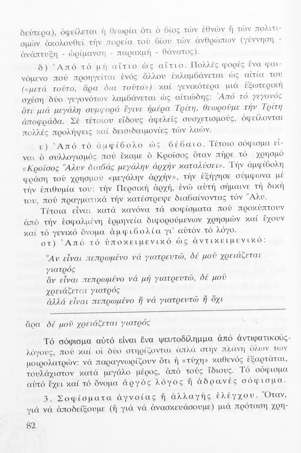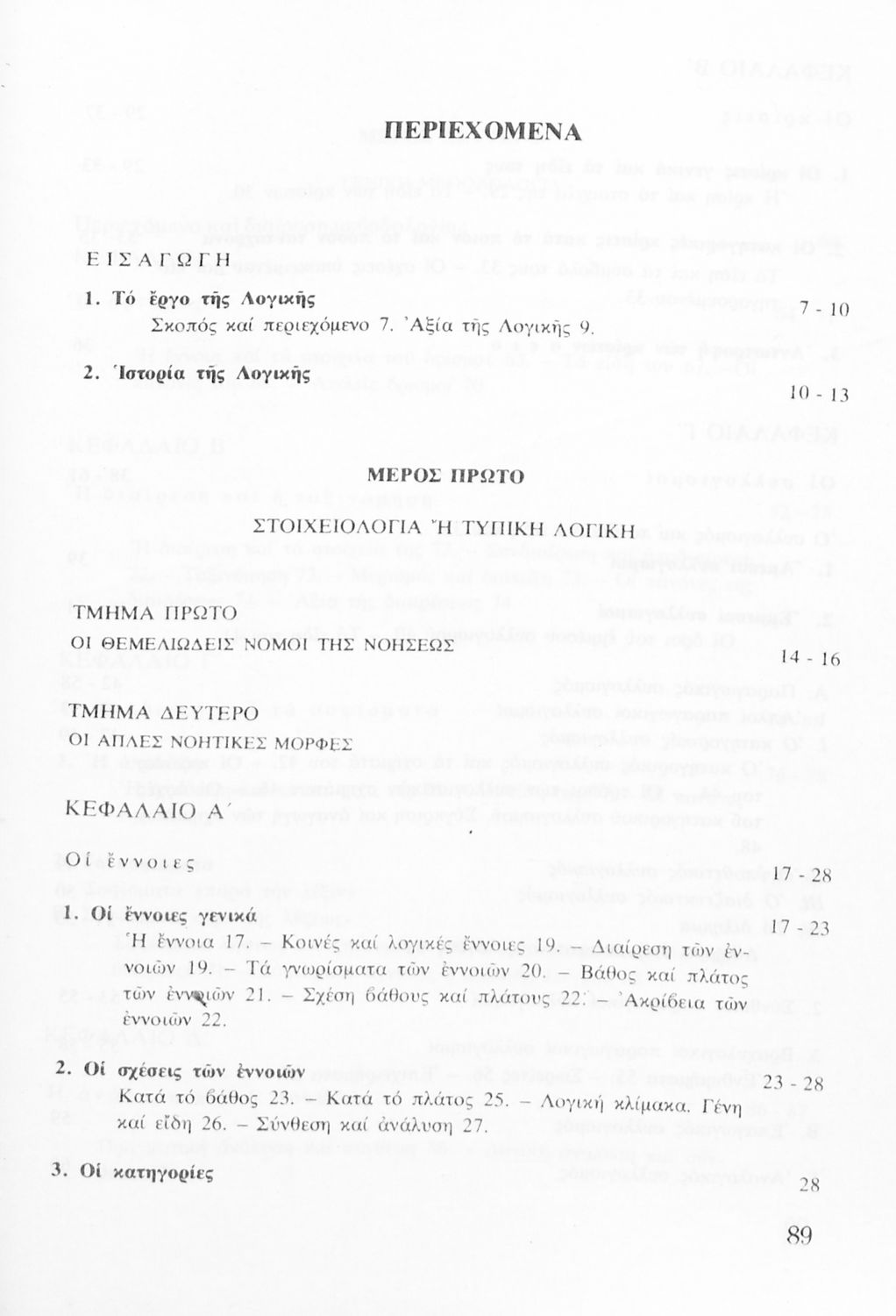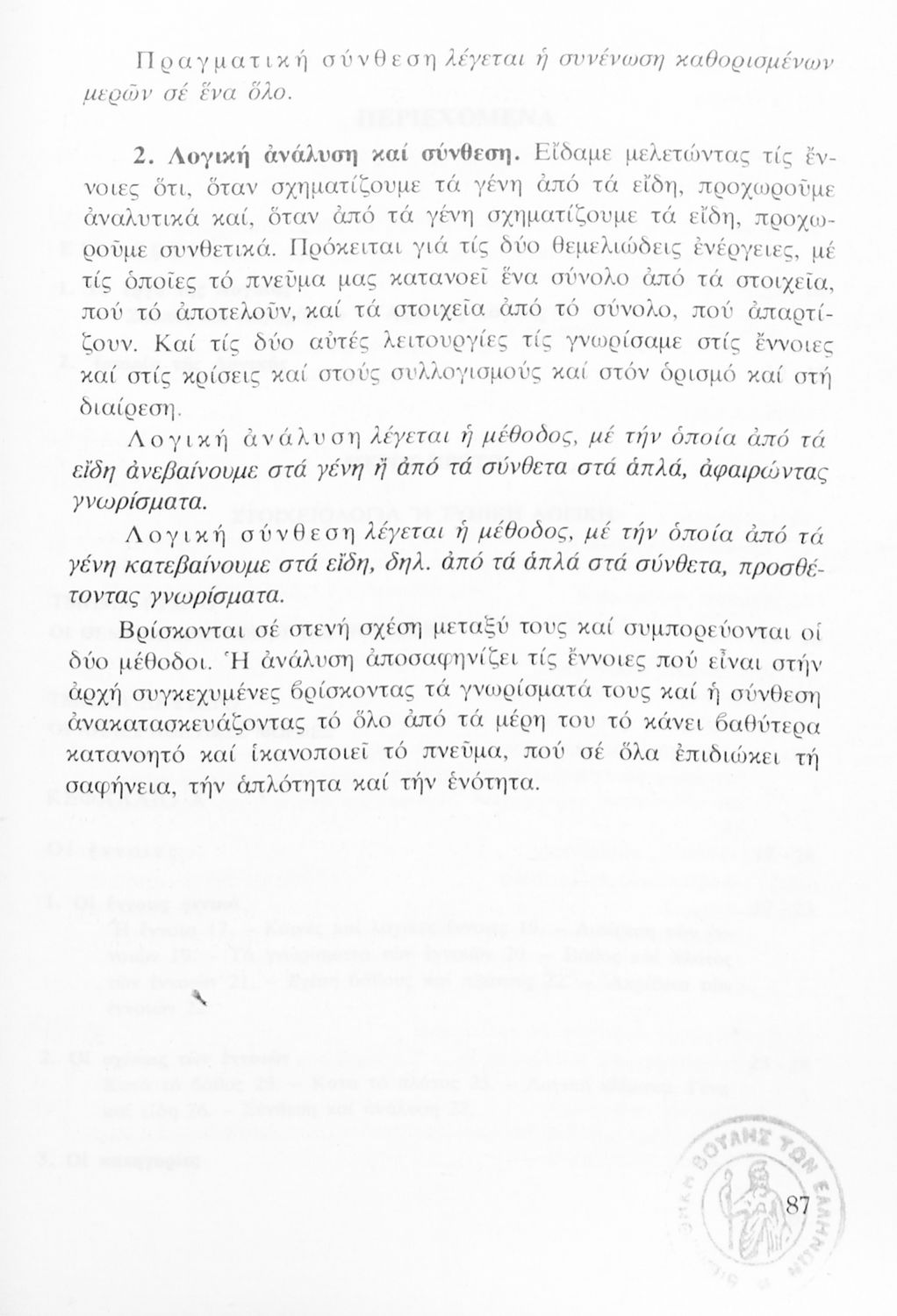 Σχολικό εγχειρίδιο Λογικής ΣΤ΄ Γυμνασίου το οποίο είναι χωρισμένο σε στοιχειολογία ή τυπική λογική και μεθοδολογία.