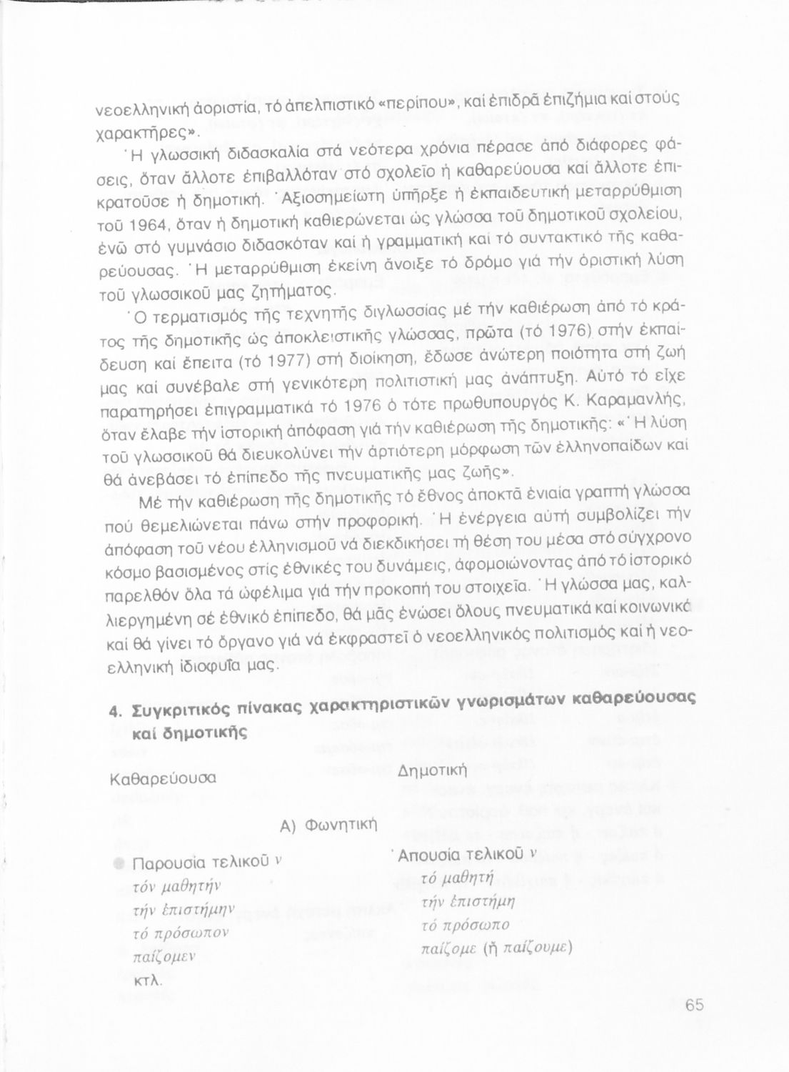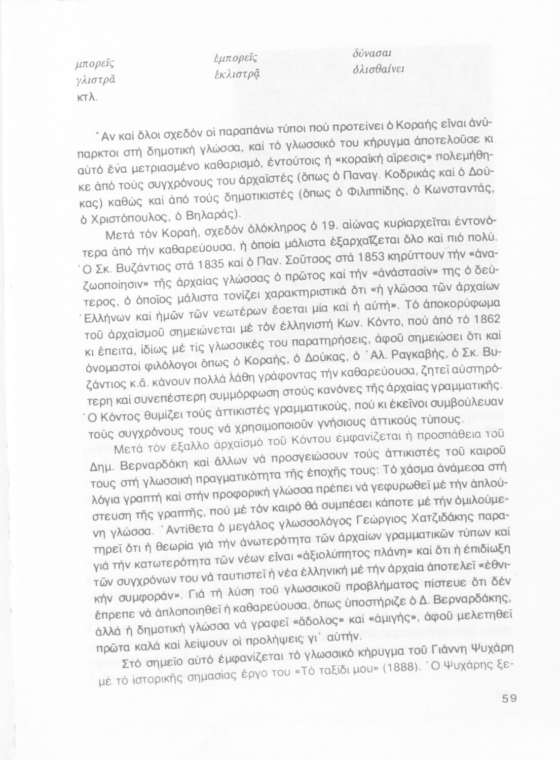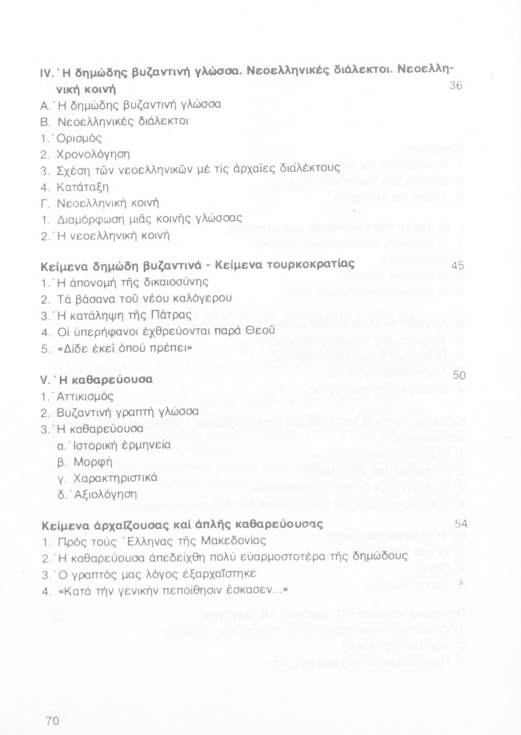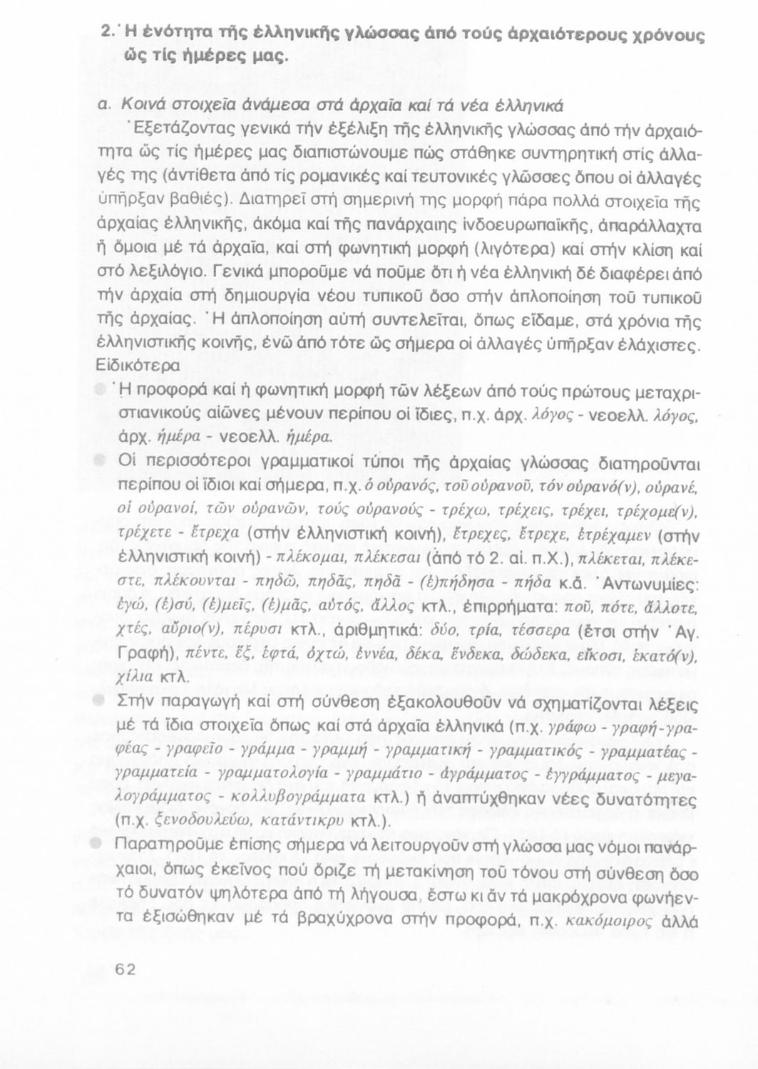Σχολικό εγχειρίδιο Νέων Ελληνικών Γ' Γυμνασίου που αναφέρεται στην ιστορία της ελληνικής γλώσσας και στην εξέλιξη της στο χρόνο και προσπαθεί να καταδείξει την αδιάσπαστη ενότητά της.