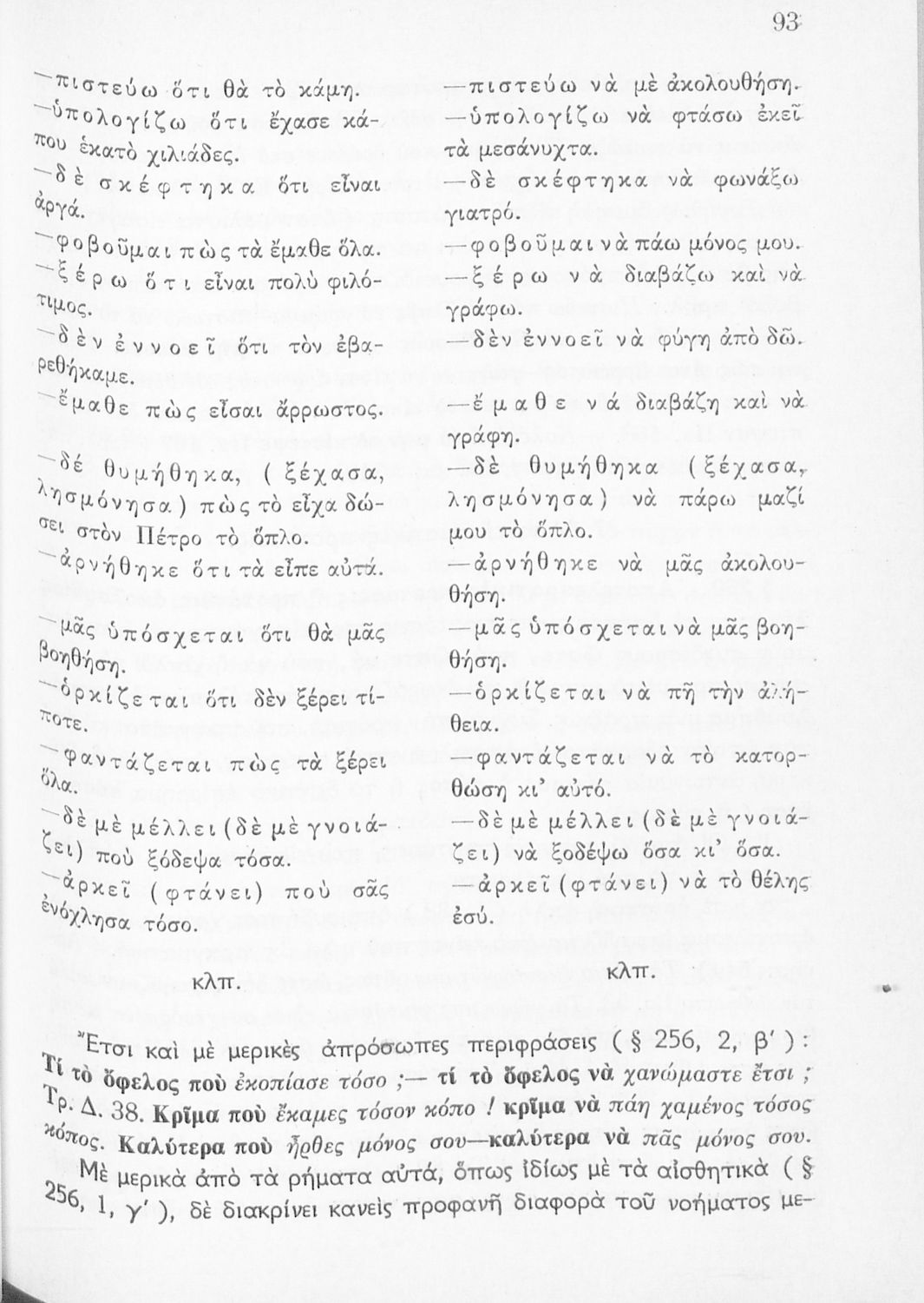 Μαθητικό βοήθημα Δημοτικού που περιλαμβάνει τη γραμματική και το συντακτικό της καθαρεύουσας και πίνακες παραδειγμάτων.