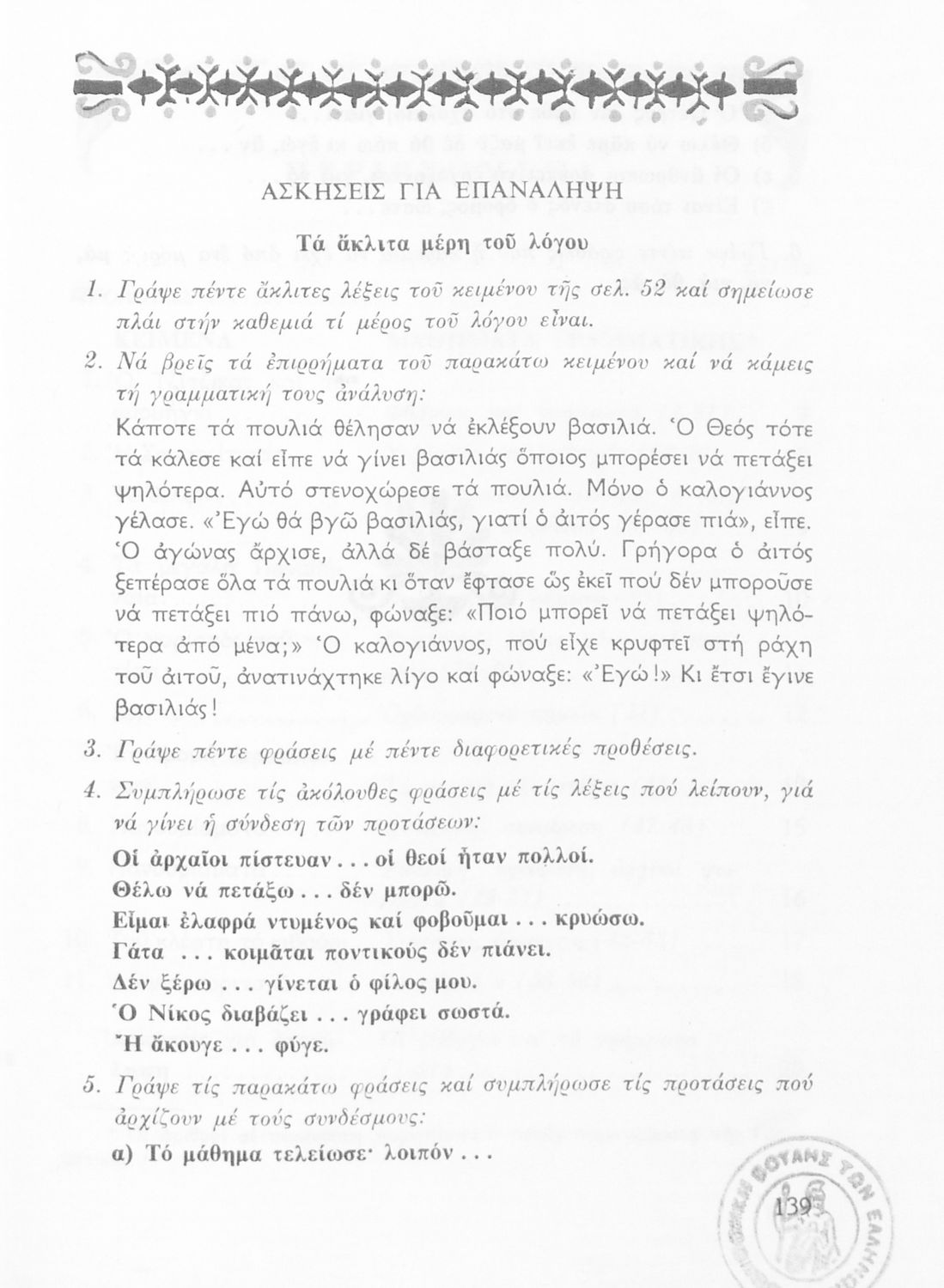 520 ## _aΤο σύγγραμμα ήταν σχολικό εγχειρίδιο για το μάθημα της Γλώσσας στο Δημοτικό. Περιέχει κείμενα πεζά και διηγήματα μέσα από τα οποία παρουσιάζονται γραμματικά και συντακτικά φαινόμενα.