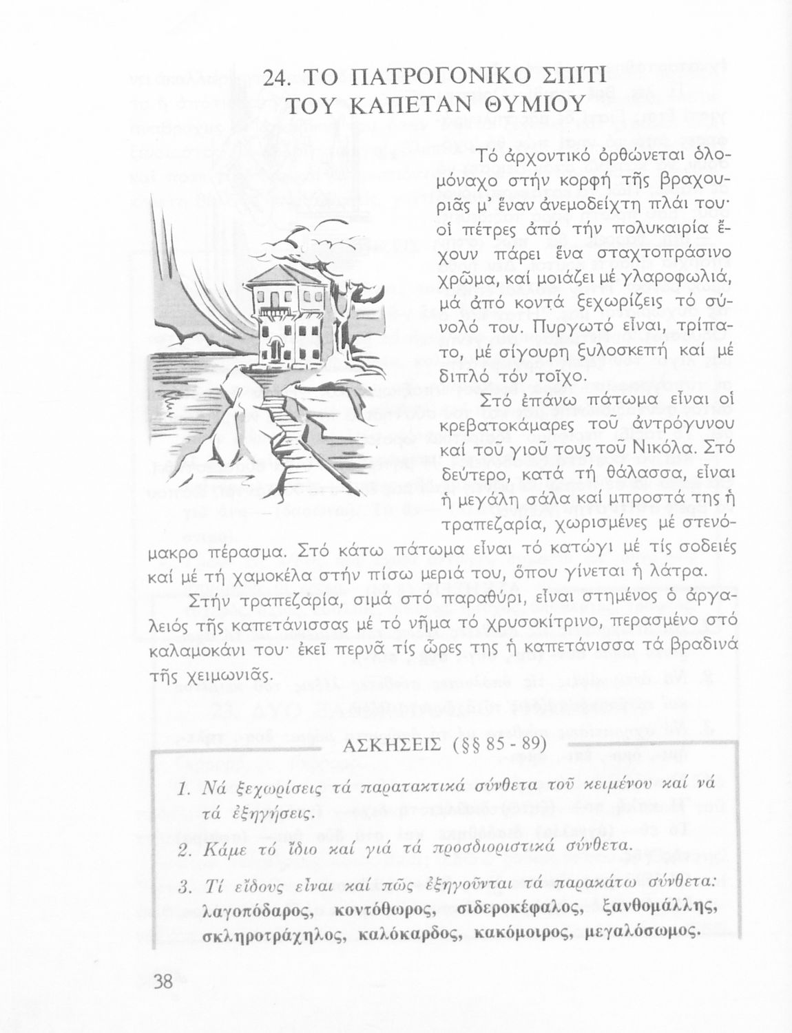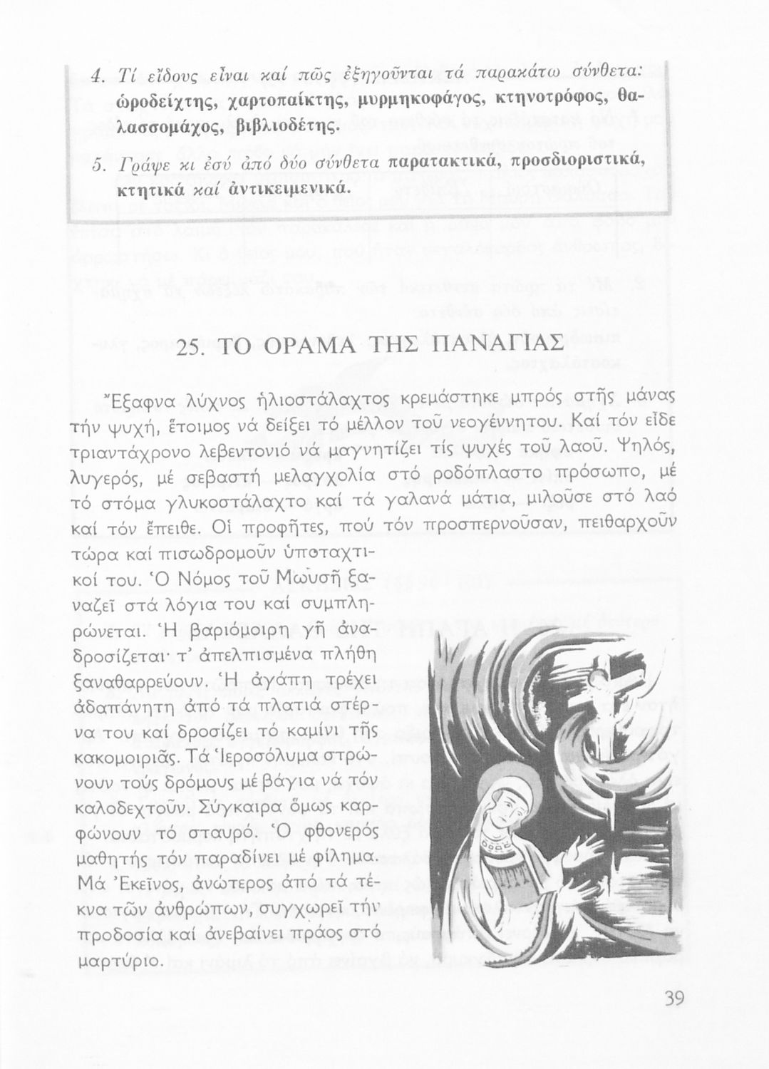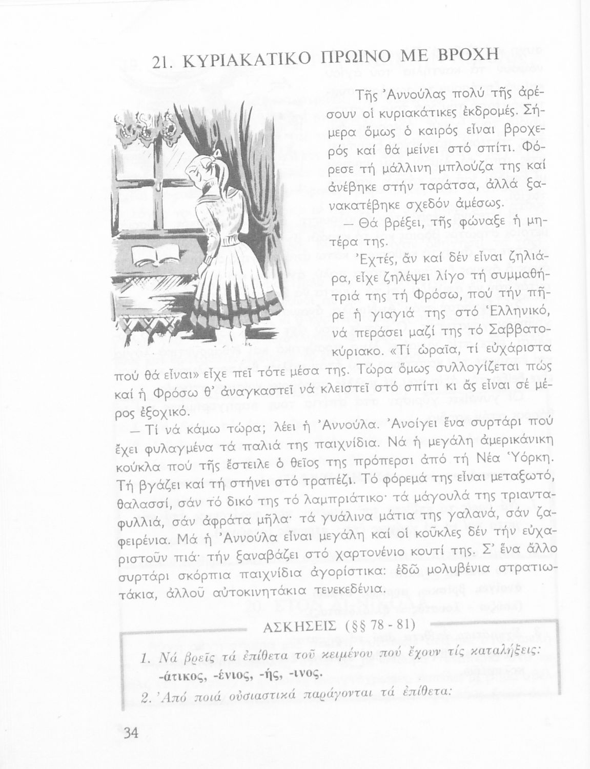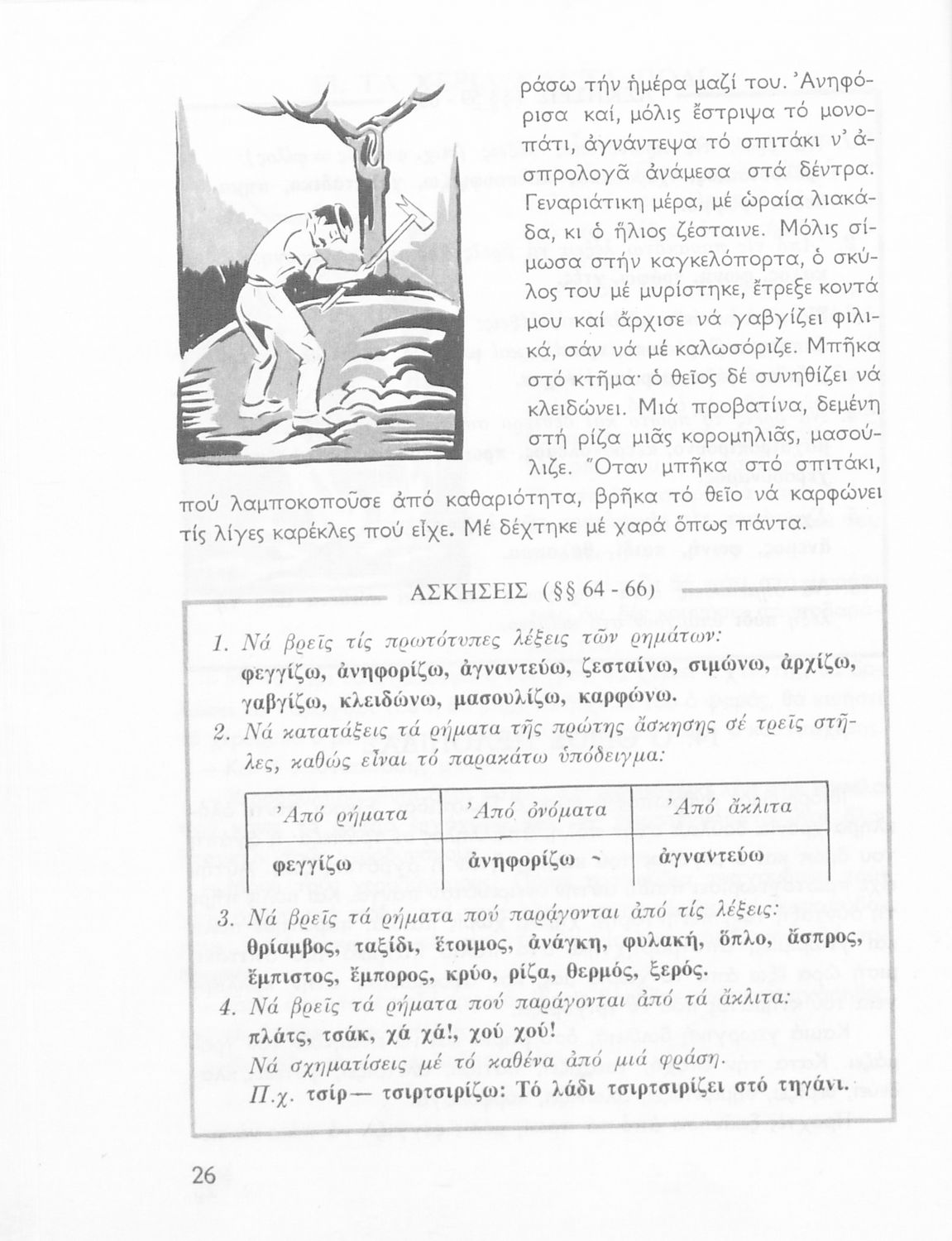 Σχολικό εγχειρίδιο για τη Γραμματική με κείμενα και ασκήσεις πάνω στα μέρη του λόγου και τις κλίσεις τους για εξάσκηση και εμπέδωση των μαθητών.