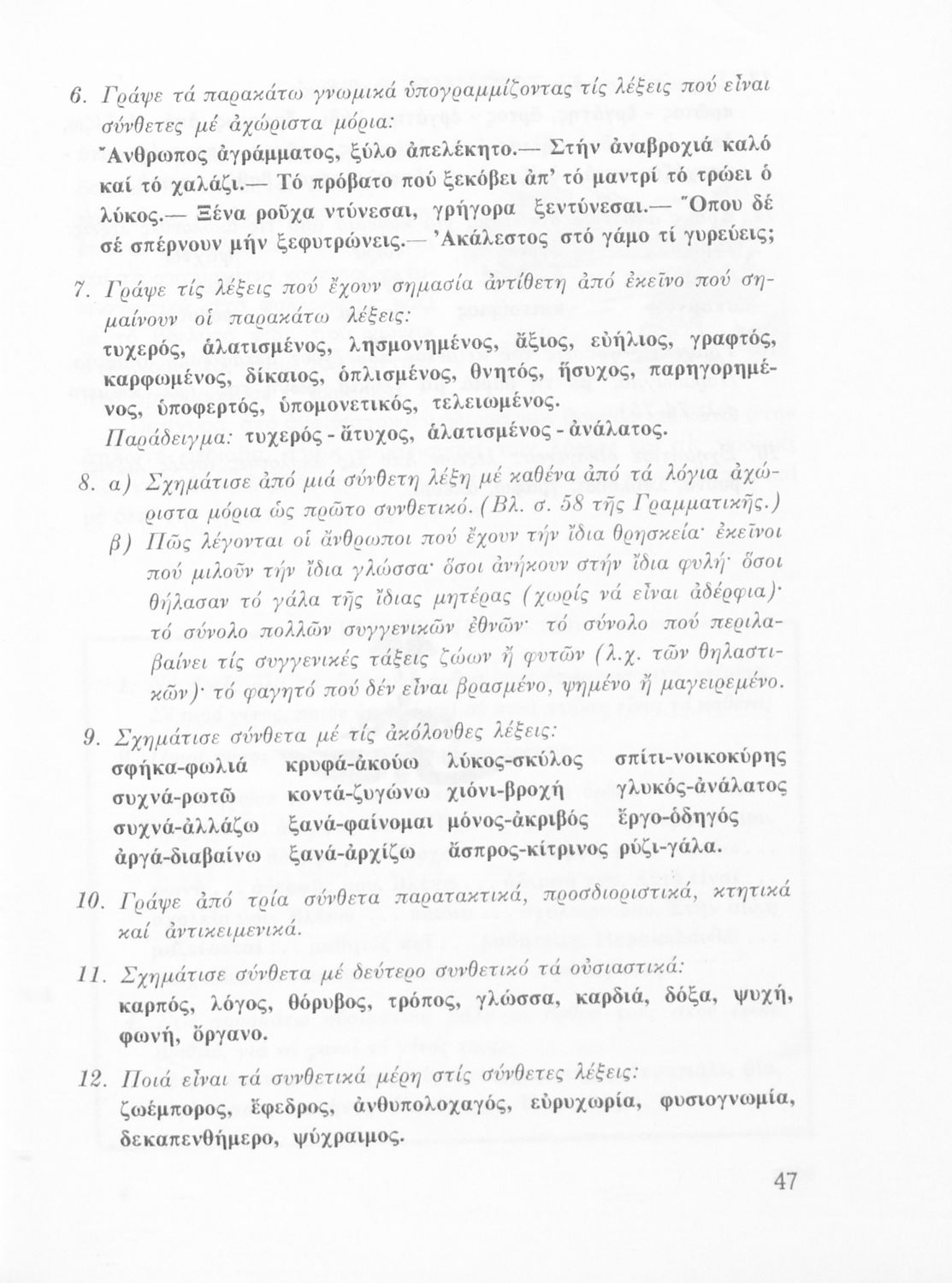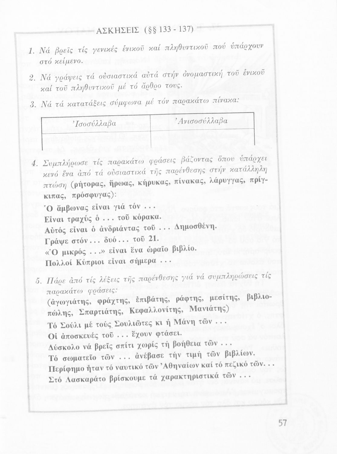 LDR 01407 2200217 4500 035 ## _a03-20556984 040 ## _aΒιβλιοθήκη της Βουλής των Ελλήνων 041 ## _ael 100 ## _aΑ. Καρανικόλας _aΑντ. Κατσουρός _aΚαλλ. Μουστάκα _aΚων. Παπανικολάου _aΙγν. Σακαλής _aΑν. Σεφεριάδου _aΗλ. Σπυρόπουλος _aΔ. Τομπαΐδης _aΧρ. Τσολάκης 110 ## _a20556984 245 0# _aΝεοελληνική Γραμματική Κείμενα και Ασκήσεις 250 ## _a6η Έκδοση 260 ## _aΑθήνα _bΟργανισμός Εκδόσεως Διδακτικών Βιβλίων _c1981 300 ## _a146 _bΣκίτσα και εικόνες (έγχρωμα) 520 ## _aΤο σύγγραμμα ήταν σχολικό εγχειρίδιο για το μάθημα της Γλώσσας στο Δημοτικό. Περιέχει κείμενα πεζά και διηγήματα μέσα από τα οποία παρουσιάζονται γραμματικά και συντακτικά φαινόμενα. 522 ## _aΕλλάδα 546 ## _aΔημοτική 563 ## _aΜαλακό Εξώφυλλο 583 ## _a3534/30-12-1980 _c1980 650 #4 _aΑσκήσεις _aΓλώσσα _aΓραμματική _aΚείμενα _aΠεζά 700 ## _aΤάσος Μουσταφέλλος