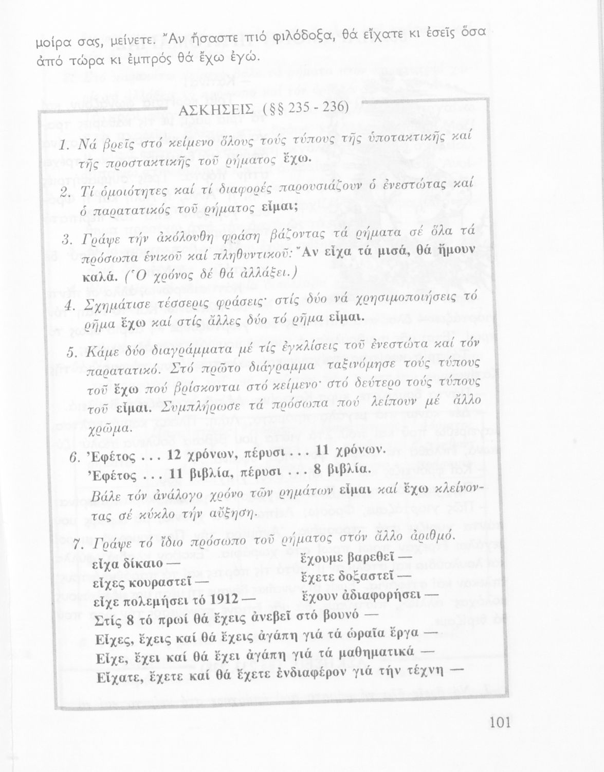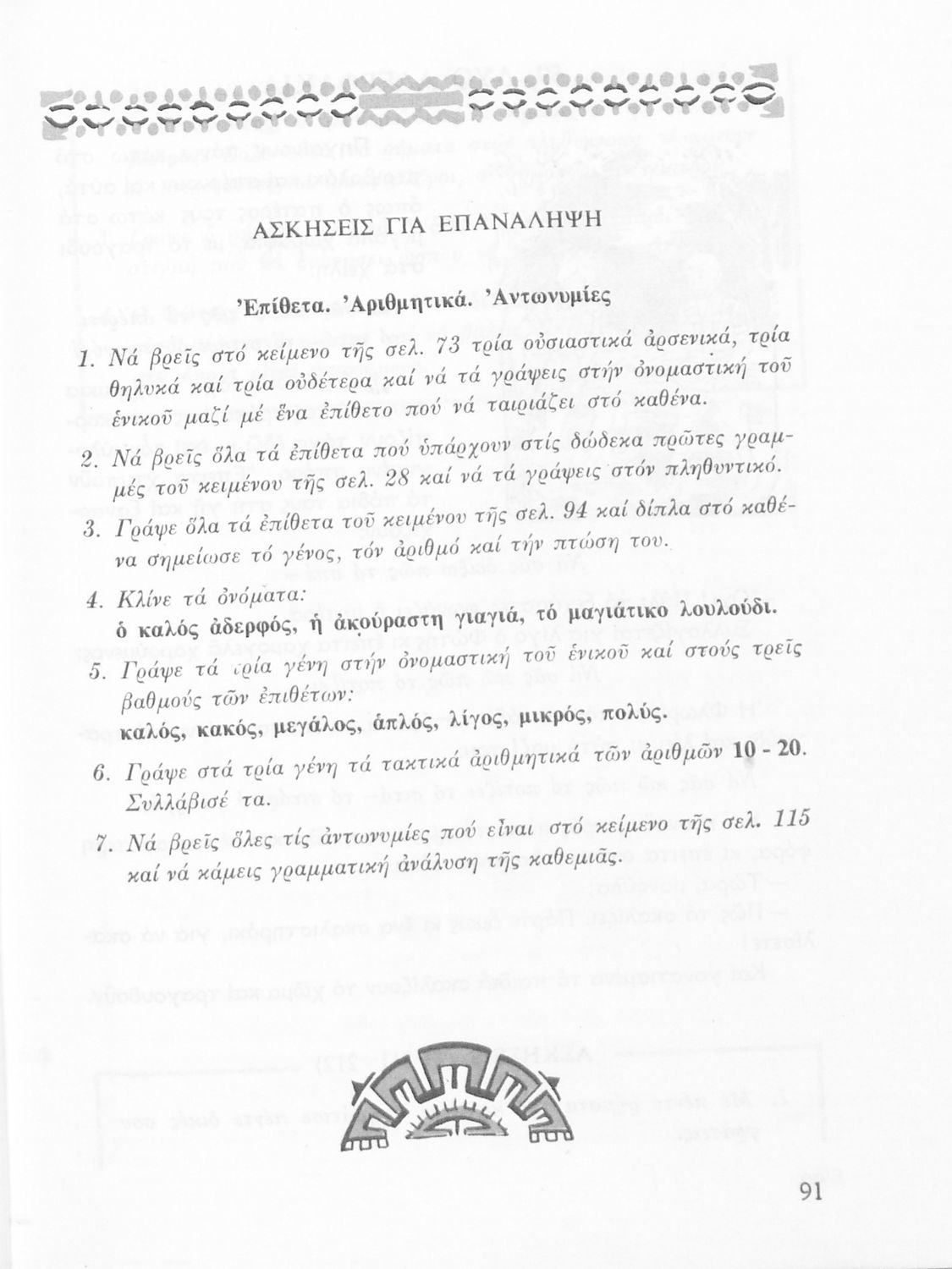 LDR 01407 2200217 4500 035 ## _a03-20556984 040 ## _aΒιβλιοθήκη της Βουλής των Ελλήνων 041 ## _ael 100 ## _aΑ. Καρανικόλας _aΑντ. Κατσουρός _aΚαλλ. Μουστάκα _aΚων. Παπανικολάου _aΙγν. Σακαλής _aΑν. Σεφεριάδου _aΗλ. Σπυρόπουλος _aΔ. Τομπαΐδης _aΧρ. Τσολάκης 110 ## _a20556984 245 0# _aΝεοελληνική Γραμματική Κείμενα και Ασκήσεις 250 ## _a6η Έκδοση 260 ## _aΑθήνα _bΟργανισμός Εκδόσεως Διδακτικών Βιβλίων _c1981 300 ## _a146 _bΣκίτσα και εικόνες (έγχρωμα) 520 ## _aΤο σύγγραμμα ήταν σχολικό εγχειρίδιο για το μάθημα της Γλώσσας στο Δημοτικό. Περιέχει κείμενα πεζά και διηγήματα μέσα από τα οποία παρουσιάζονται γραμματικά και συντακτικά φαινόμενα. 522 ## _aΕλλάδα 546 ## _aΔημοτική 563 ## _aΜαλακό Εξώφυλλο 583 ## _a3534/30-12-1980 _c1980 650 #4 _aΑσκήσεις _aΓλώσσα _aΓραμματική _aΚείμενα _aΠεζά 700 ## _aΤάσος Μουσταφέλλος