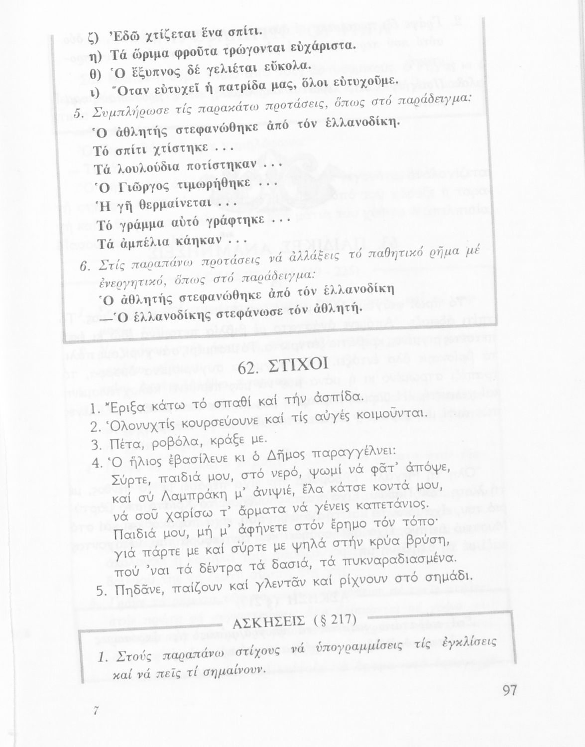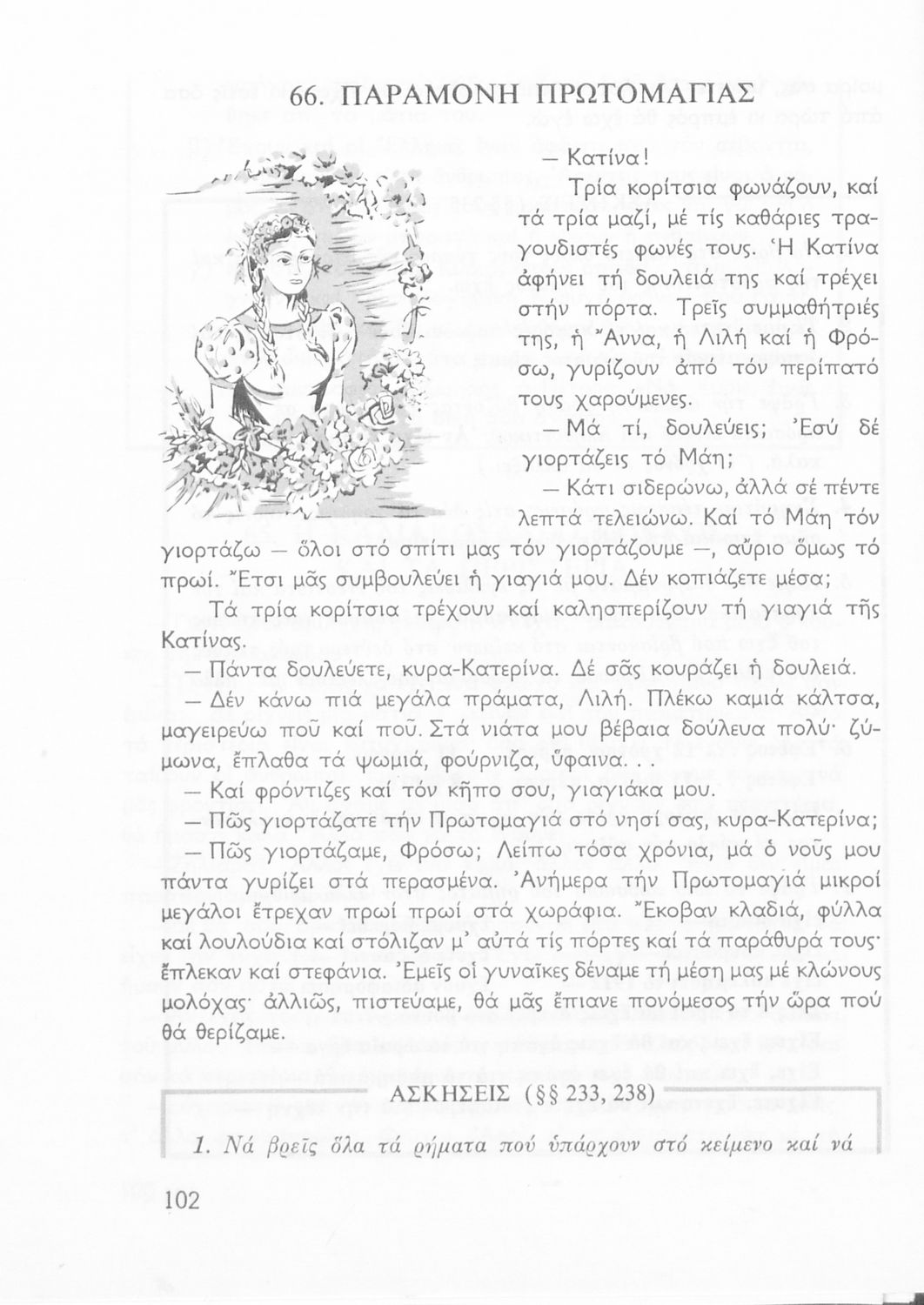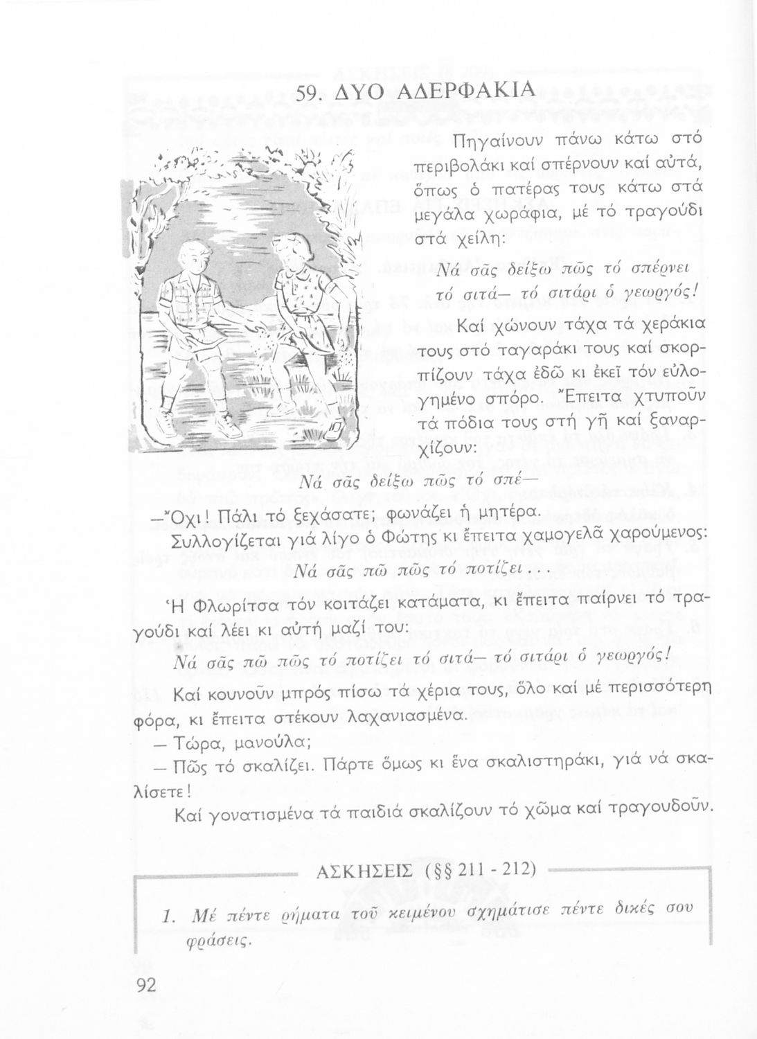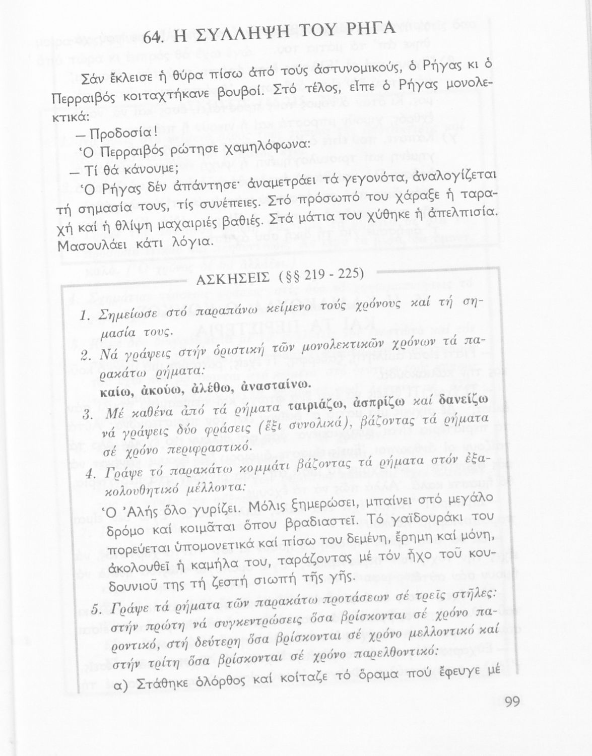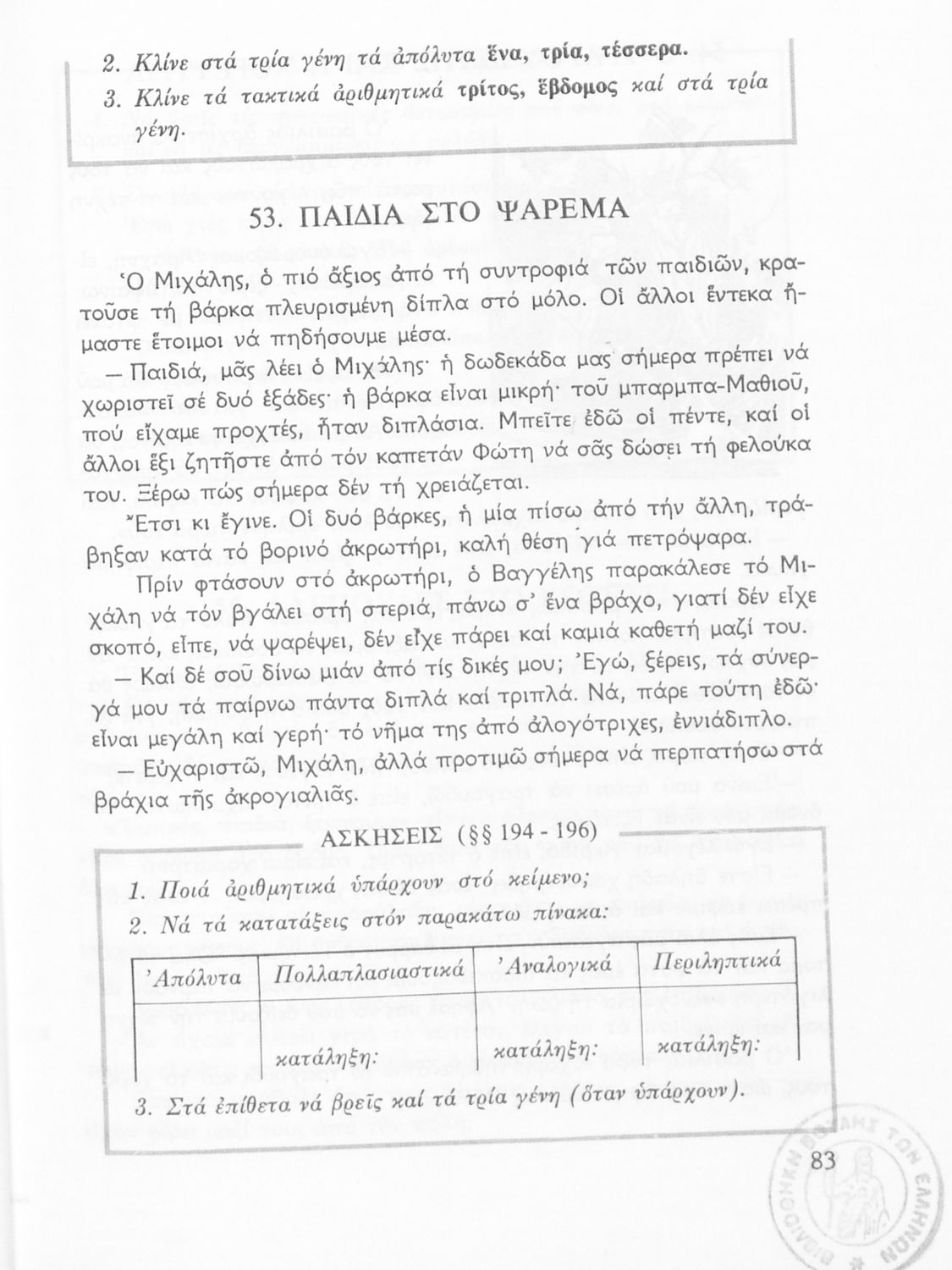 Βαθμίδα εκπαίδευσης: Πρωτοβάθμια Μάθημα: Νέα Ελληνικά Γλώσσα: Δημοτική Παρουσίαση περιεχομένου: Το σύγγραμμα ήταν σχολικό εγχειρίδιο για το μάθημα της Γλώσσας στο Δημοτικό. Περιέχει κείμενα πεζά και διηγήματα μέσα από τα οποία παρουσιάζονται γραμματικά και συντακτικά φαινόμενα. |