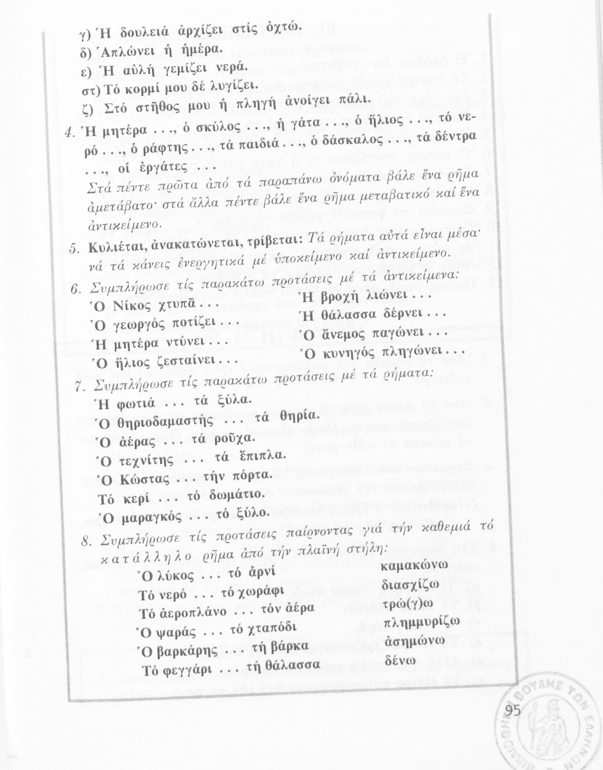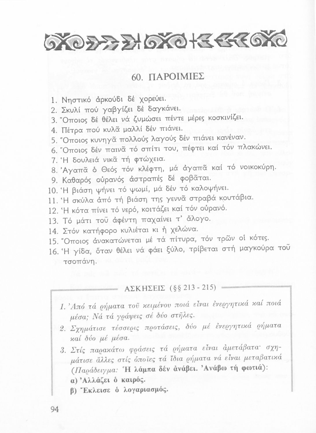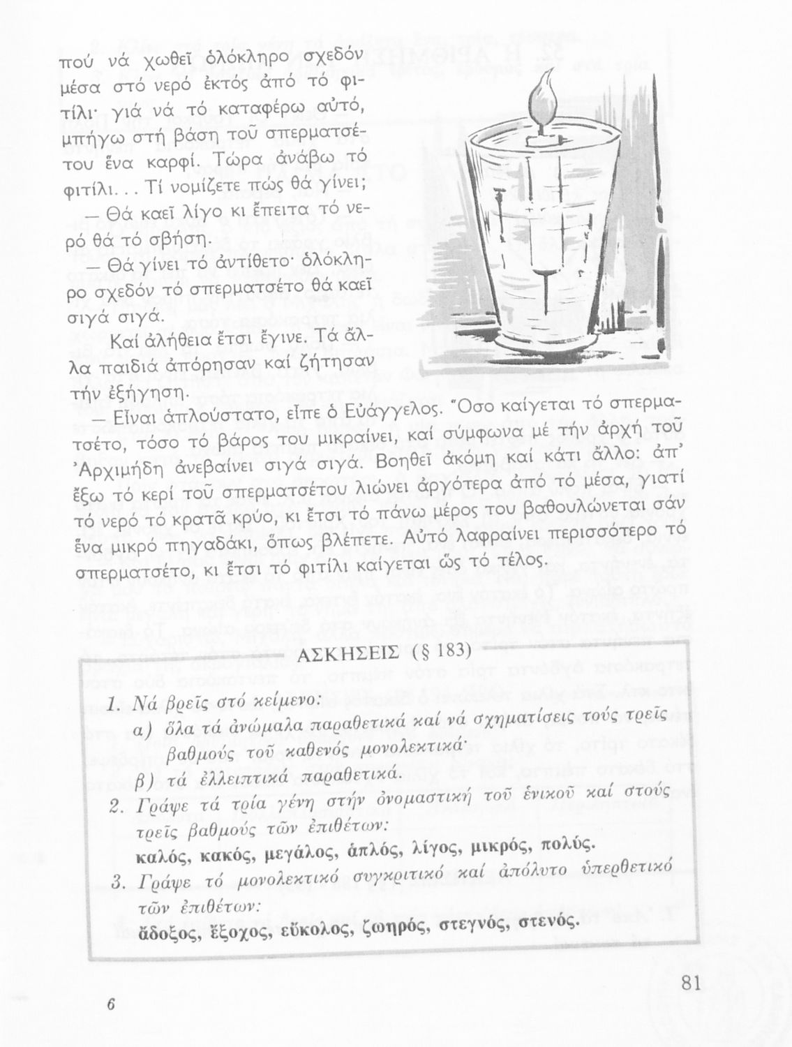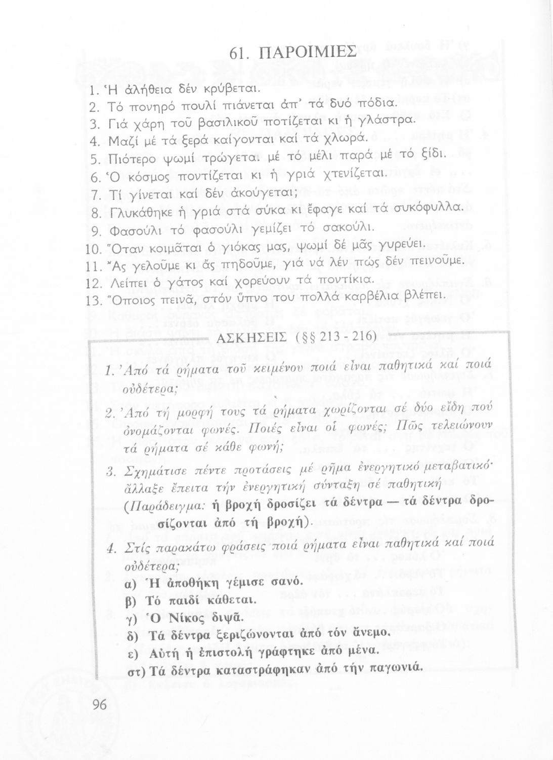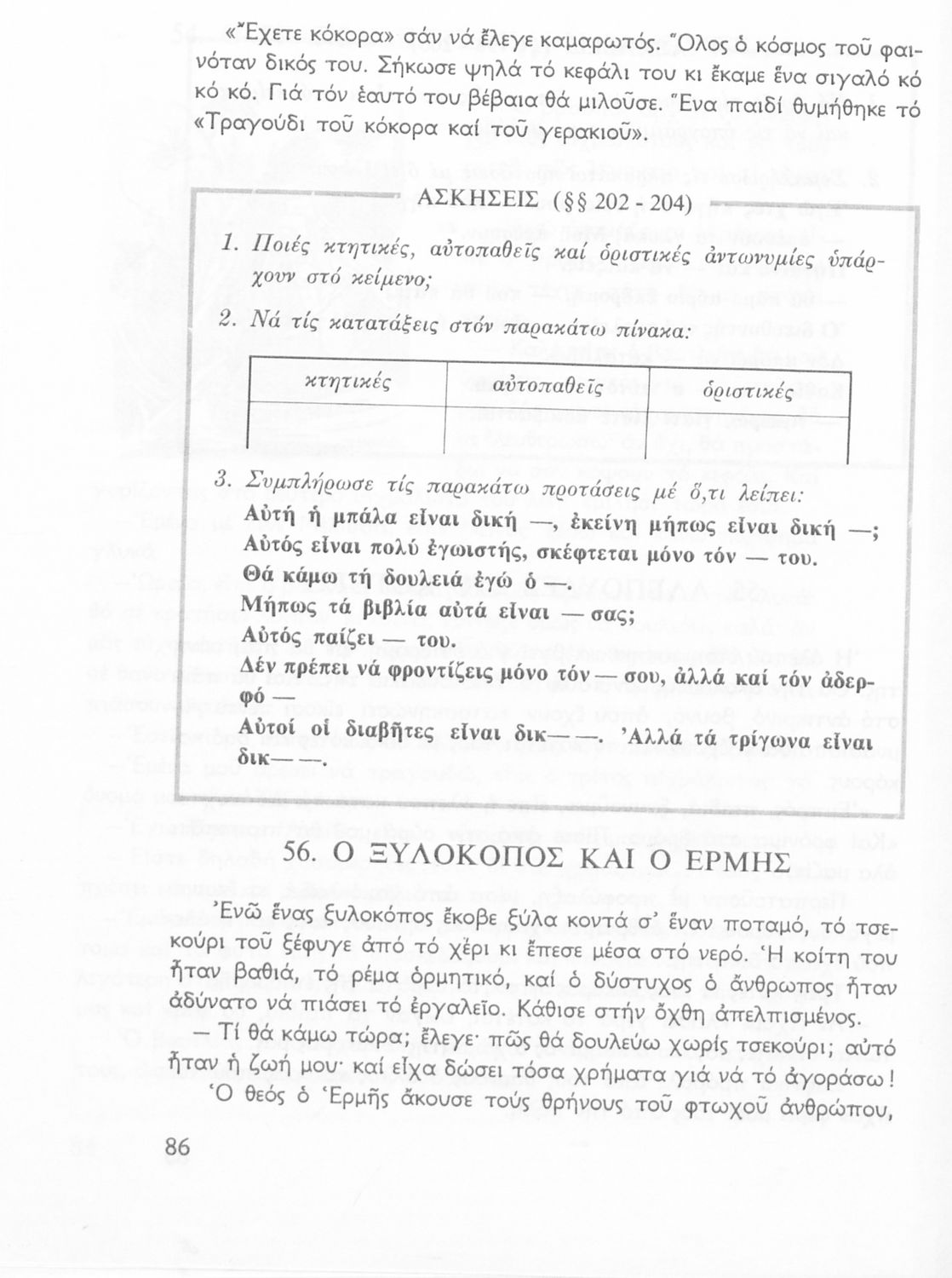 Βαθμίδα εκπαίδευσης: Πρωτοβάθμια Μάθημα: Νέα Ελληνικά Γλώσσα: Δημοτική Παρουσίαση περιεχομένου: Το σύγγραμμα ήταν σχολικό εγχειρίδιο για το μάθημα της Γλώσσας στο Δημοτικό. Περιέχει κείμενα πεζά και διηγήματα μέσα από τα οποία παρουσιάζονται γραμματικά και συντακτικά φαινόμενα. |